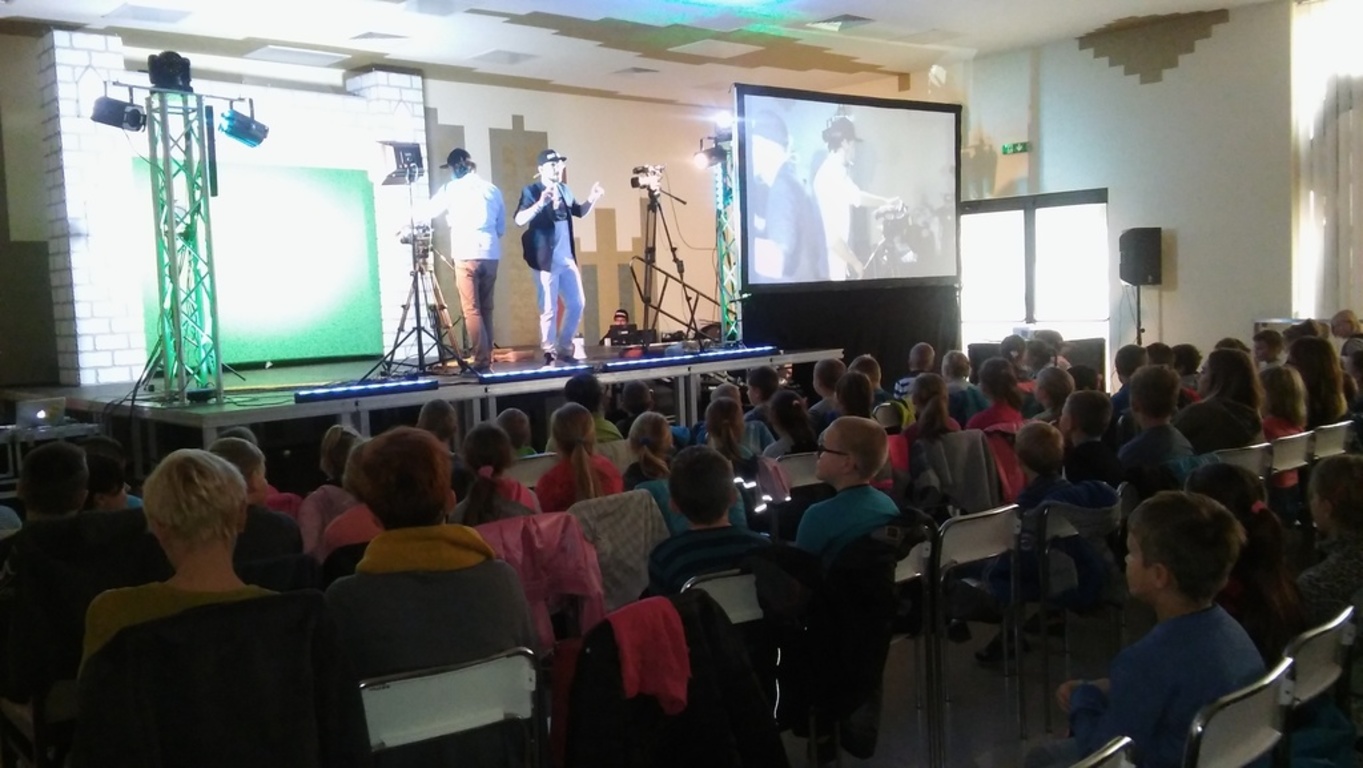 6 października dzieci z przedszkola oraz z klas I-III pojechały do Jarocina na widowisko telewizyjne pt.: „Szewczyk Dratewka na planie filmowym”. Podczas warsztatów dzieci pracowały z reżyserem, operatorami kamery oraz montażystami. Poznały również zasady pracy na planie filmowym oraz rekwizyty niezbędne do kręcenia filmu. Była to ciekawa lekcja, dzięki której dzieci wcieliły się w rolę aktorów i wspólnie z ekipą Teatru Show zrealizowali bajkę pt. „Szewczyk Dratewka”.