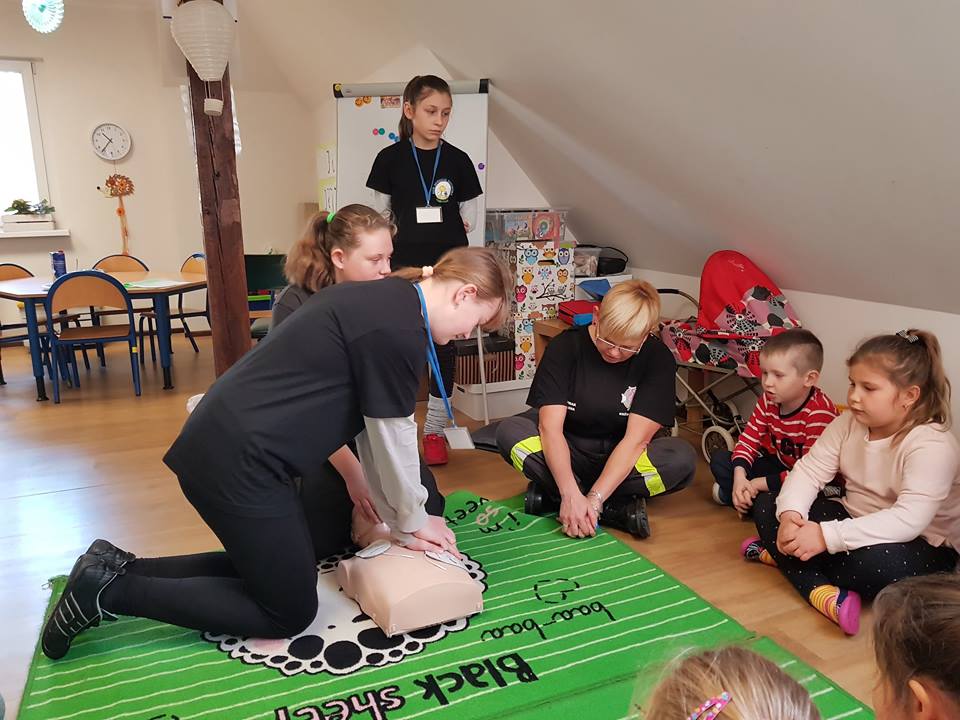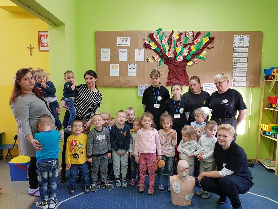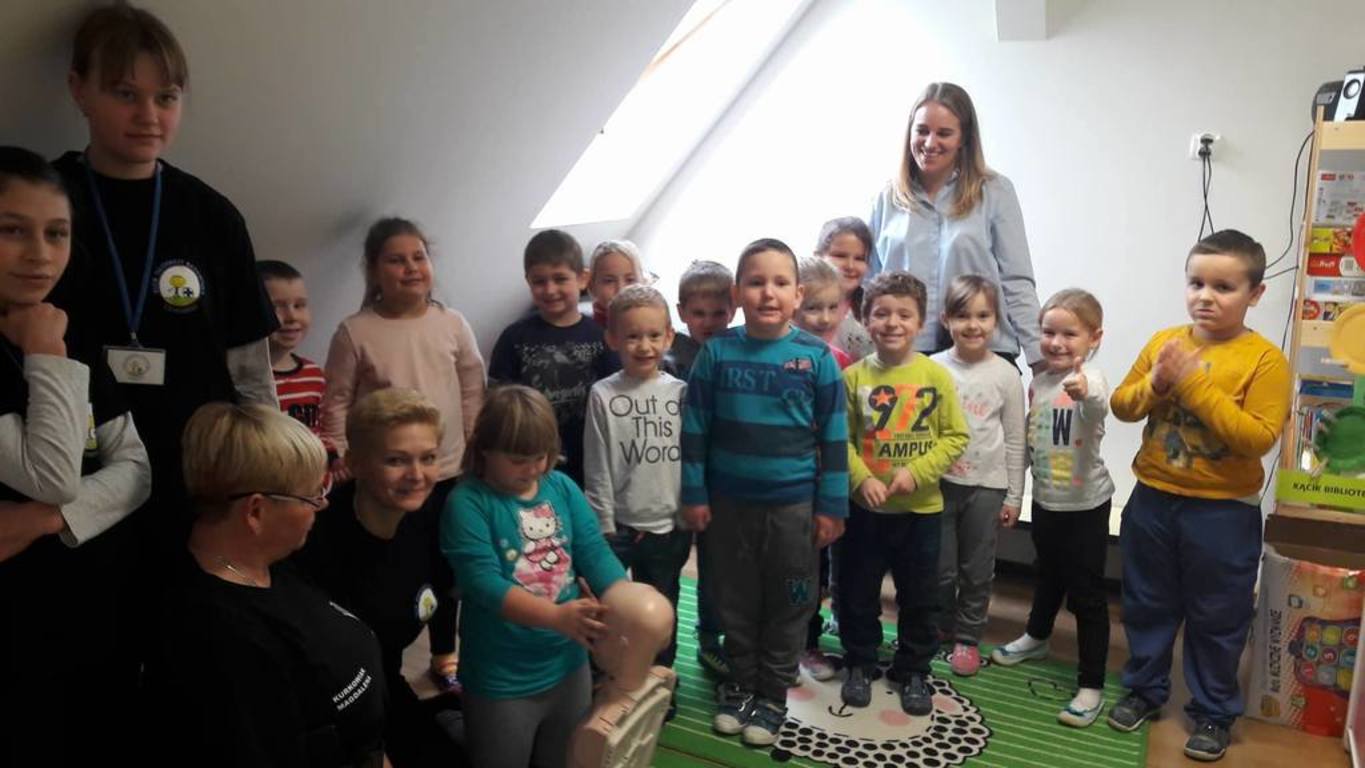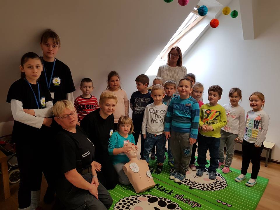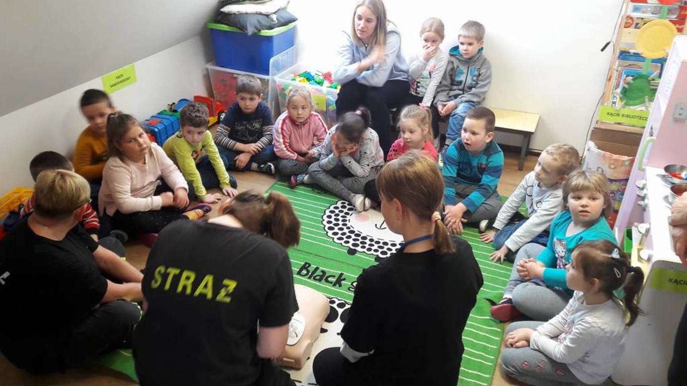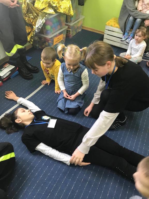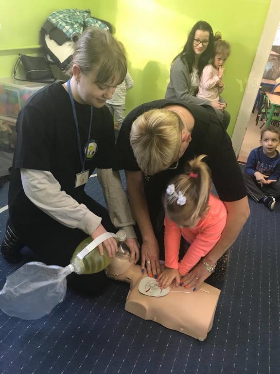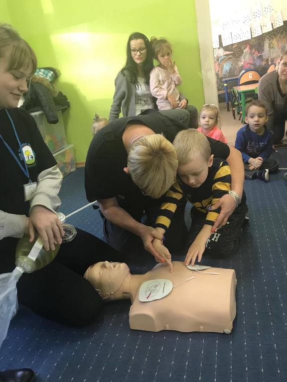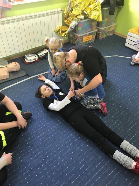 20 listopada w Naszym Przedszkolu odbyły się zajęcia z udzielania pierwszej pomocy przedmedycznej. Podczas zorganizowanego spotkania, dzieci mogły poczuć się jak mali ratownicy. Poznały procedury zachowania się w sytuacjach zagrożenia życia oraz obserwowały czynności ratownicze w czasie zasłabnięć, zranień, zwichnięć i złamań. Wiele emocji wzbudził pokaz czynności z zakresu resuscytacji wykonany na fantomie. Dzieci pod czujnym okiem pani ratownik mogły samodzielnie wykazać się praktyczną znajomością udzielania pierwszej pomocy. Zostały zapoznane ze sprzętem ratującym życie i utrwaliły znajomość numerów alarmowych. Spotkanie miało na celu kształtowanie pozytywnych i bezpiecznych postaw oraz zapoznanie dzieci z podstawowymi czynnościami ratowniczymi w przypadku nieobecności osób dorosłych. Była to doskonała lekcja – połączenie zabawy z przekazywaniem jakże istotnej wiedzy, która może przynieść nieoceniony efekt – ratowanie życia.