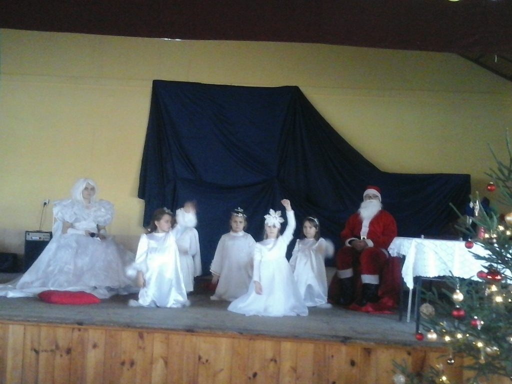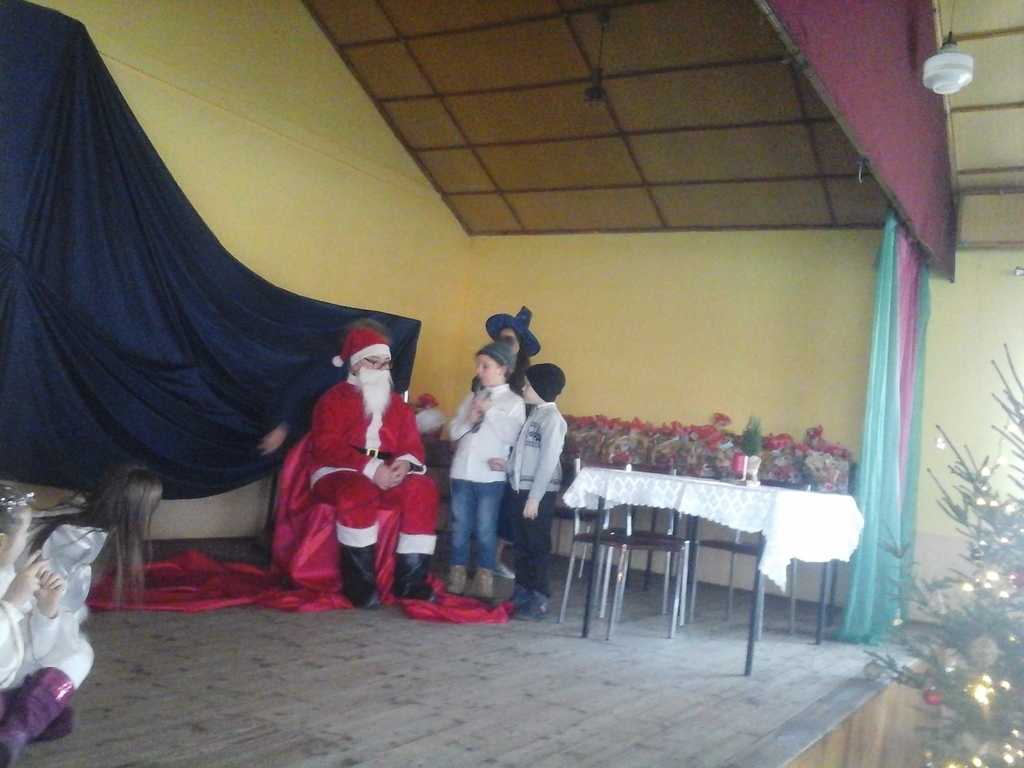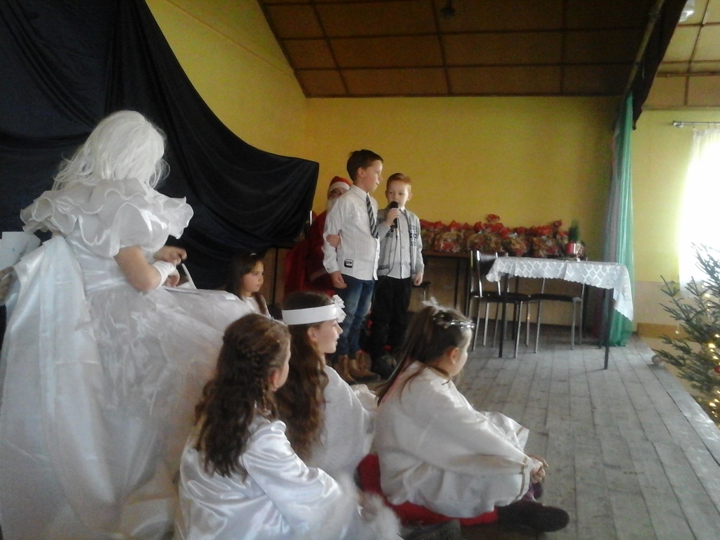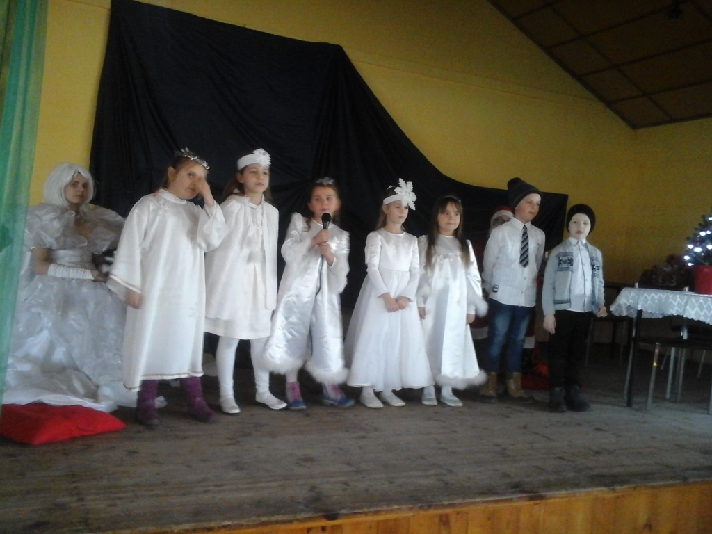 W niedzielę 10 grudnia dzieci z naszej szkoły wystąpiły z inscenizacją świateczną dla dzieci i mieszkańców Wyrębina. Były śnieżynki, wróżka, pani zima oraz oczywiście bardzo wyczekiwany gość- Mikołaj z prezentami.