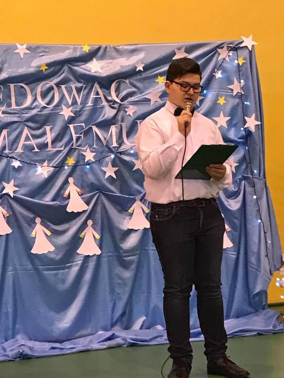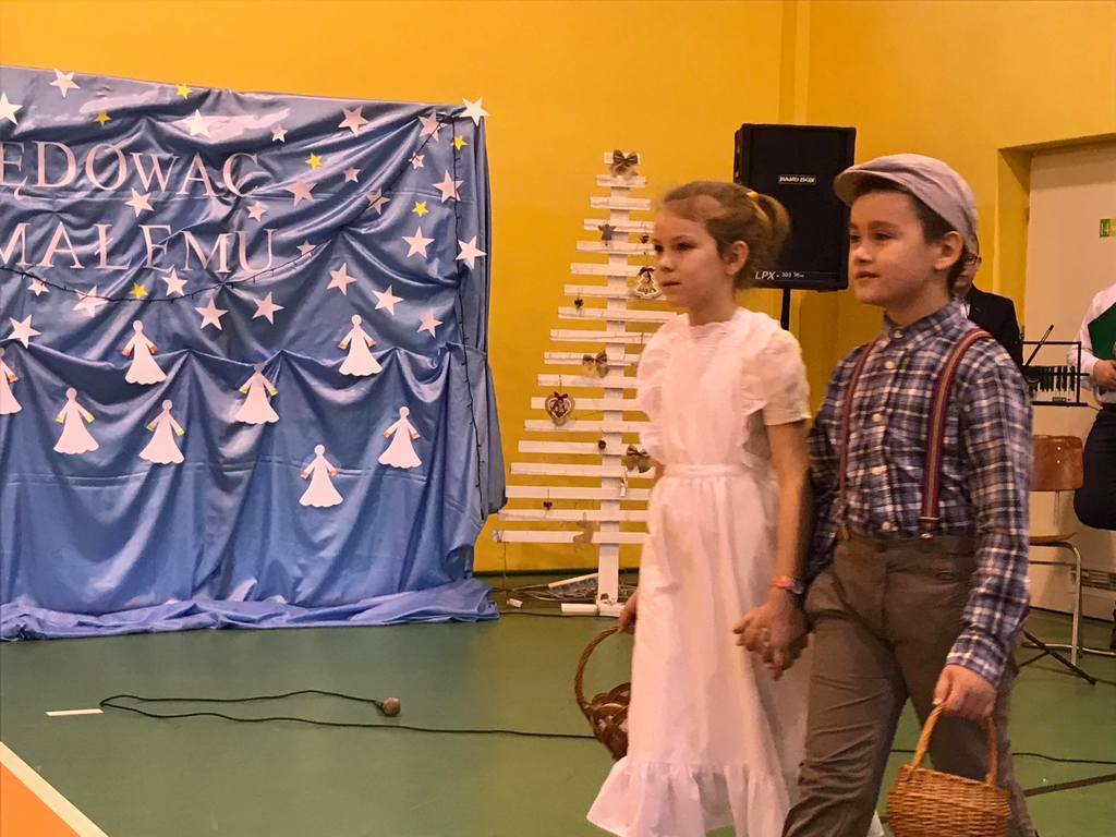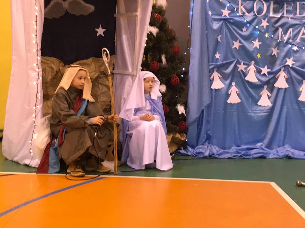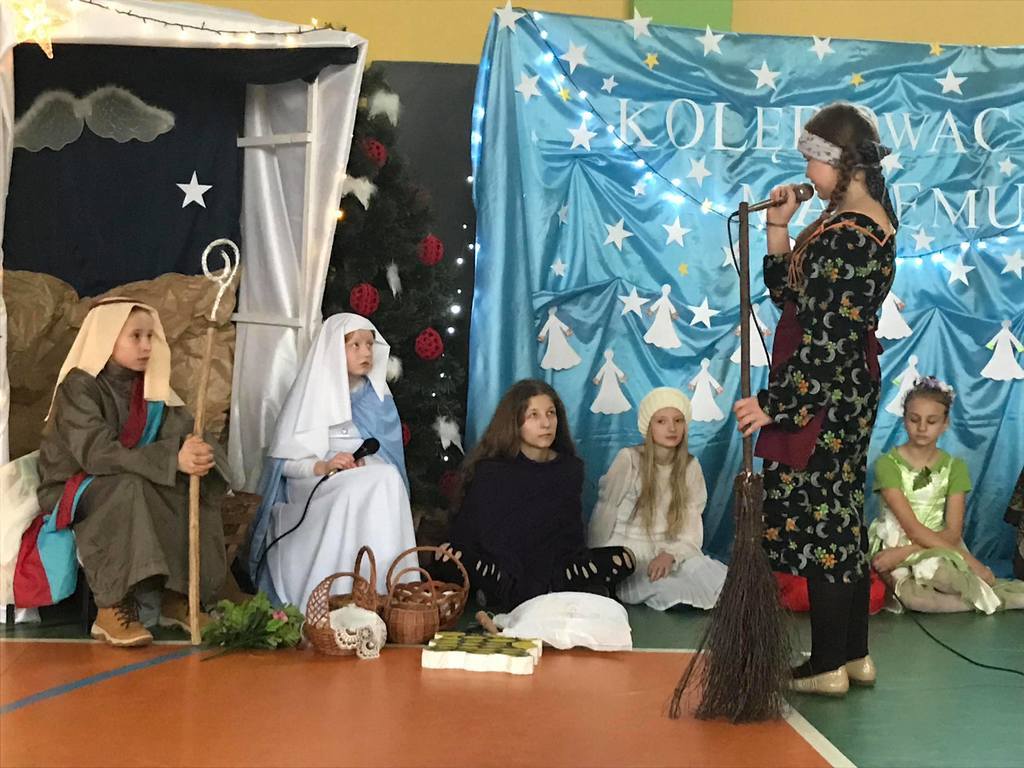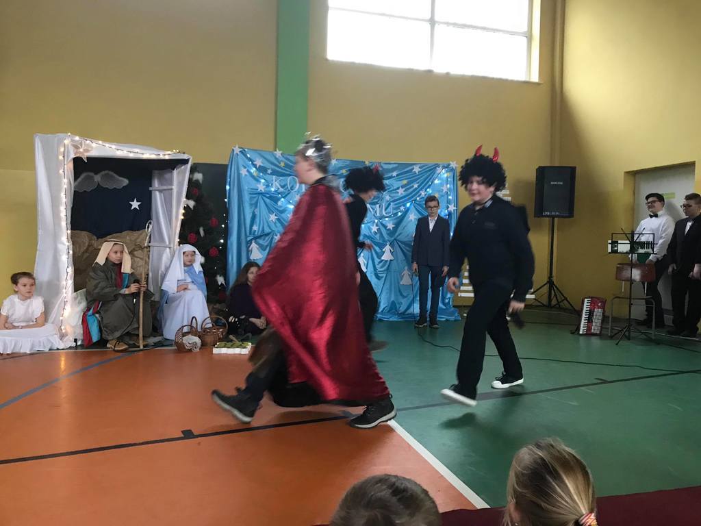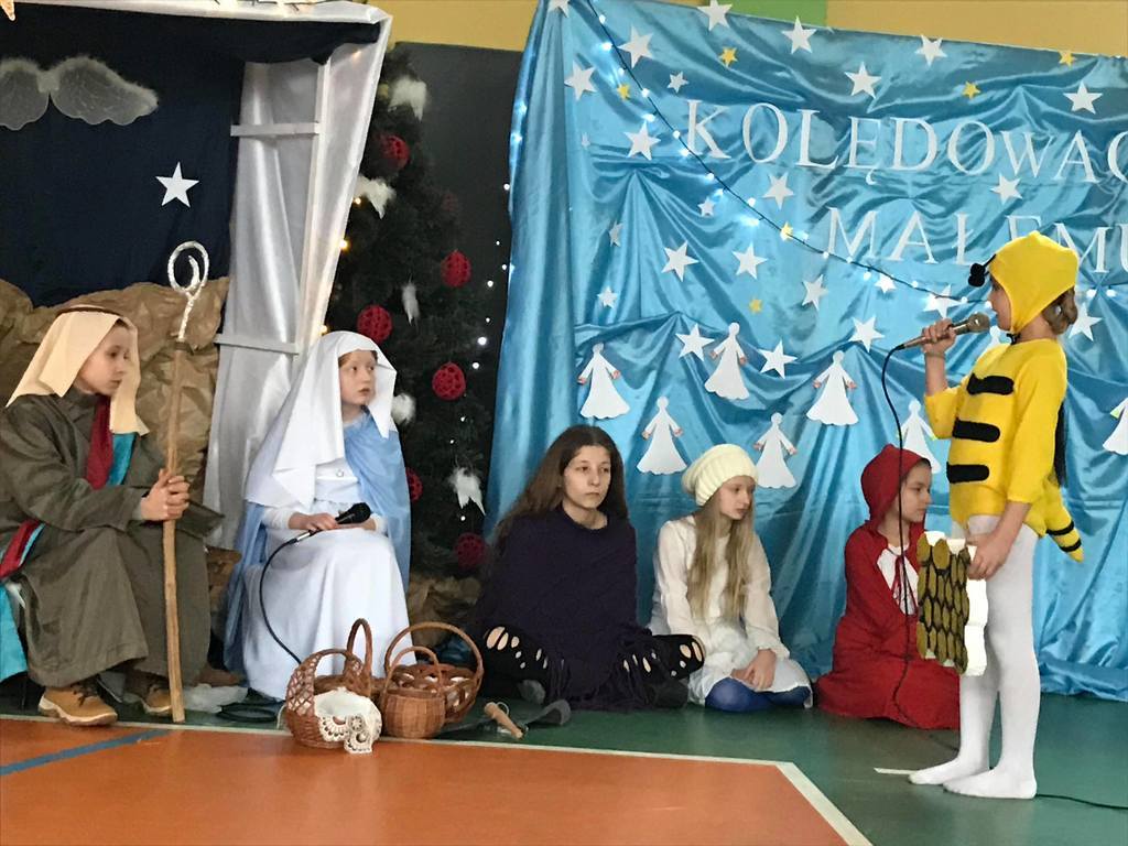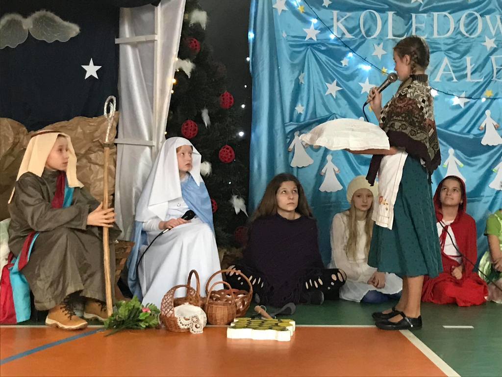 Szczególny czas oczekiwania na Boże Narodzenie, to czas, który skłania zawsze do refleksji. Nauczyciele, uczniowie jak co roku spotkali się 22 grudnia na wspólnym świątecznym apelu. O godz. 8.30 wraz z naszymi zaproszonymi gośćmi zebraliśmy się na sali gimnastycznej, aby obejrzeć część artystyczną w wykonaniu naszych uczniów. Gościliśmy w tym dniu ks. Proboszcza Macieja Krulaka, który rozpoczął naszą uroczystość przeczytaniem fragmentu z Pisma św. mówiącego o narodzeniu się Pana Jezusa. Uczniowie zaprezentowali inscenizację, przypominającą bożonarodzeniowe tradycje oraz wiersze, w których przesłaniem były: miłość, radość, pokój, zgoda i przebaczenie. Na scenie tradycyjnie nie zabrakło żłóbka, choinki, a na stole znalazł się opłatek. Na zakończenie spotkania Pani Dyrektor złożyła wszystkim obecnym i ich rodzinom z serca płynące świąteczne życzenia.