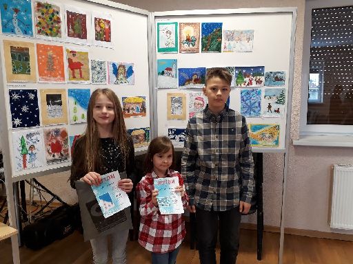 18 stycznia w Ośrodku Kultury uczniowie naszej szkoły oraz dziewczynka z grupy przedszkolnej odebrali nagrody za udział w konkursie plastycznym na „NAJPIĘKNIEJSZE KARTKI BOŻONARODZENIOWE”.