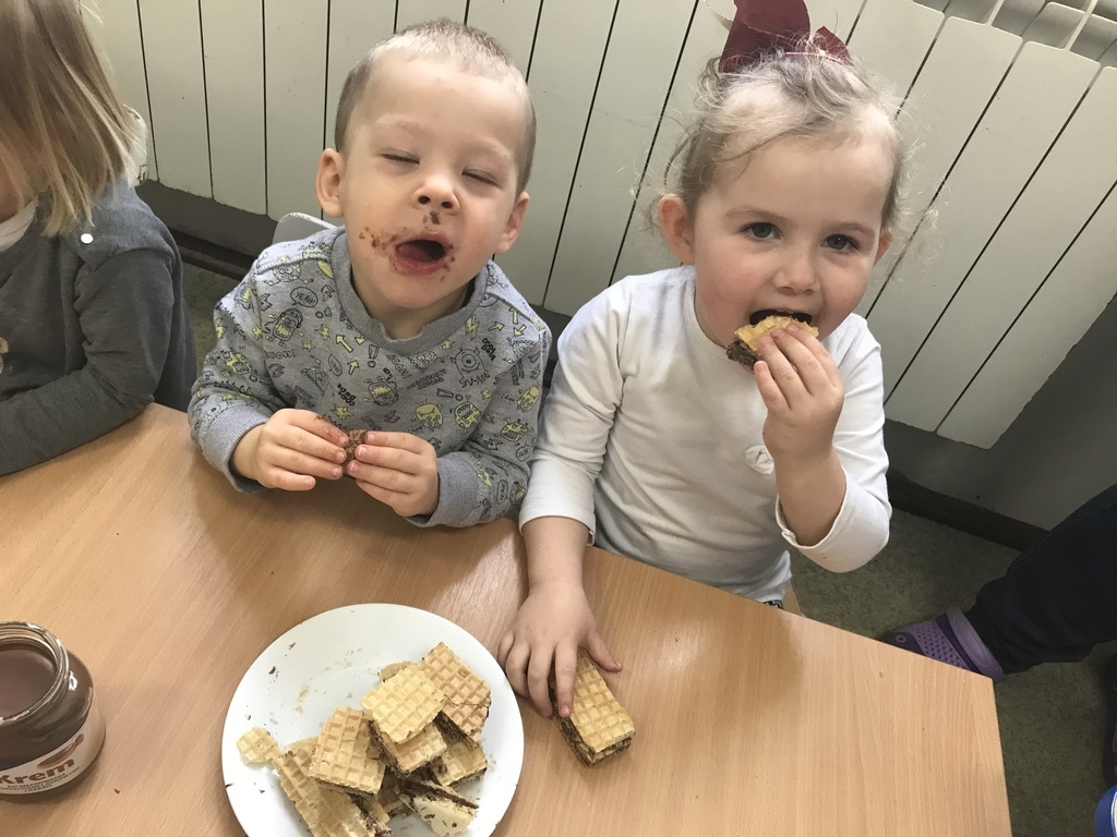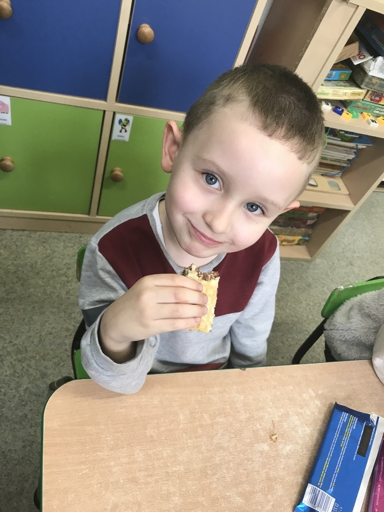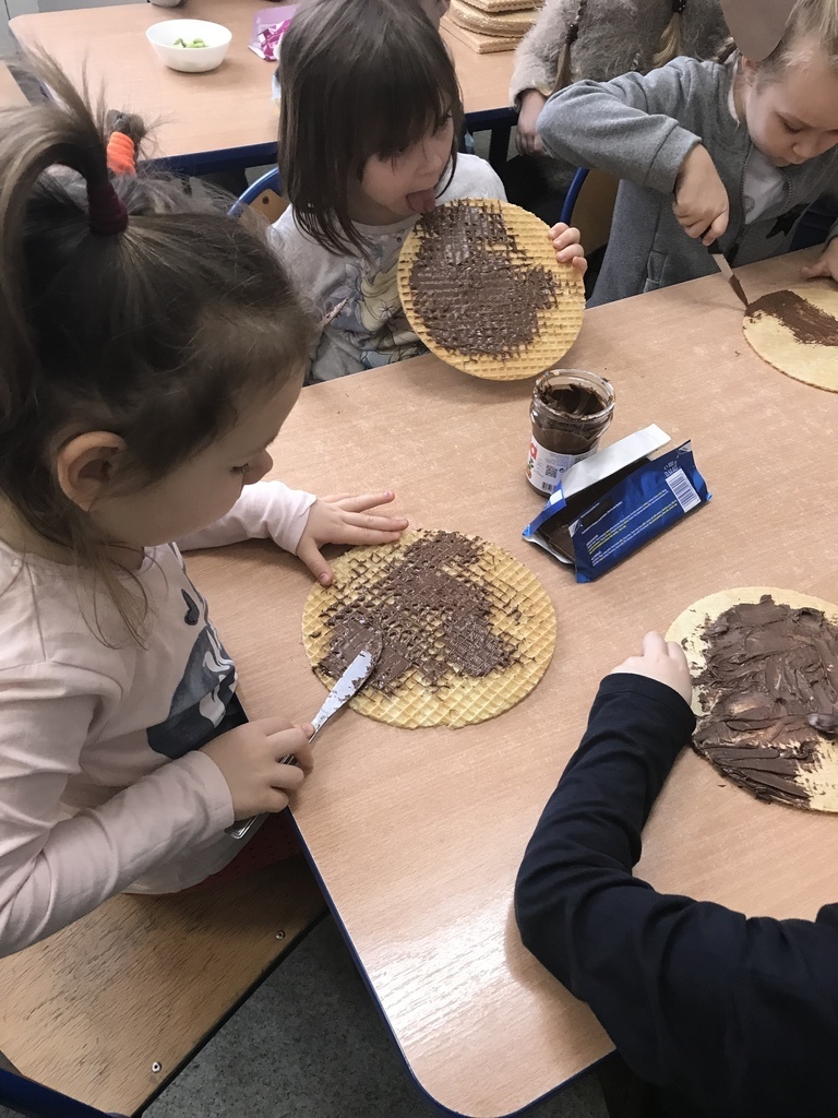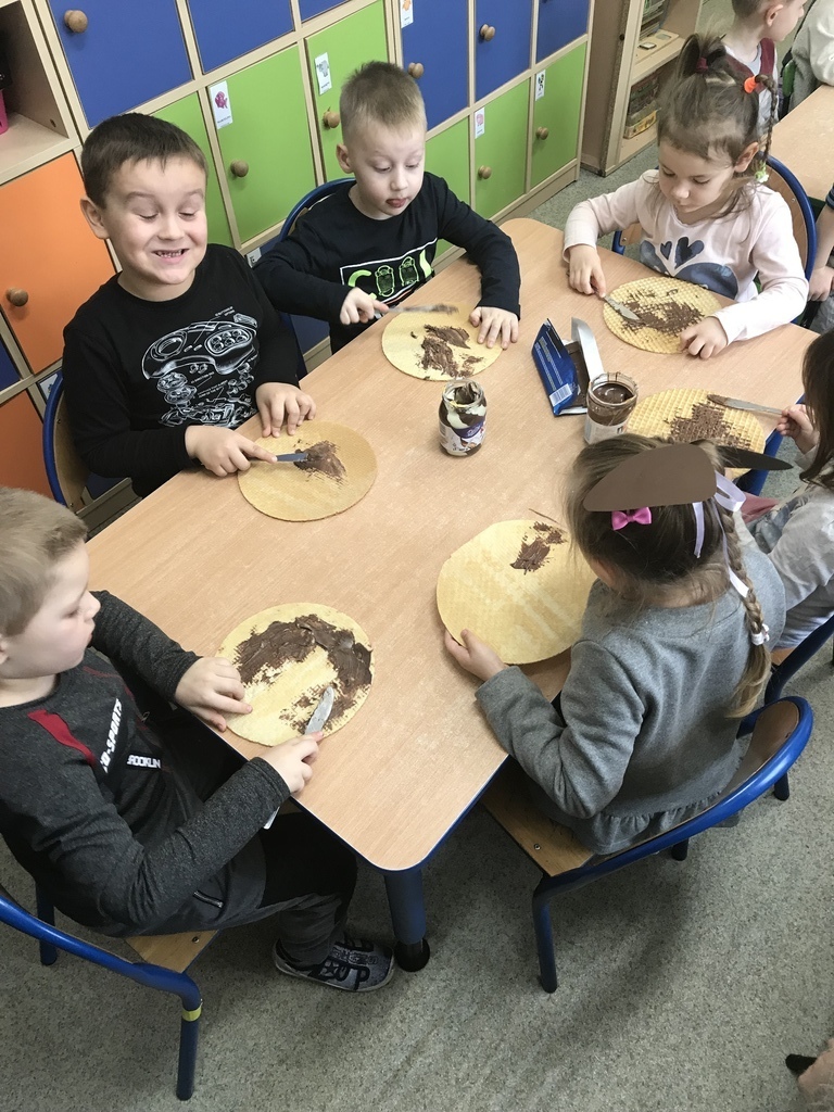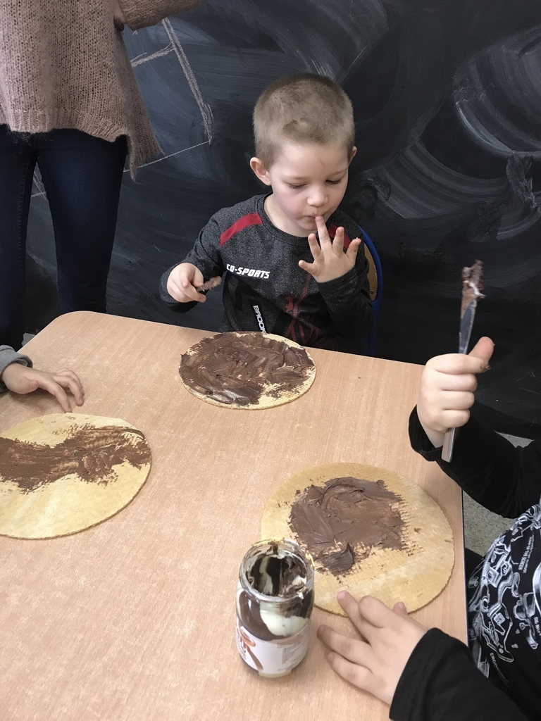 Kolejny kolorowy dzień w Przedszkolu za nami. Tym razem dominował kolor brązowy. Tego dnia Rodzice ubrali swoje pociechy w całą gamę odcieni brązu. Dzieci przyniosły swoje ulubione maskotki, oczywiście takie, które miały chociażby brązową małą łatkę, ucho czy ogonek. Po śniadaniu przedszkolaki obejrzały i spróbowały różnych produktów spożywczych: kawa, ziemniaki, kiwi, orzechy, płatki. Następnie dzieci posmarowały wafle czekoladową nutellą, którymi częstowały swoich rówieśników. Dzień brązowy minął w radosnej i słodkiej atmosferze. Już czekamy na następny kolorowy dzień w przedszkolu, a będzie nim kolor czerwony.