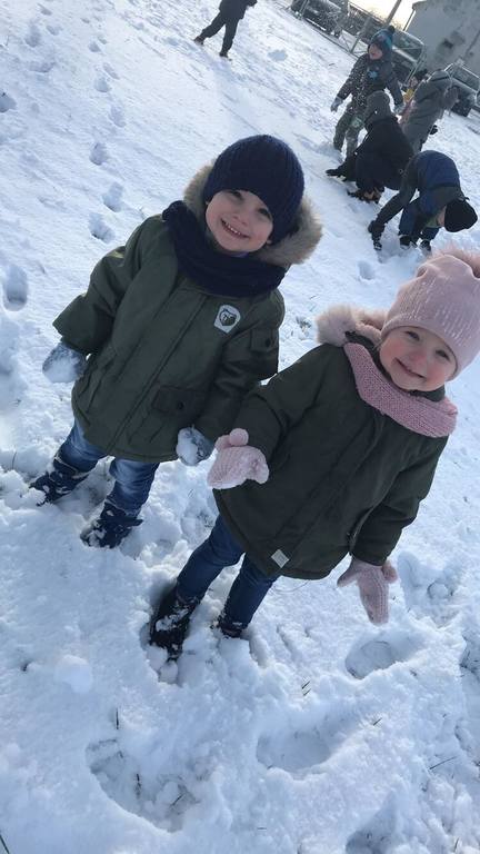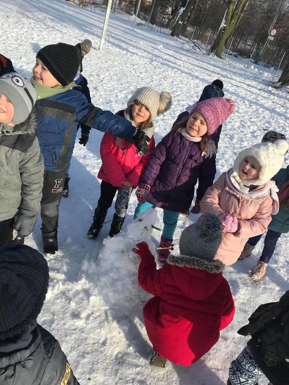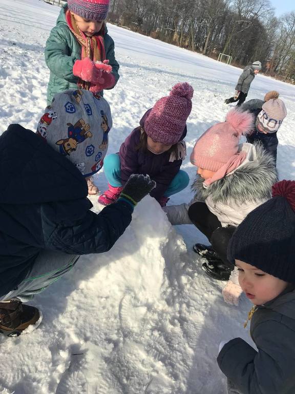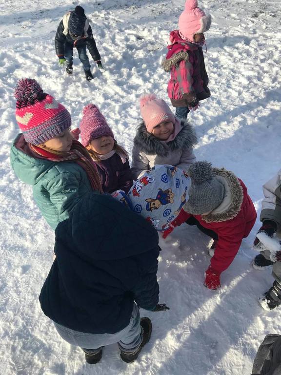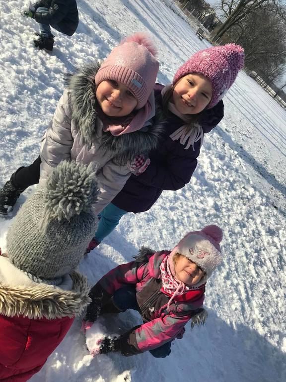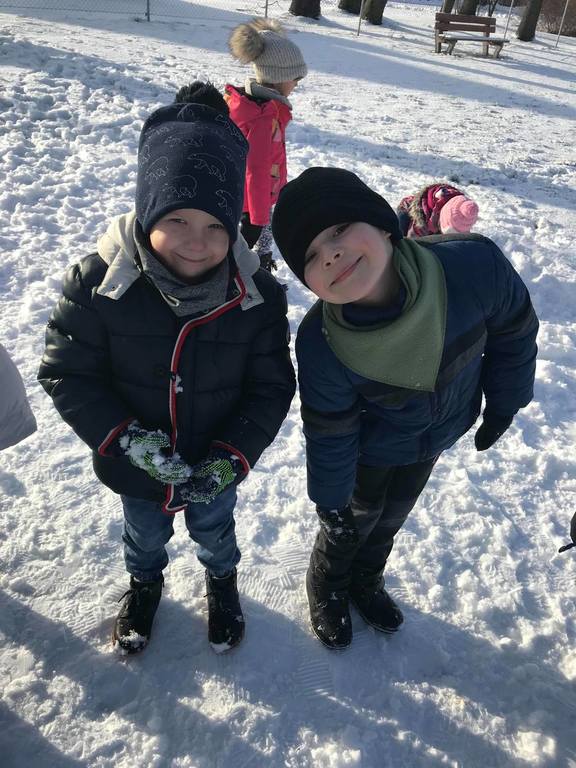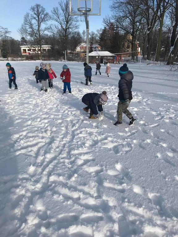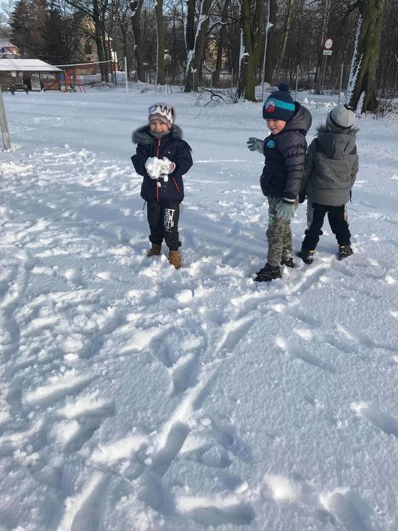 Śnieg to niezwykła frajda dla każdego dziecka. W tym roku dzieci z utęsknieniem wyczekiwały białego puchu na dworze. Pewnego dnia pogoda nas zaskoczyła białymi płatkami, z których najbardziej ucieszyły się nasze przedszkolaki. Wykorzystując tą zimową aurę, przedszkolaki wybrały się na boisko, aby wspólnie pobawić się na świeżym powietrzu. Zabawa na śniegu była pełna radości!