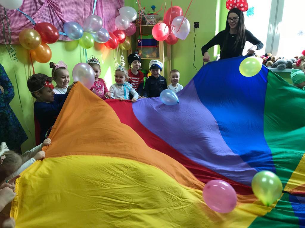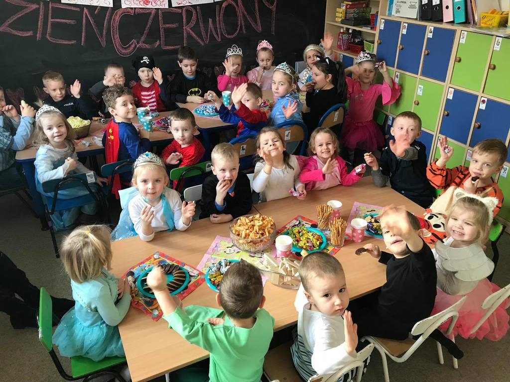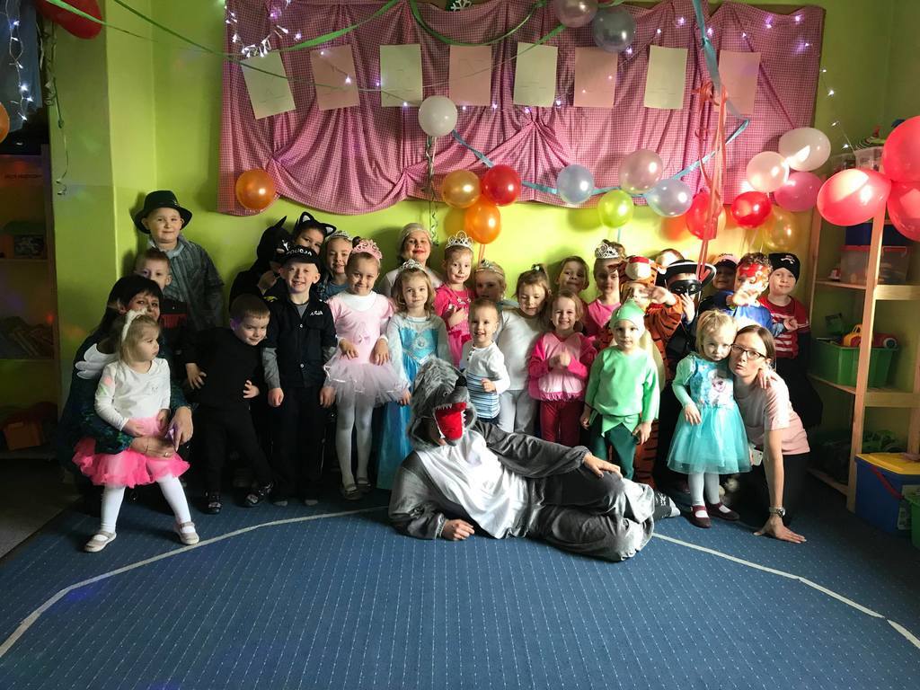 Bal karnawałowy dla przedszkolaków to dzień niezwykły, często wyczekiwany przez wiele tygodni. Jest atrakcją bardzo lubianą przez dzieci, dostarczającą im wielu przeżyć i radości. Tak też było 9 lutego 2018r. W dniu już od rana w przedszkolu pojawiały się kolorowe postacie. Pomysłowość rodziców nie miała granic. Przygotowali oni dla swoich pociech ciekawe stroje karnawałowe. Dzieci przebrane były za bohaterów znanych bajek, w salach przedszkolnych można było spotkać wróżki, rycerzy, piratów, policjantów, Spider-Manów, Batmanów. Rozpoznać dzieci było bardzo trudno. Na twarzach wszystkich dzieci był uśmiech, nie brakowało sił do tańca i hulanek. Podczas przerwy w zabawach na stołach czekały przekąski oraz napoje. Dziękujemy dzieciom i rodzicom za zaangażowanie w przygotowanie pięknych balowych strojów. Kolejny bal karnawałowy już za rok!