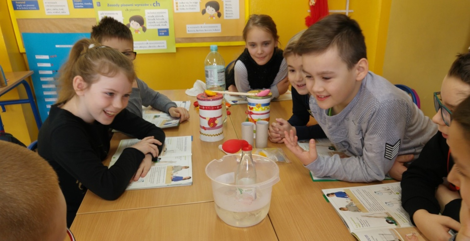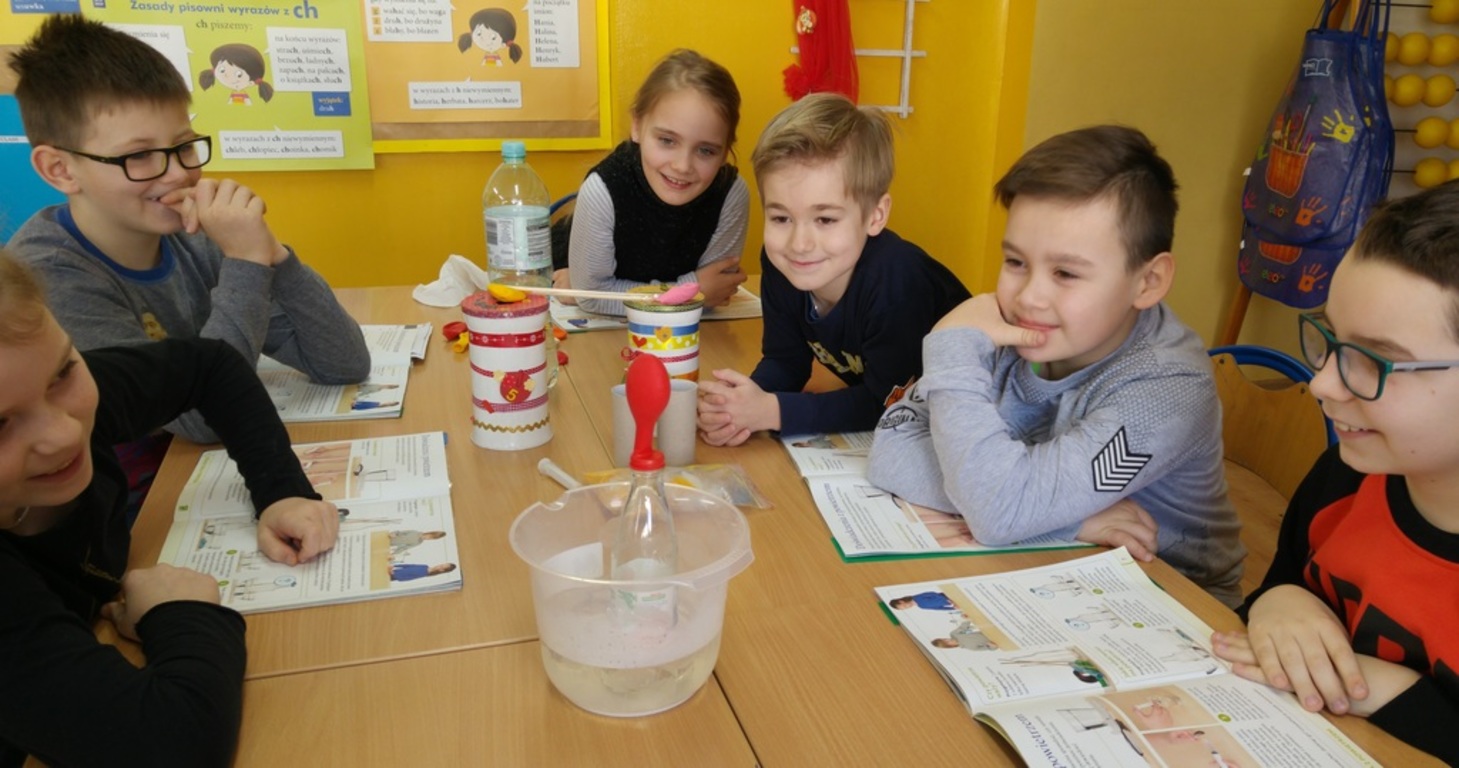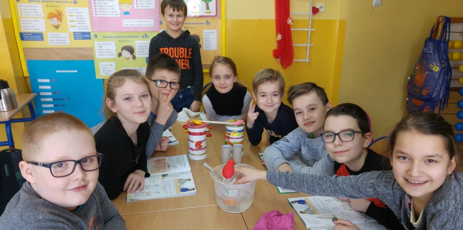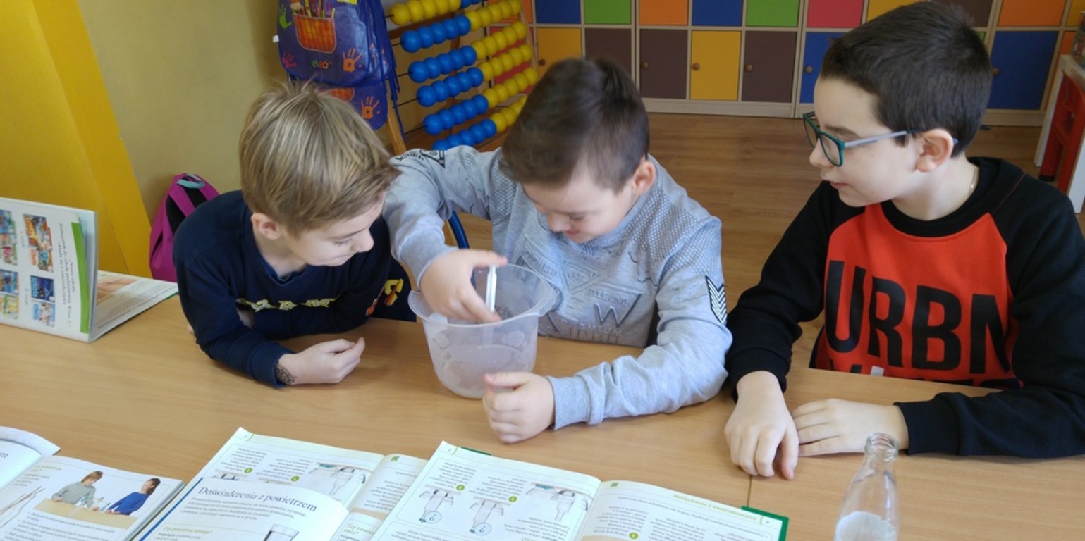 Powietrze jako jeden z najistotniejszych składników naszego środowiska, powinno być poznawane i badane w ramach procesu edukacyjnego już od pierwszych lat nauki w szkole. W trakcie edukacji należy umożliwić uczniom poznanie różnych obliczy powietrza. Jednym z pierwszych etapów powinno być potwierdzenie jego istnienia i zbadanie jego podstawowych własności najbardziej istotnych dla życia na Ziemi.W nawiązaniu do omawianej tematyki zajęć „Siła powietrza” uczniowie kl. III pod czujnym okiem swojej wychowawczyni przeprowadzili doświadczenia, aby odpowiedzieć sobie na pytania: Czy powietrze istnieje, ile waży oraz jakie ma właściwości? Dzieci były zachwycone tymi eksperymentami, podejmowały próby stawiania hipotez i wyciągania wniosków z obserwowanych zjawisk.
