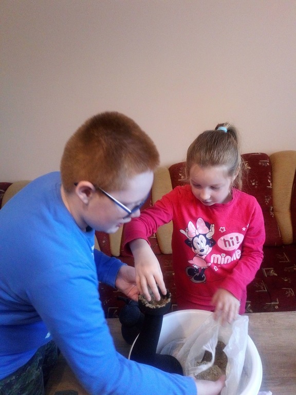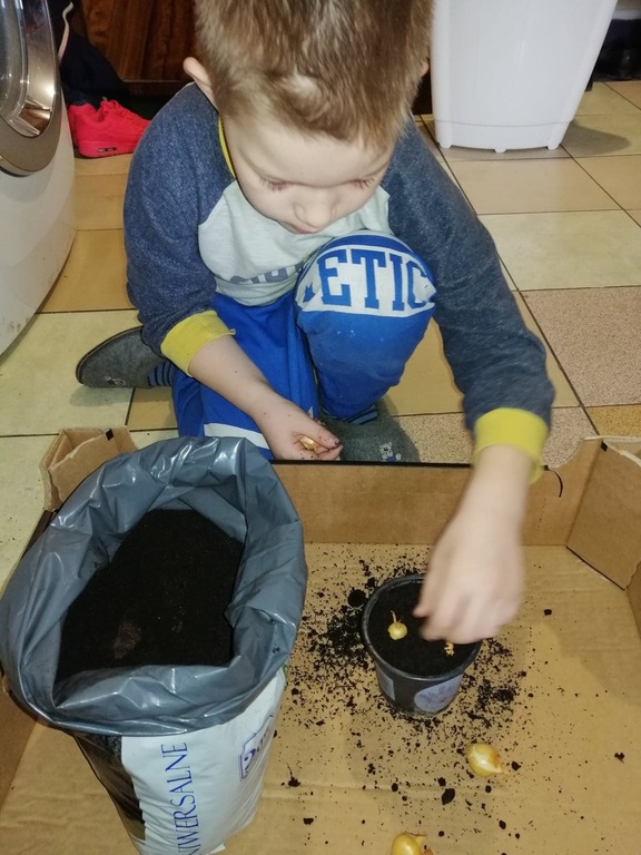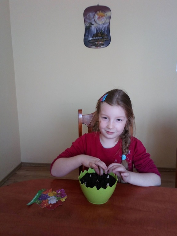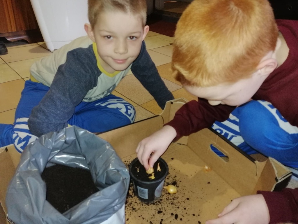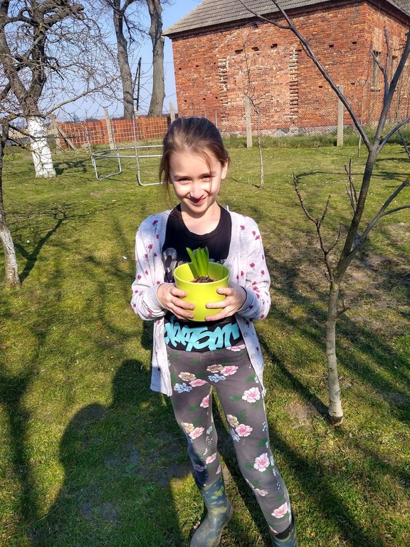 Podczas zdalnego nauczania uczniowie kl. I wzorowo wywiązują się ze swoich obowiązków, będąc w stałym kontakcie ze swoim wychowawcą. Nie tylko uczą się czytać, pisać czy liczyć ale również bardzo chętnie przeprowadzają doświadczenia, zakładają własną uprawę roślin czy wykonują prace plastyczno – techniczne. Niektóre dzieci nawet małymi kroczkami przygotowują się już na przybycie wielkanocnego „zajączka”.