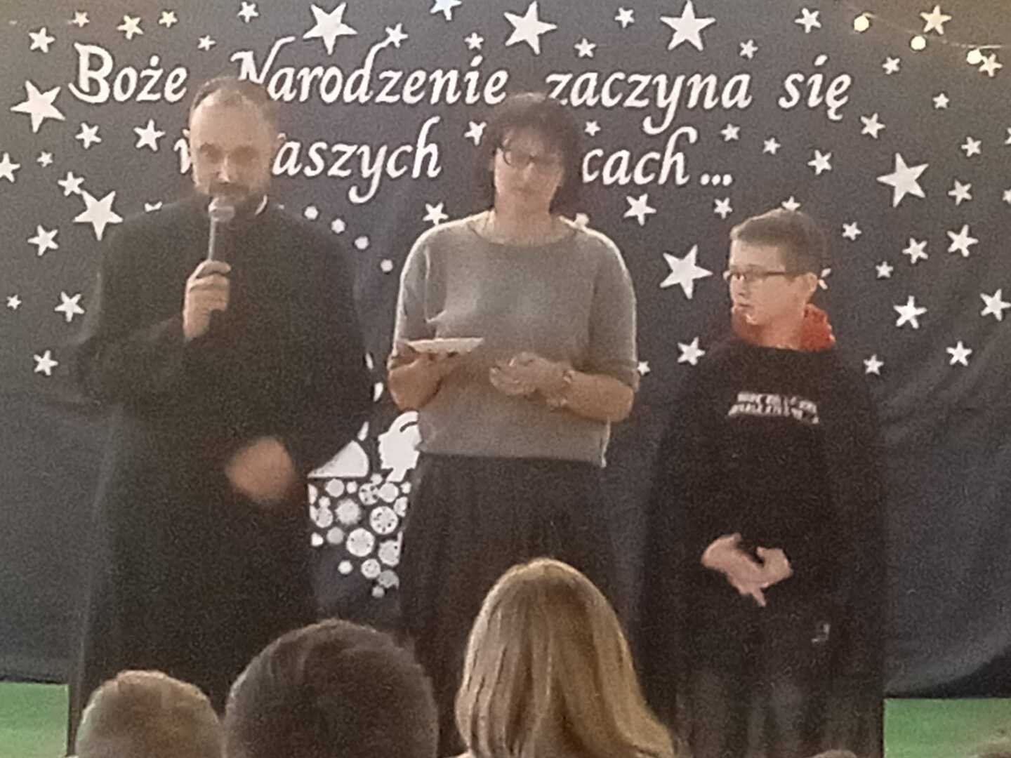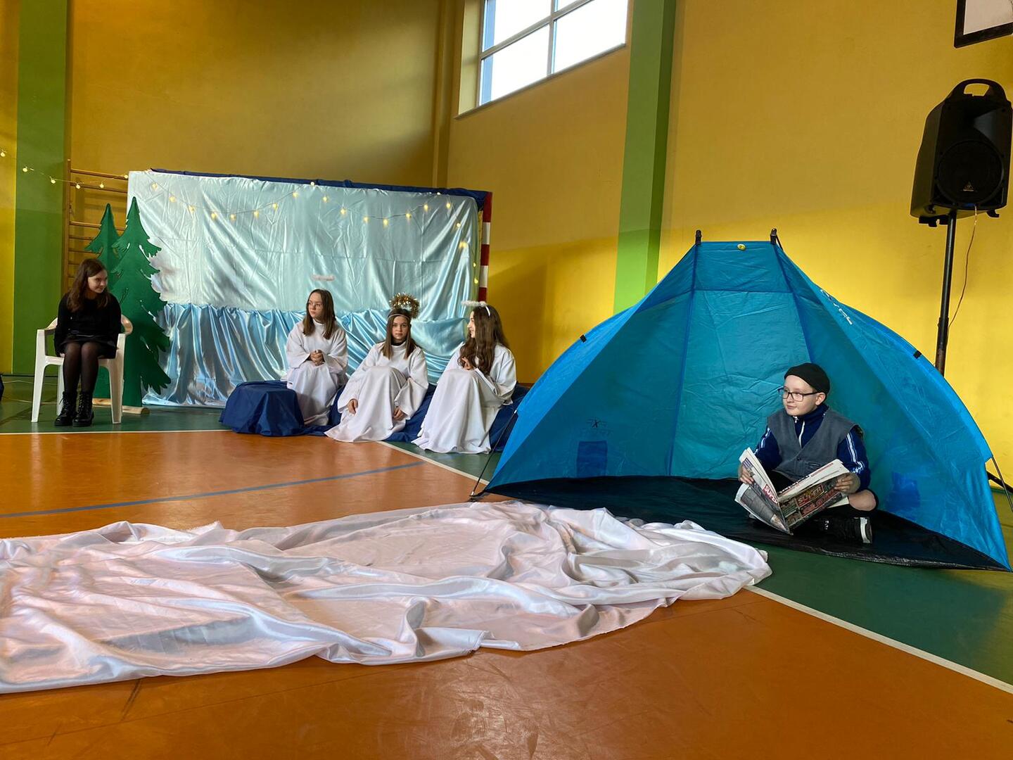 艢wi臋towanie rozpocz臋艂o si臋 od wystawienia spektaklu jase艂kowego pt. „Daj膮c dobro drugiemu, czynisz je sobie samemu”, w którym to uczniowie klasy IV i V oraz kilkoro uczniów klasy VII z wielkim zaanga偶owaniem i po mistrzowsku wcieli艂o si臋 w odgrywane postaci. Przedstawienie nios艂o wyj膮tkowy przekaz. By艂a to nauka przez prze偶ywanie, nauka wra偶liwo艣ci, empatii i umiej臋tno艣ci dostrzegania drugiego cz艂owieka.