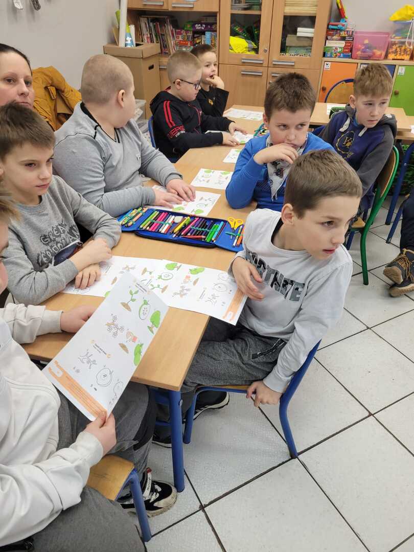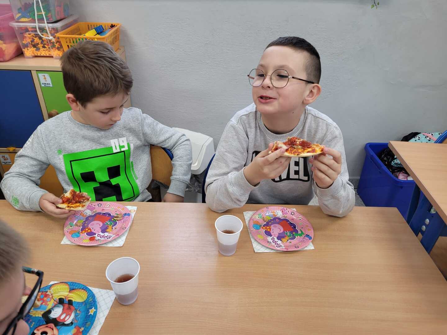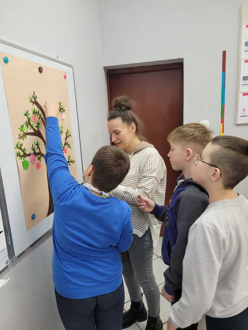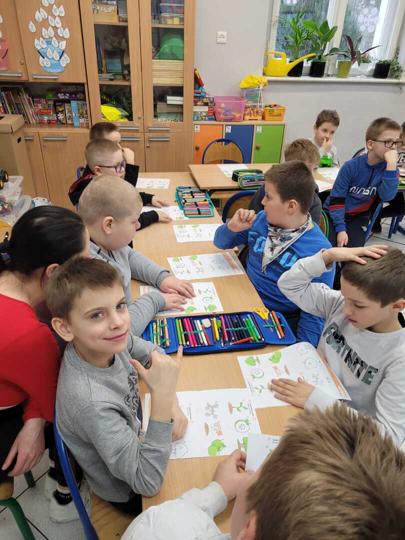 18 stycznia z inicjatywy Pani dyrektor Agnieszki Misiak odbyła się integracyjna lekcja z j.angielskiego na którą zaproszeni zostali uczniowie ze Specjalnego Ośrodka Szkolno- Wychowawczego im. Janusza Korczaka w Borzęciczkach wraz z Panią dyrektor Aldoną Klinkosz i opiekunami. Tematem przewodnim był cykl życia jabłoni od nasion do dojrzałego drzewa i jego owocu-jabłka. Podczas zajęć uczniowie brali aktywny udział w zdobywaniu wiedzy z j.angielskiego poprzez rozwiązywanie quizów oraz kart pracy,śpiewanie piosenek oraz uczestnictwo w zabawach językowych. Nie zabrakło również pracy plastycznej z jabłkiem w roli głównej.Była to doskonała okazja do utrwalenia nazw kolorów,owoców oraz liczebników w j.angielskim. Zajęcia przeprowadzone w taki sposób zachęcają dzieci do nauki j.angielskiego. Pod koniec wszyscy poczęstowali się pyszną pizzą oraz herbatą malinową. To było bardzo ciekawe spotkanie.Naszym sąsiadom dziękujemy za przybycie i miło spędzony czas.
