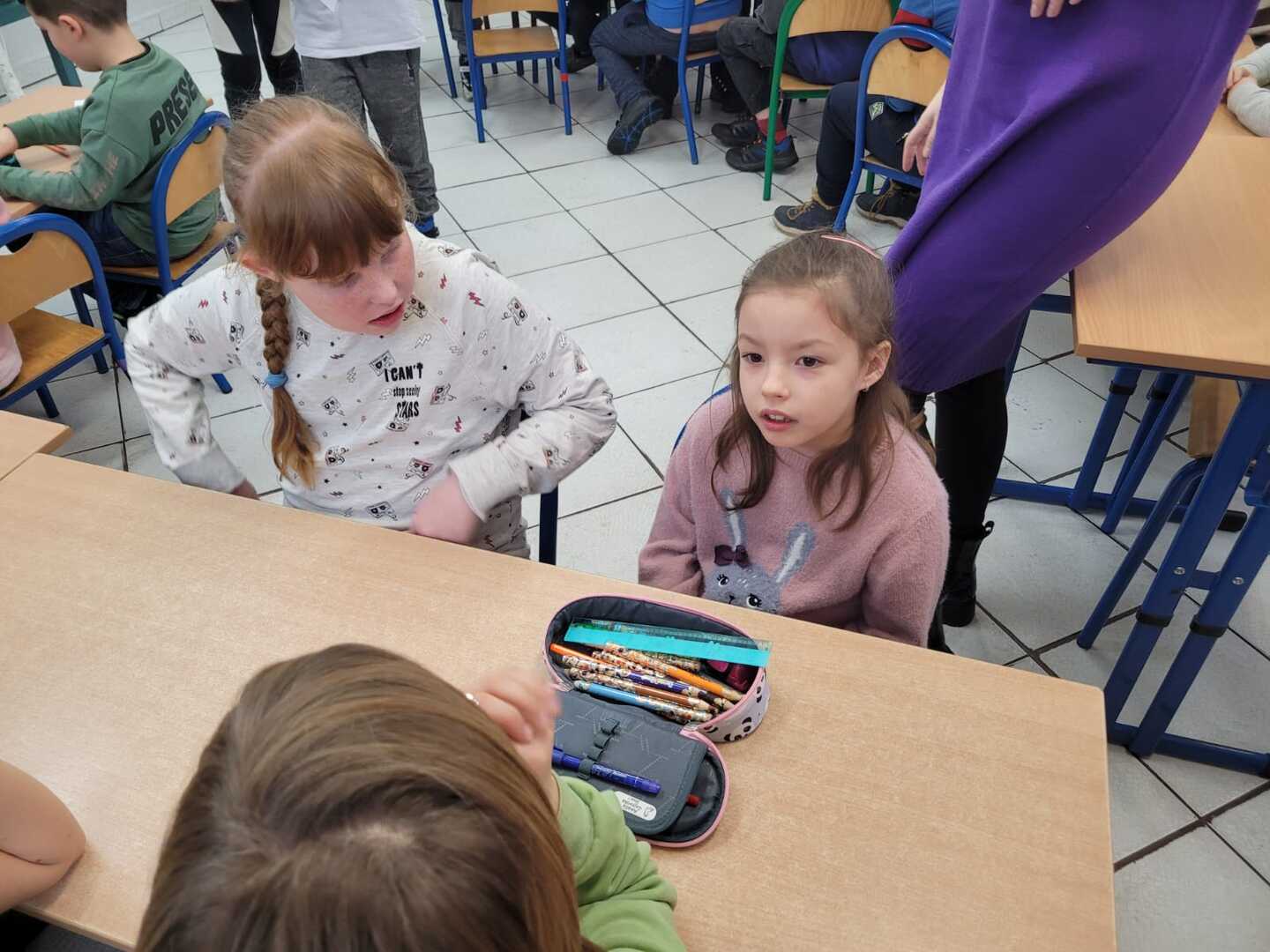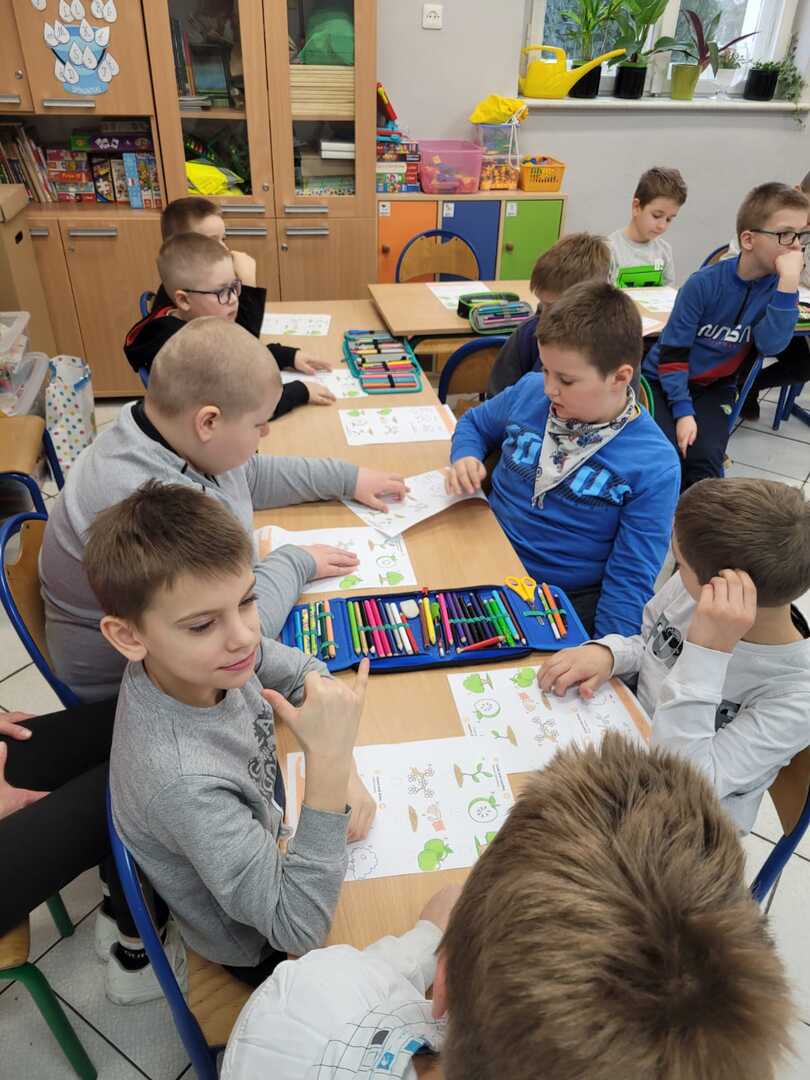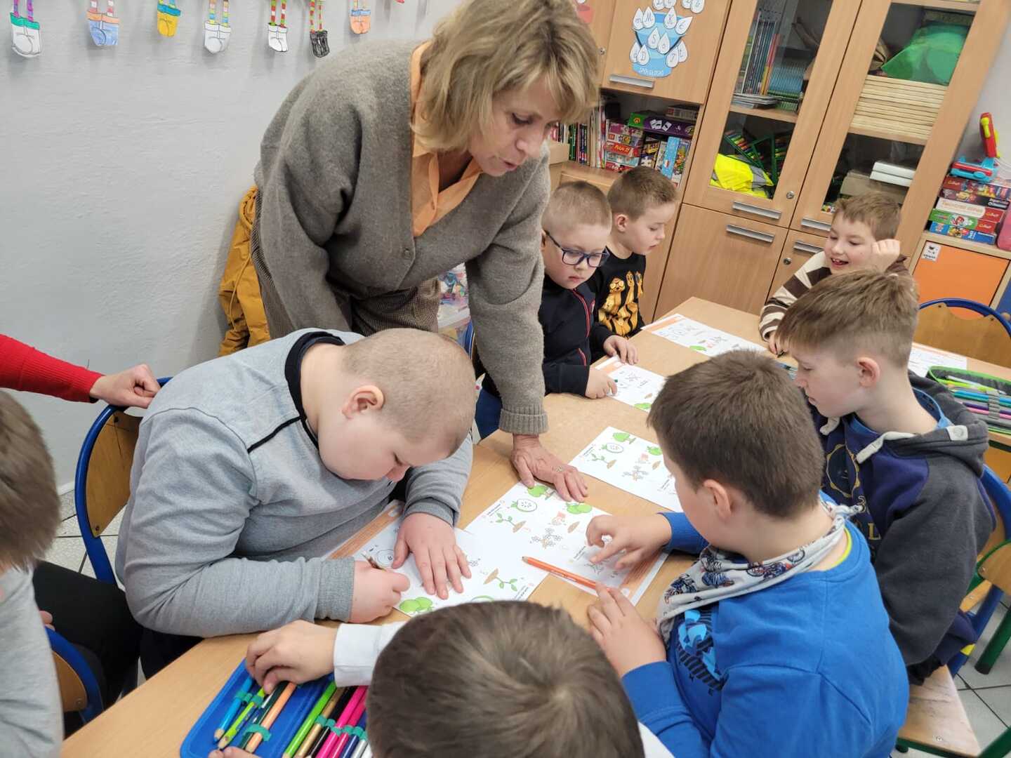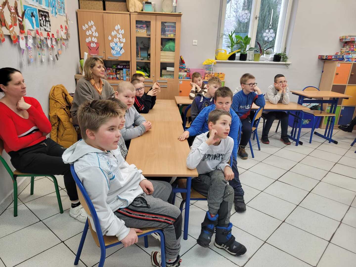 18 stycznia z inicjatywy Pani dyrektor Agnieszki Misiak odbyła się integracyjna lekcja z j.angielskiego na którą zaproszeni zostali uczniowie ze Specjalnego Ośrodka Szkolno- Wychowawczego im. Janusza Korczaka w Borzęciczkach wraz z Panią dyrektor Aldoną Klinkosz i opiekunami. Tematem przewodnim był cykl życia jabłoni od nasion do dojrzałego drzewa i jego owocu-jabłka. Podczas zajęć uczniowie brali aktywny udział w zdobywaniu wiedzy z j.angielskiego poprzez rozwiązywanie quizów oraz kart pracy,śpiewanie piosenek oraz uczestnictwo w zabawach językowych. Nie zabrakło również pracy plastycznej z jabłkiem w roli głównej.Była to doskonała okazja do utrwalenia nazw kolorów,owoców oraz liczebników w j.angielskim. Zajęcia przeprowadzone w taki sposób zachęcają dzieci do nauki j.angielskiego. Pod koniec wszyscy poczęstowali się pyszną pizzą oraz herbatą malinową. To było bardzo ciekawe spotkanie.Naszym sąsiadom dziękujemy za przybycie i miło spędzony czas.