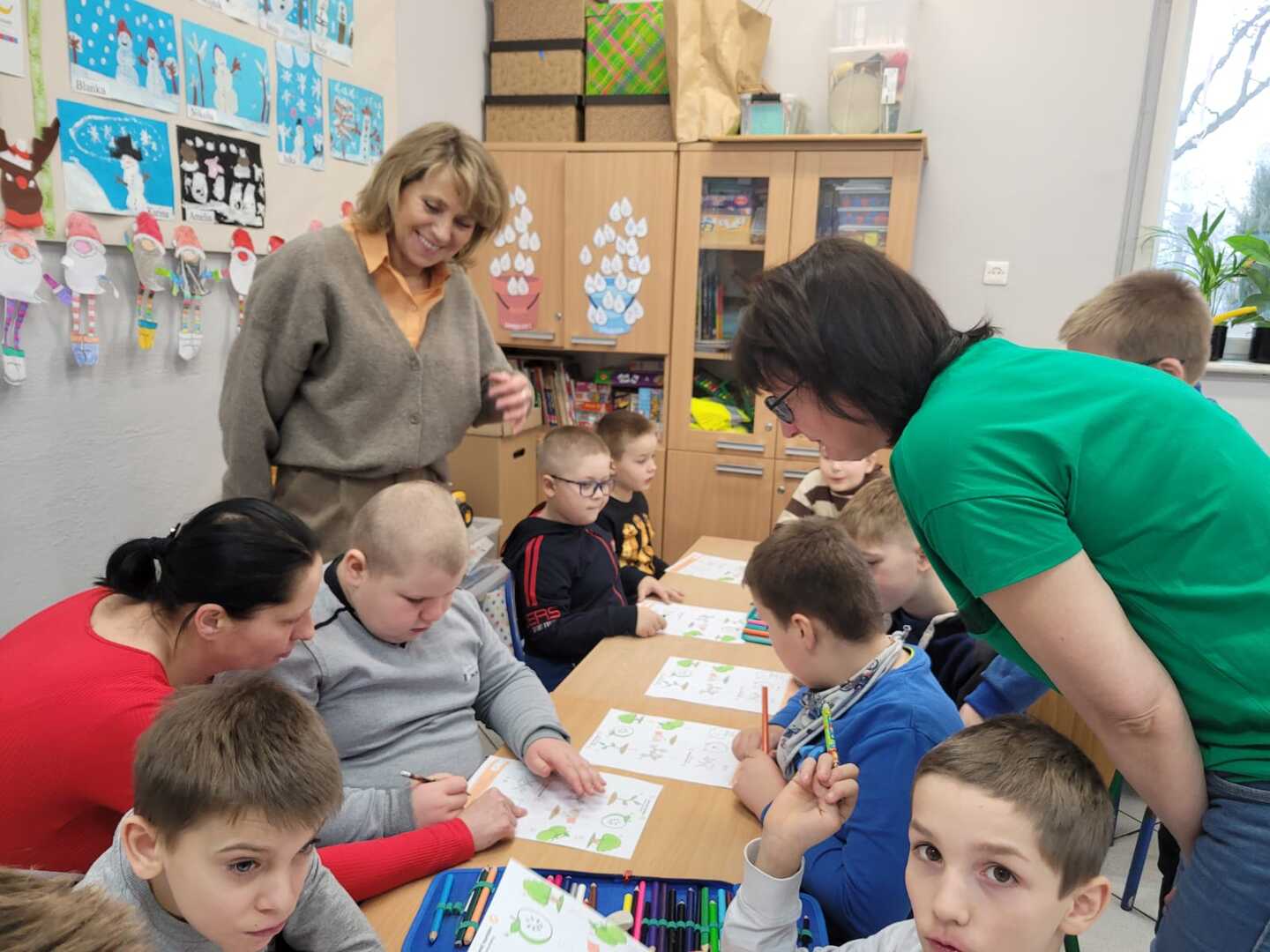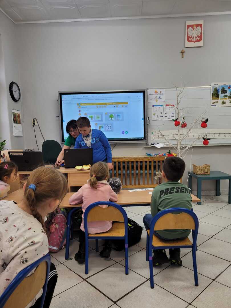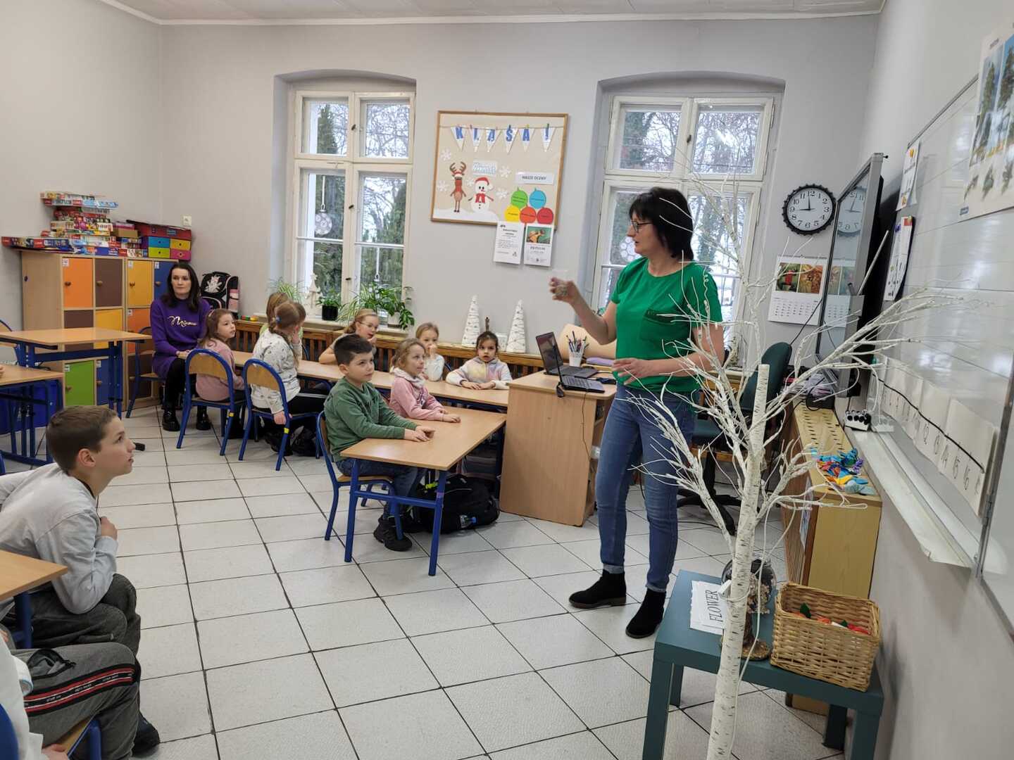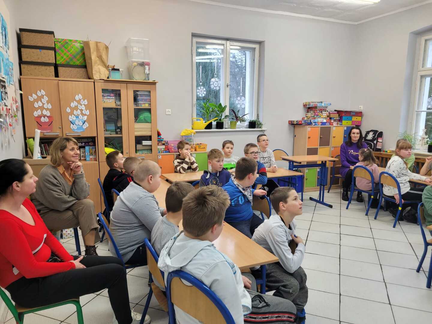 18 stycznia z inicjatywy Pani dyrektor Agnieszki Misiak odbyła się integracyjna lekcja z j.angielskiego na którą zaproszeni zostali uczniowie ze Specjalnego Ośrodka Szkolno- Wychowawczego im. Janusza Korczaka w Borzęciczkach wraz z Panią dyrektor Aldoną Klinkosz i opiekunami. Tematem przewodnim był cykl życia jabłoni od nasion do dojrzałego drzewa i jego owocu-jabłka. Podczas zajęć uczniowie brali aktywny udział w zdobywaniu wiedzy z j.angielskiego poprzez rozwiązywanie quizów oraz kart pracy,śpiewanie piosenek oraz uczestnictwo w zabawach językowych. Nie zabrakło również pracy plastycznej z jabłkiem w roli głównej.Była to doskonała okazja do utrwalenia nazw kolorów,owoców oraz liczebników w j.angielskim. Zajęcia przeprowadzone w taki sposób zachęcają dzieci do nauki j.angielskiego. Pod koniec wszyscy poczęstowali się pyszną pizzą oraz herbatą malinową. To było bardzo ciekawe spotkanie.Naszym sąsiadom dziękujemy za przybycie i miło spędzony czas.