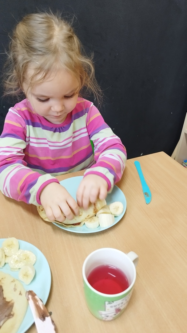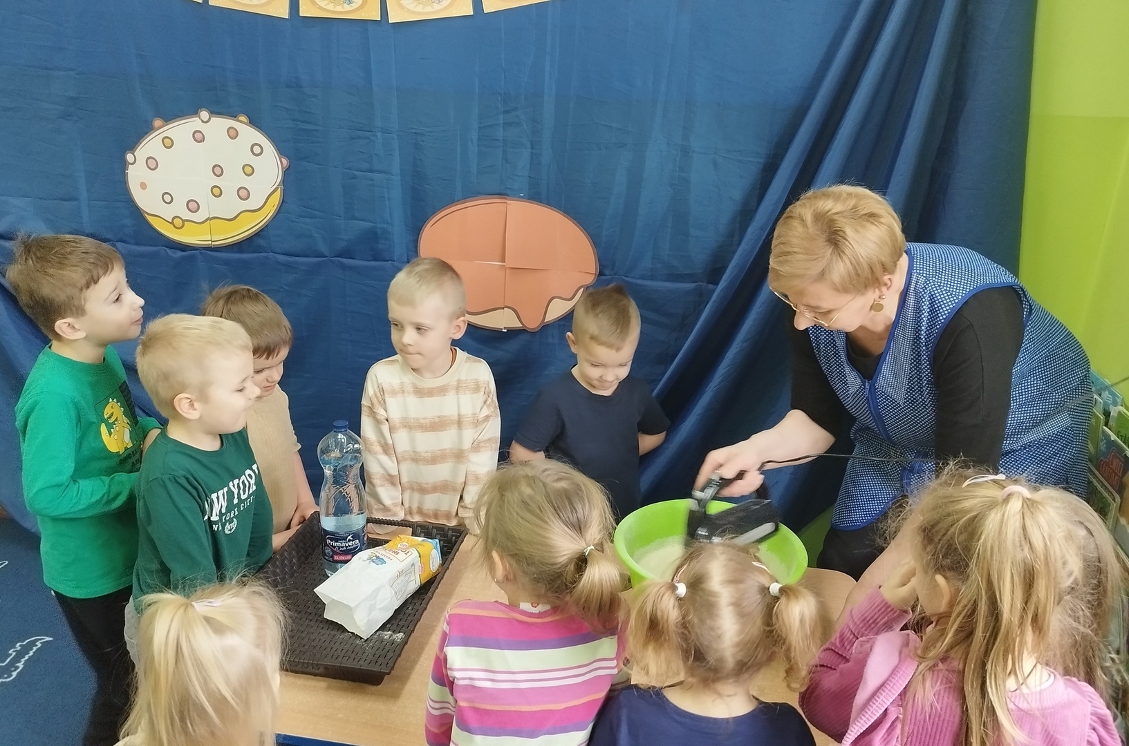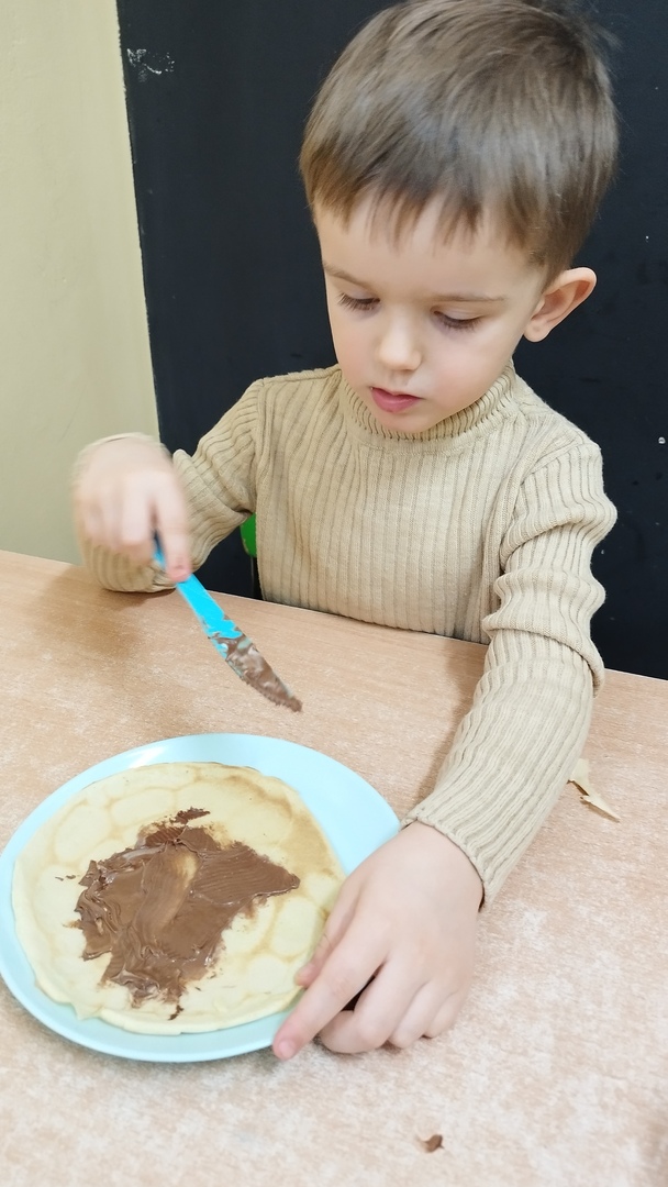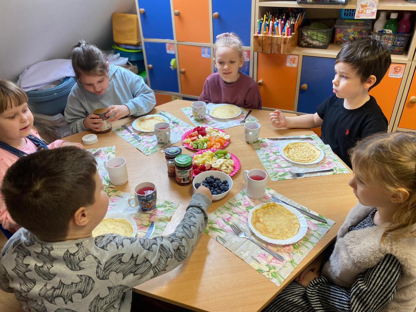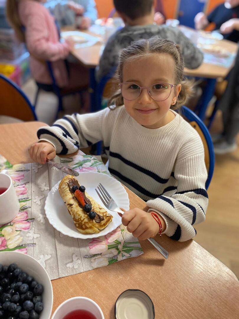 Obchodzony w tym roku 2 lutego Dzień Naleśnika był doskonałą okazją do zorganizowania w naszym przedszkolu zajęć i zabaw z jego wykorzystaniem. Tego dnia nie mogło zabraknąć także akcentów kulinarnych. Dzieci poznały przepis na to danie oraz doskonaliły umiejetność matematyczne. Dzieci miały również okazję wykazać się własną inwencją podczas przygotowywania deseru w postaci naleśników z ulubionymi dodatkami. Zdecydowanie najprzyjemniejszym i najbardziej wyczekiwanym momentem całego dnia była degustacja samodzielnie skomponowanego deseru.