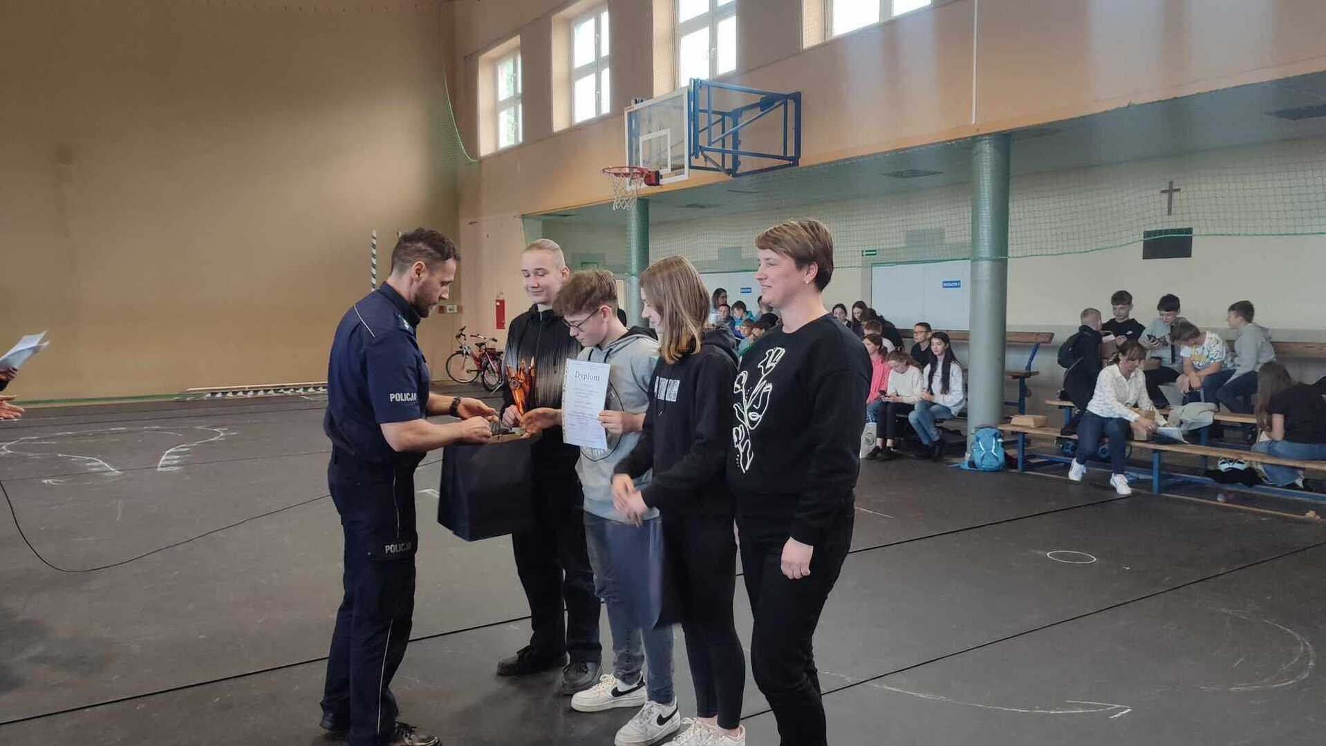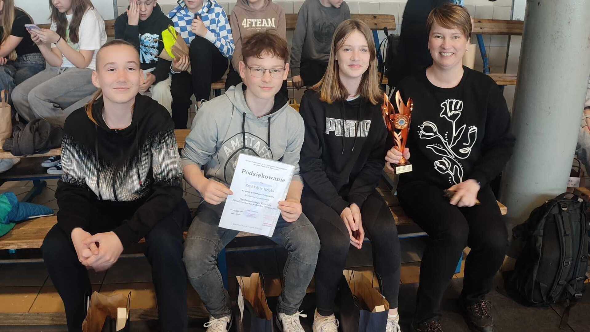 We wtorek 16 kwietnia w Szkole Podstawowej nr 3 w Krotoszynie, odbyły się powiatowe eliminacje XLV Ogólnopolskiego Turnieju Bezpieczeństwa w Ruchu Drogowym. Uczestnicy mieli do rozwiązania test z wiedzy i skrzyżowań oraz zadania praktyczne: pokonanie rowerem toru przeszkód i udzielenie pomocy przedmedycznej. Naszą szkołę reprezentowali uczniowie klasy VII: Lena Pachurka, Tomasz Fabisiak oraz Mateusz Walczak. Drużyna zdobyła trzecie miejsce.
