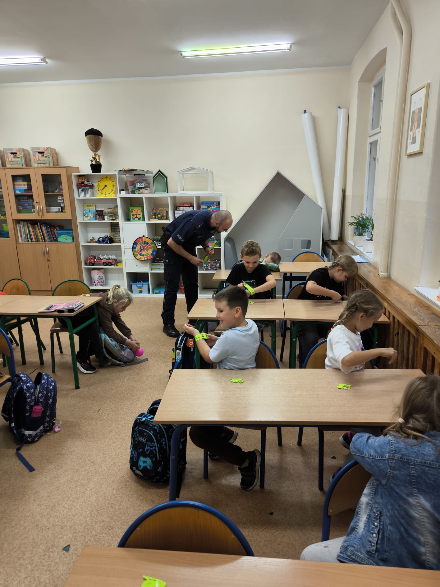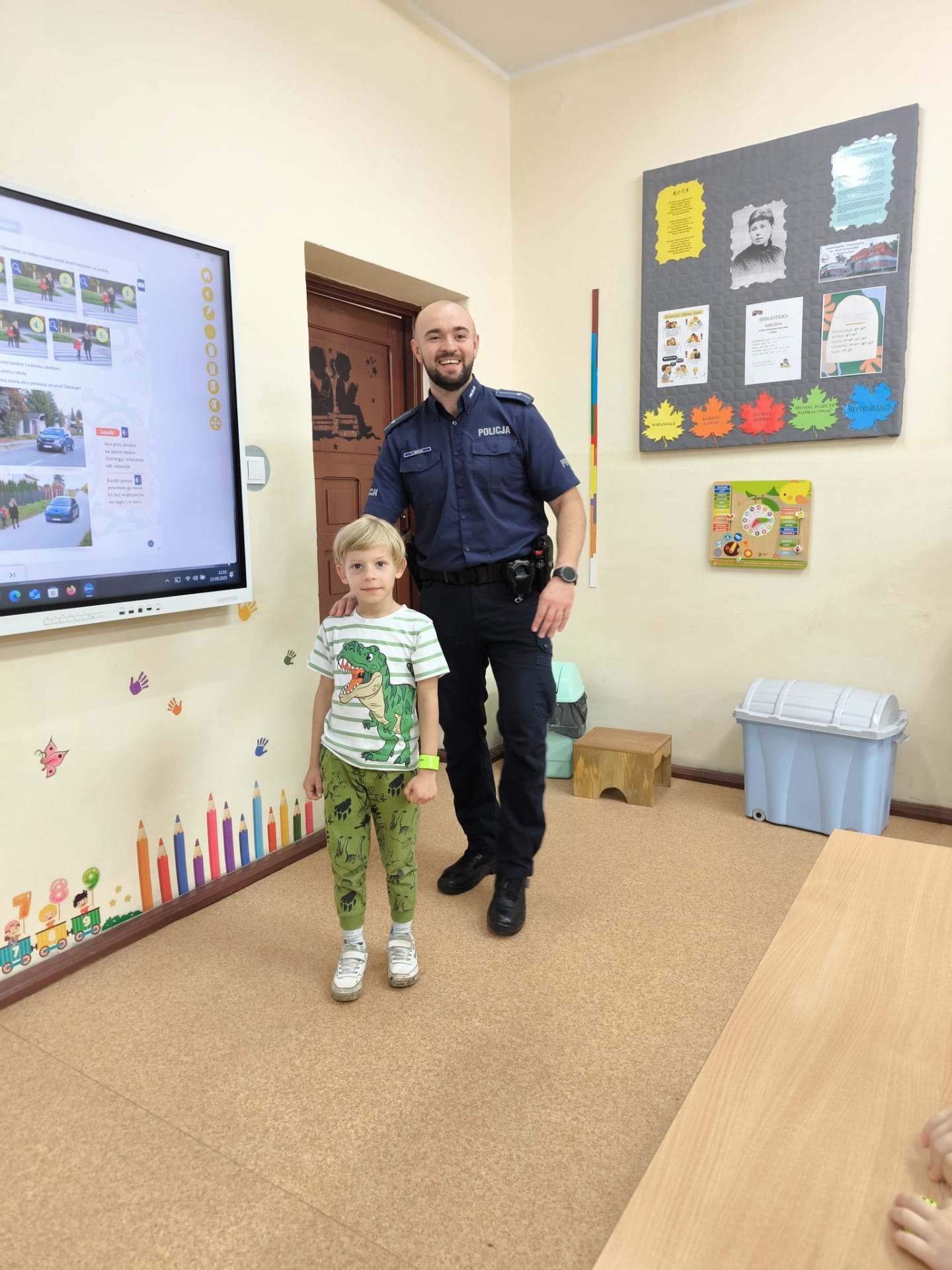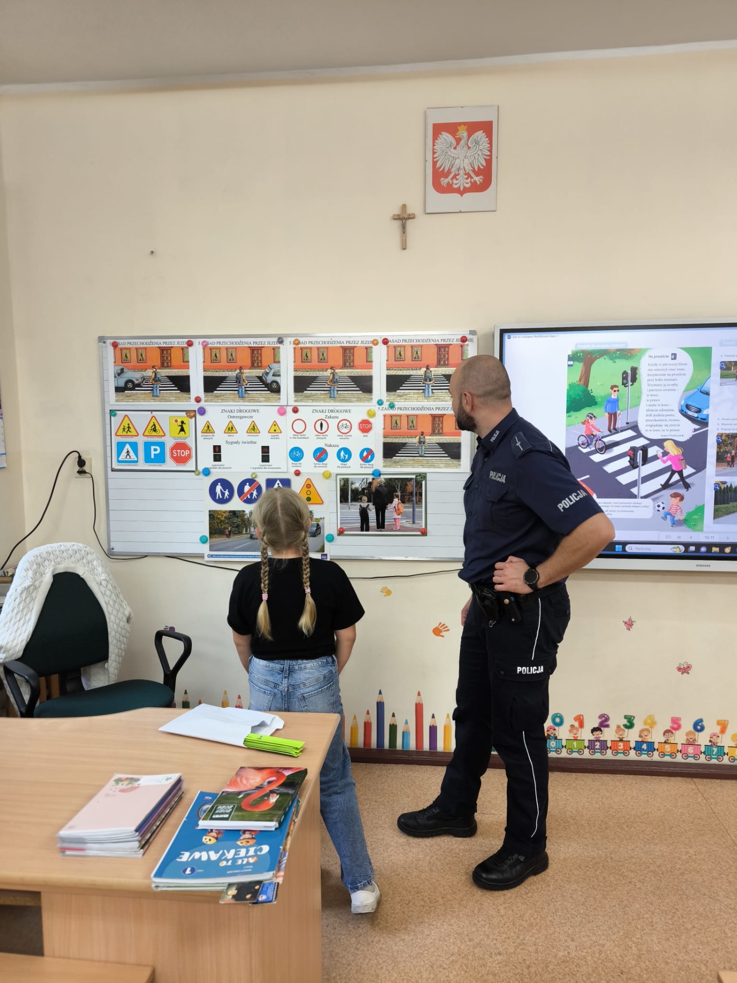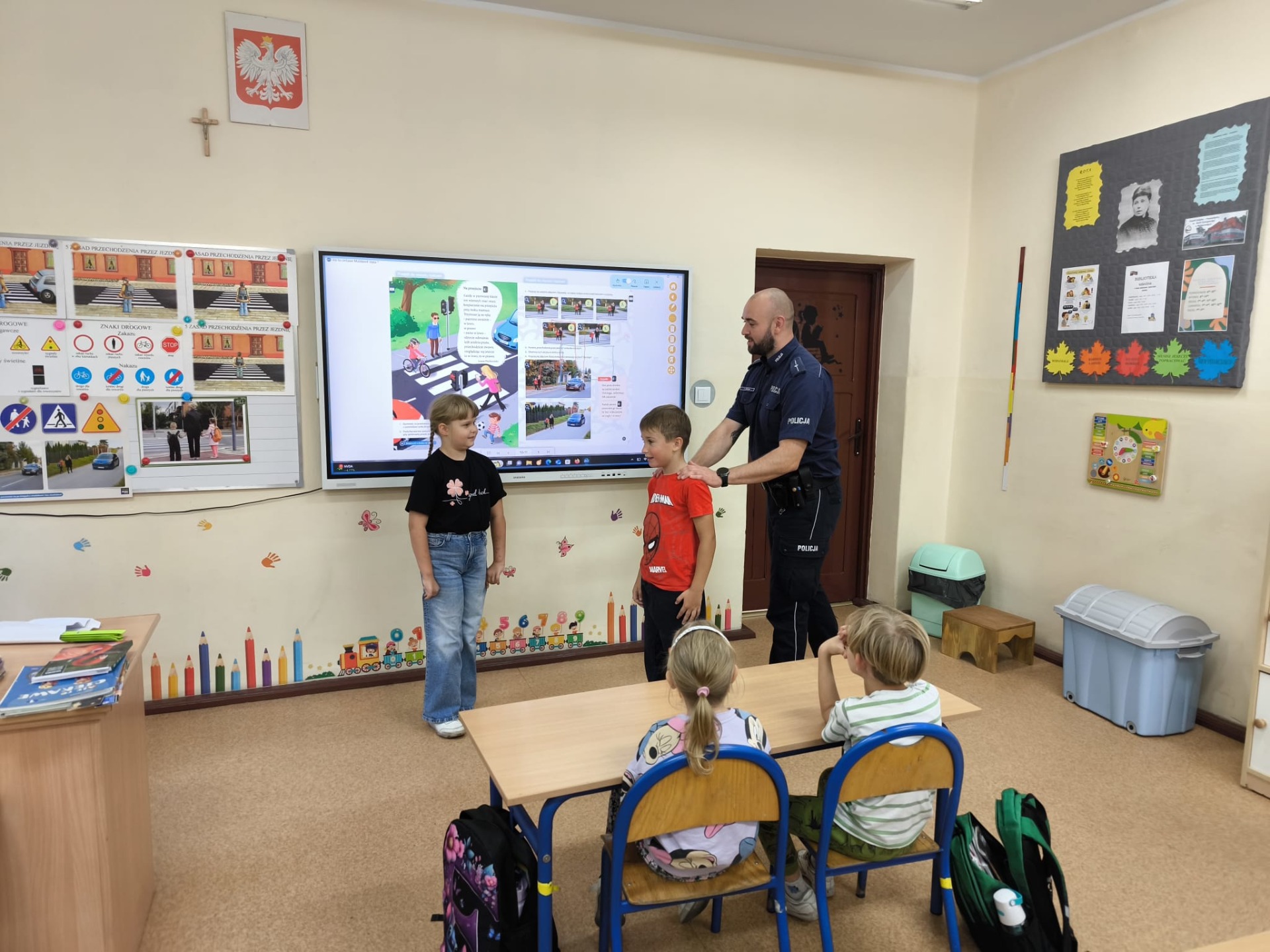 Dziś w naszej klasie gościliśmy wyjątkowego gościa – policjanta, na którego dzieci czekały już od rana z ogromną niecierpliwością. 😊Pan policjant przypomniał nam, jak prawidłowo przechodzić przez jezdnię, na co zwracać uwagę przy znakach drogowych oraz jak zachować się w sytuacjach niebezpiecznych na drodze. 🚸 Na koniec każde dziecko otrzymało odblask ✨, a w podziękowaniu wręczyliśmy naszemu gościowi kolorowe laurki ❤🎨.