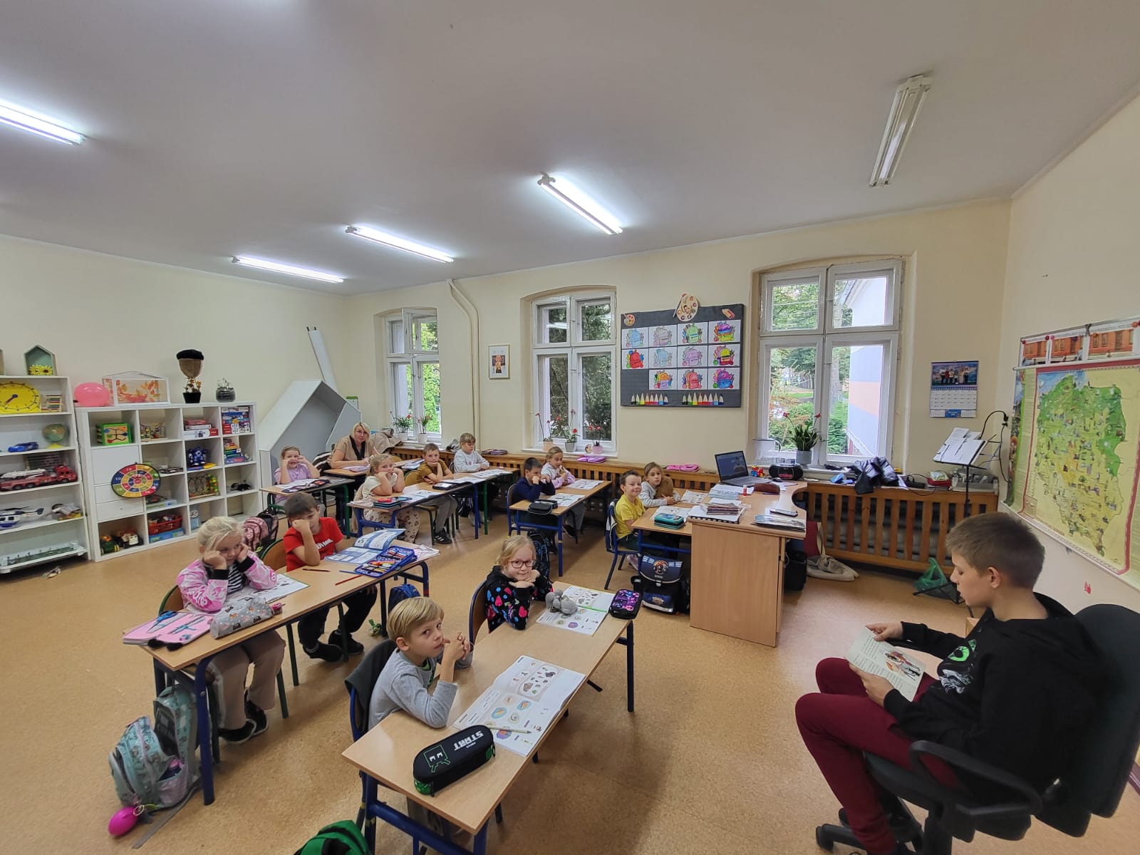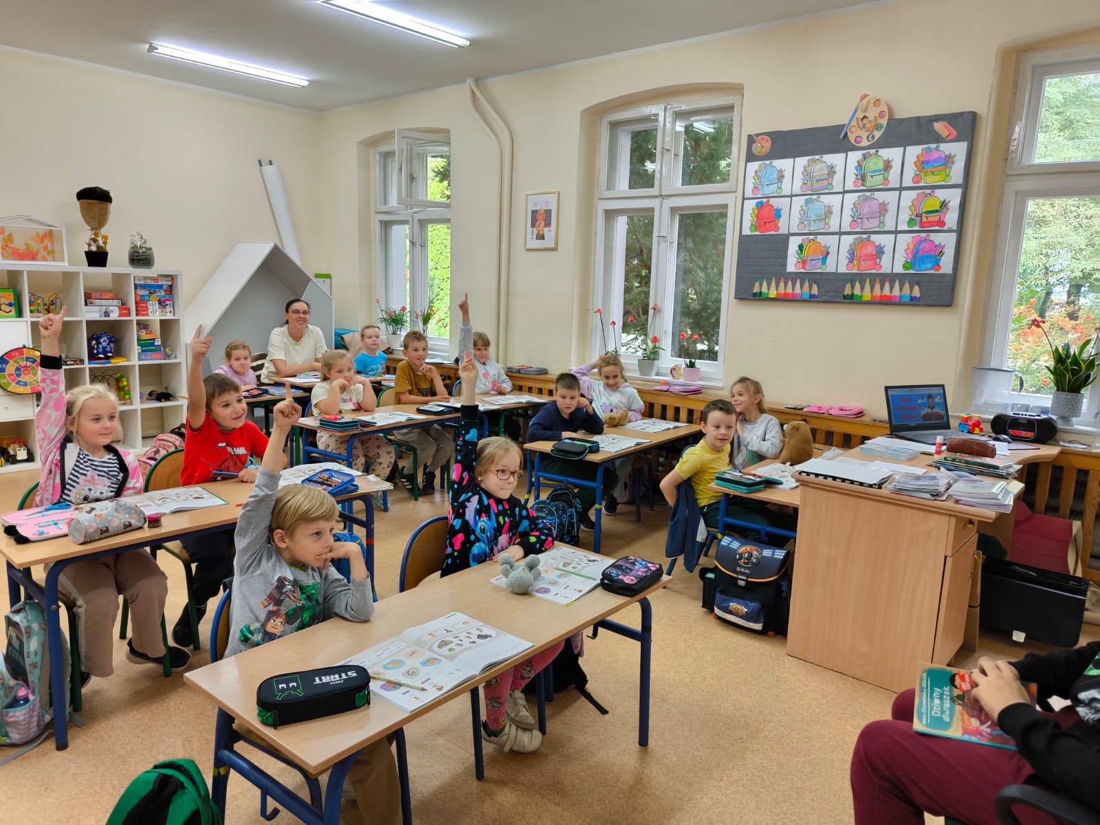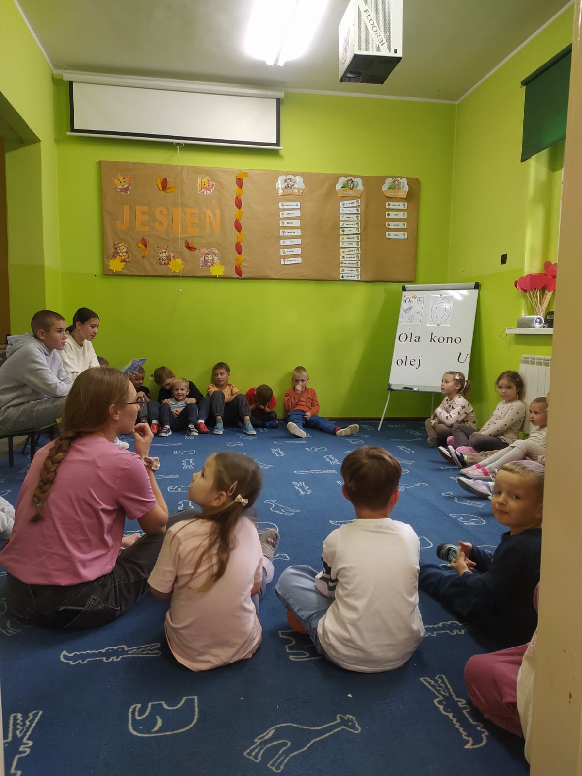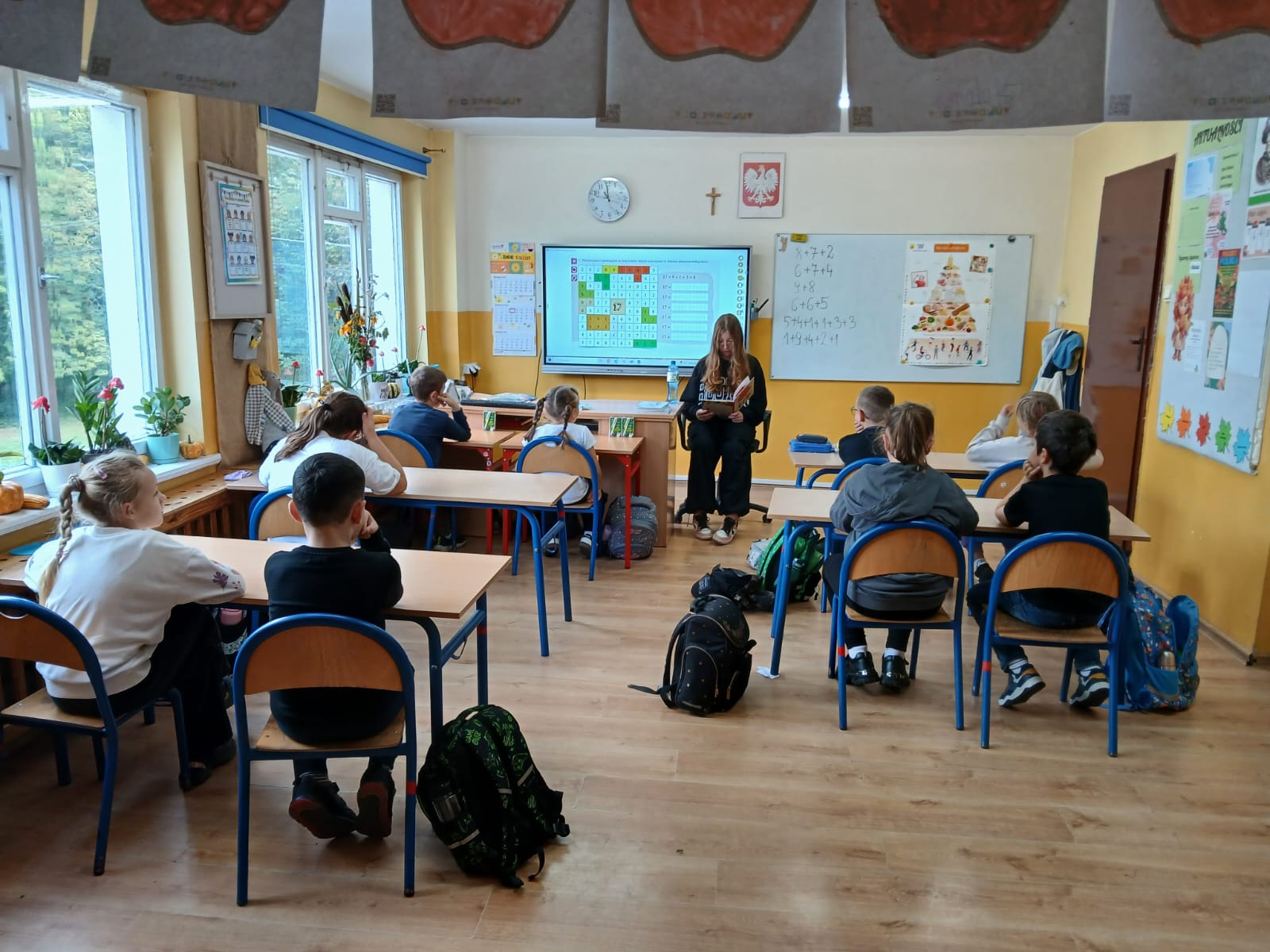 Dnia 01.10 w szkole oraz w przedszkolu została przeprowadzona akcja czytelnicza "Starszy czyta młodszym" . Chętni uczniowie z klasy VII ( Borys, Paweł, Helena, Marika, Damian, Jasiu, Szymon), oraz Basia z klasy VIII i p. Milena z dużym zaangażowaniem przeczytali dedykowane dla dzieci ciekawe historie, promując tym samym, głośne czytanie i korzystanie z bogatych zasobów szkolnej biblioteki. Słuchacze byli szczerze zainteresowani i z uwagą wysłuchali czytanych opowieści.