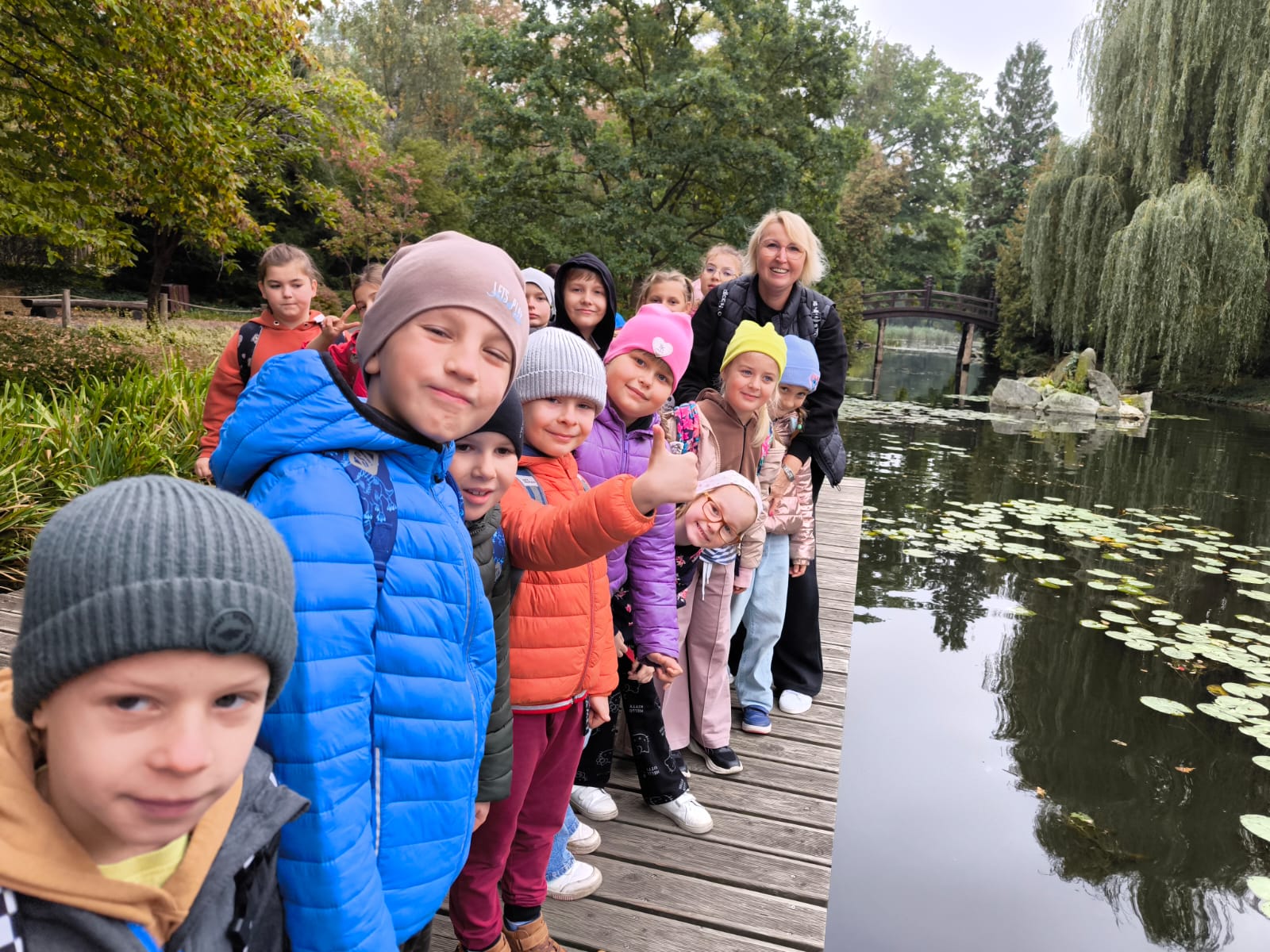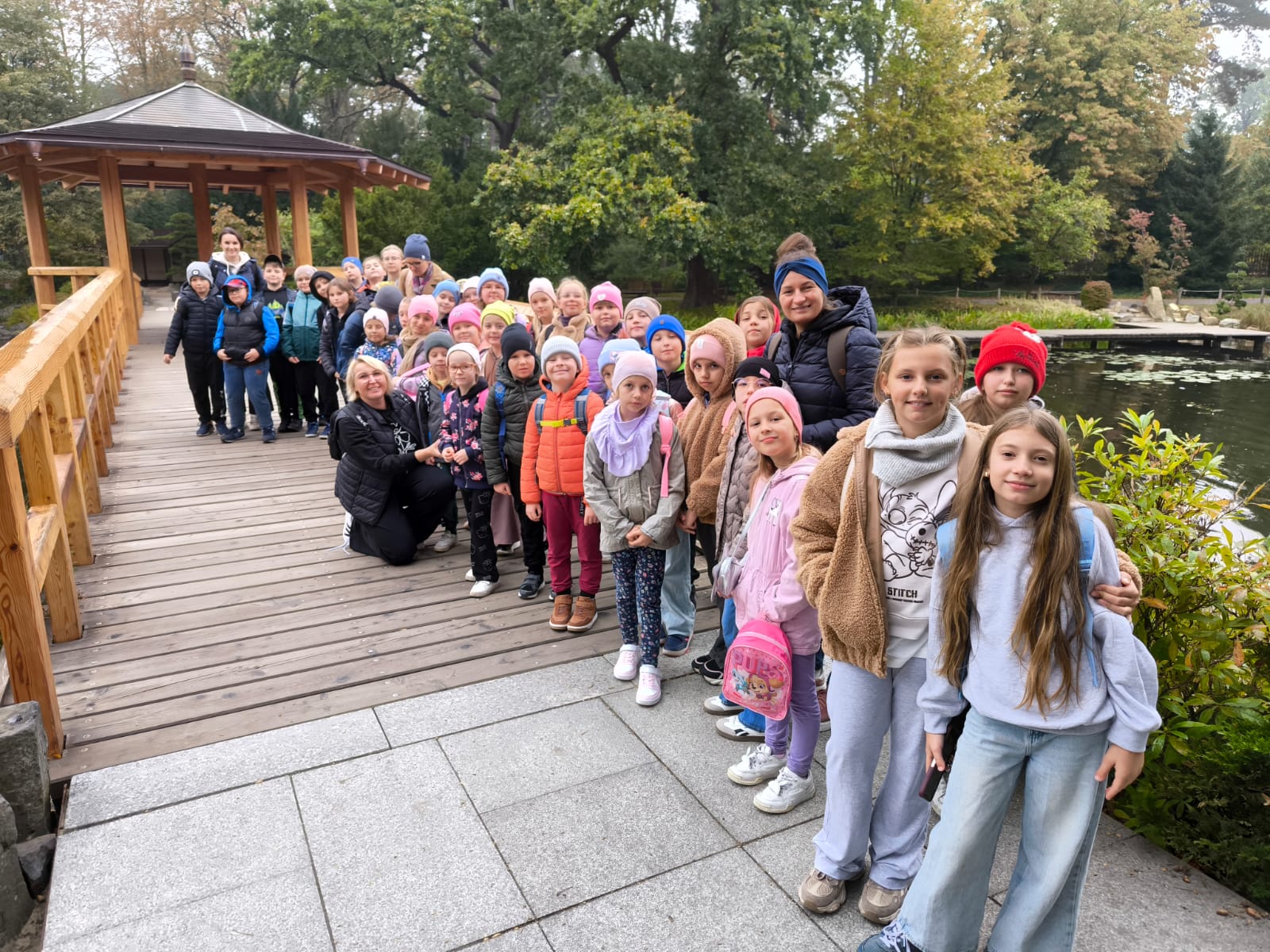 Dnia 3 października uczniowie klas I-IV wraz z wychowawcami udali się do stolicy Dolnego Śląska- Wrocławia. Pierwszym punktem naszej wyprawy był Ogród Japoński. Mogliśmy podziwiać w nim ponad 200 gatunków drzew i krzewów, z czego prawie 100 pochodzi z Dalekiego Wschodu a 38 z Japonii. Oprócz tego uwagę dzieci przykuł piękny wodospad oraz oazy wodne w których pływały przepiękne karpie koi, których hodowla rozpoczęła się ponad 200 lat temu w Japonii.
