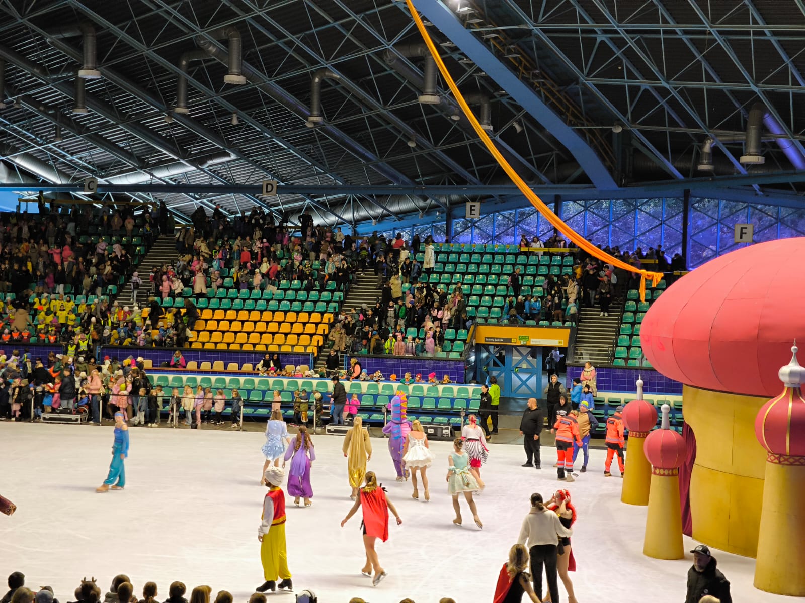 Następnie udaliśmy się do hali Orbita, gdzie mieliśmy okazję towarzyszyć Sindbadowi w jego podróżach. Za sprawą listu od diabła morskiego, który wzywał go do wypraw poznał trzy piękne księżniczki, ale dopiero ostatnia skradła jego serce. Było to wyjątkowe widowisko na lodzie w czasie, którego byliśmy świadkami niezwykłych umiejętności łyżwiarskich, akrobatycznych i aktorskich artystów wcielających się w role postuaci. Dodatkowo elementy scenografii, oprawa muzyczna i dźwiękowa były wyjątkową ucztą dla oka i ucha.