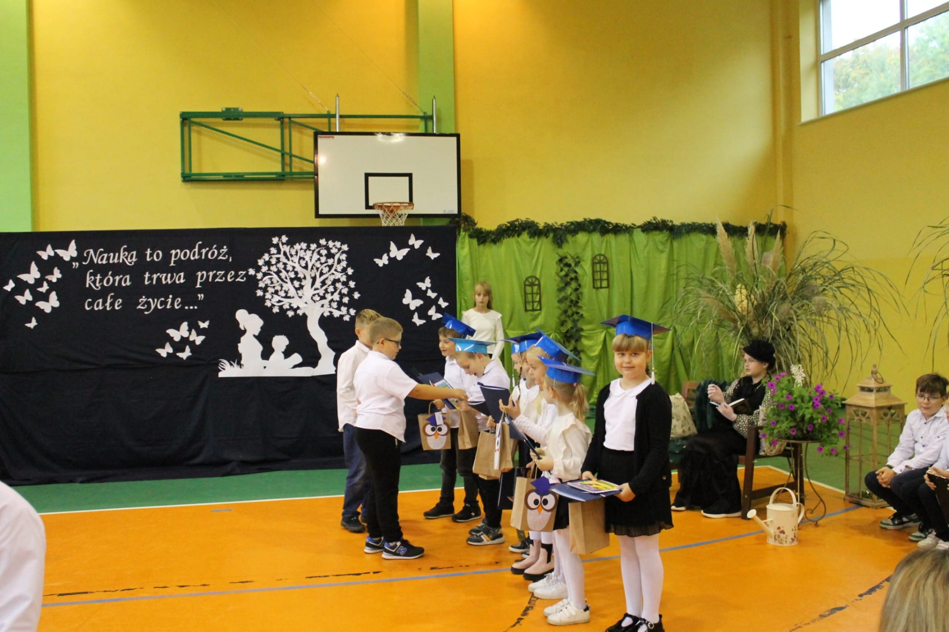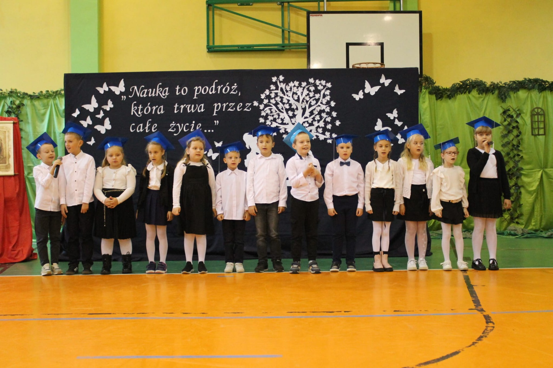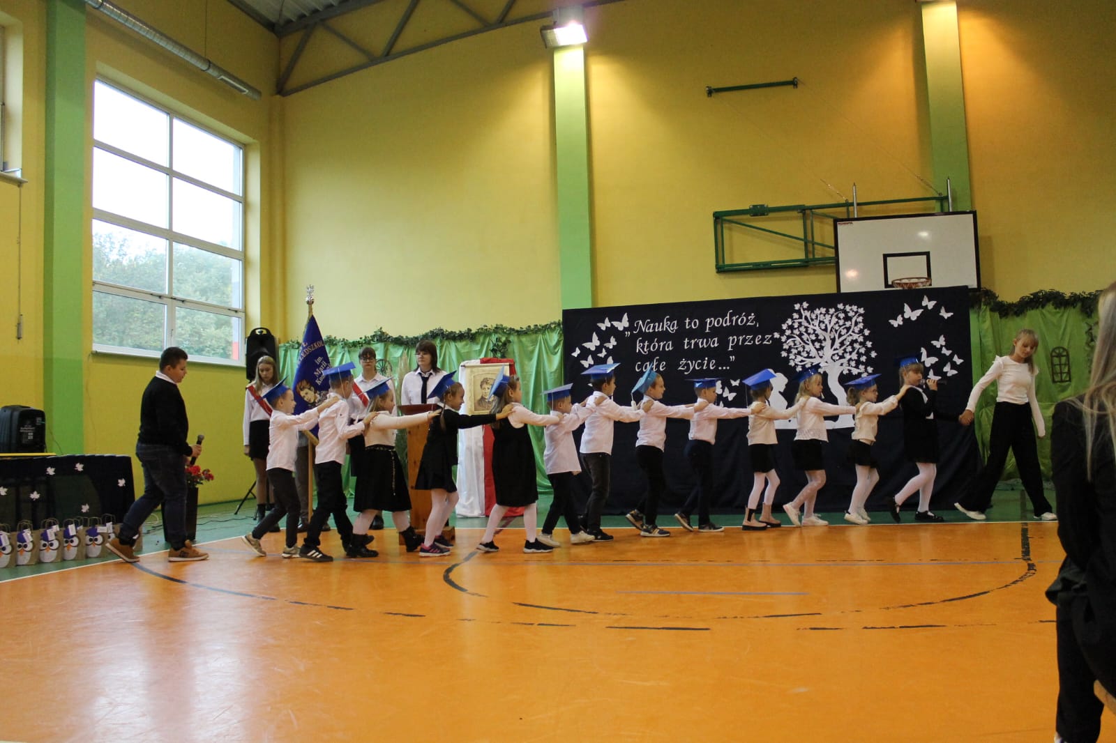 14 października w naszej szkole odbyły się trzy wyjątkowe uroczystości: Święto Patrona Szkoły, Ślubowanie Klas Pierwszych oraz Dzień Edukacji Narodowej. W powietrzu czuć było podniosłą, ale też radosną atmosferę. Uroczystości rozpoczęły się Mszą Świętą, po której cała społeczność szkolna udała się na salę gimnastyczną, gdzie w obecności zaproszonych gości odbyła się część artystyczna.