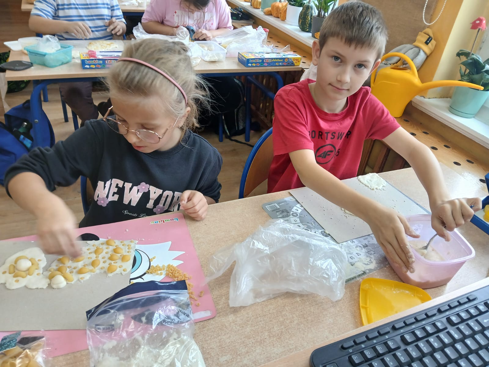 Wykonanie pracy z masy solnej przez uczniów klasy 2 w ramach projektu edukacyjnego POLSKA. Poznajemy województwo POMORSKIE.
