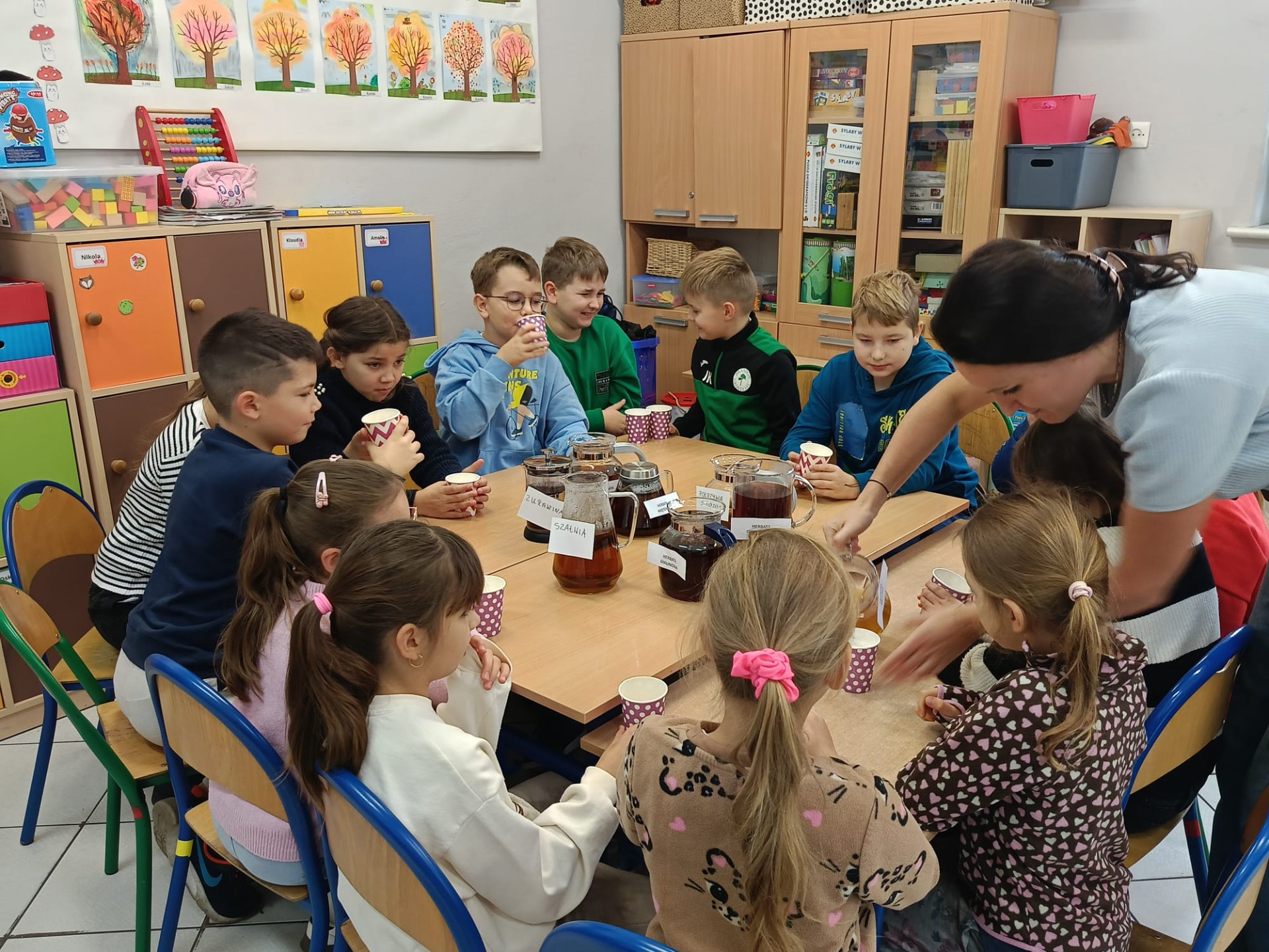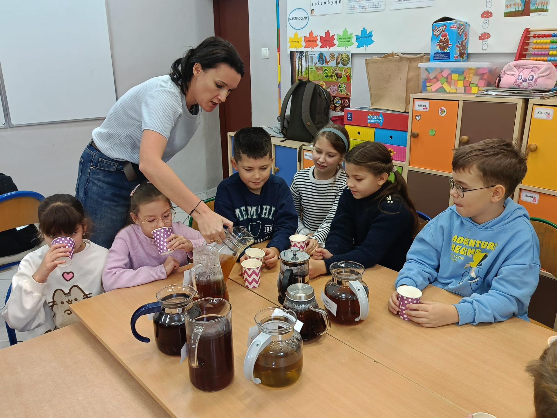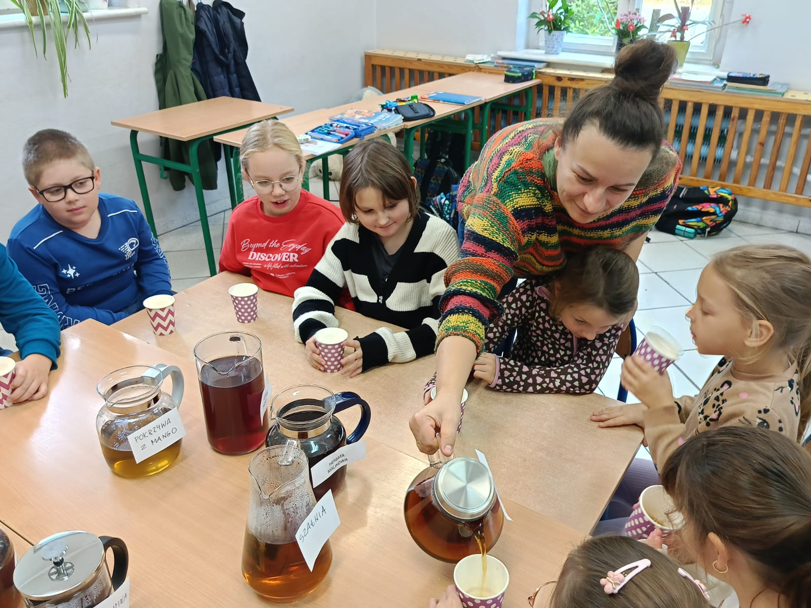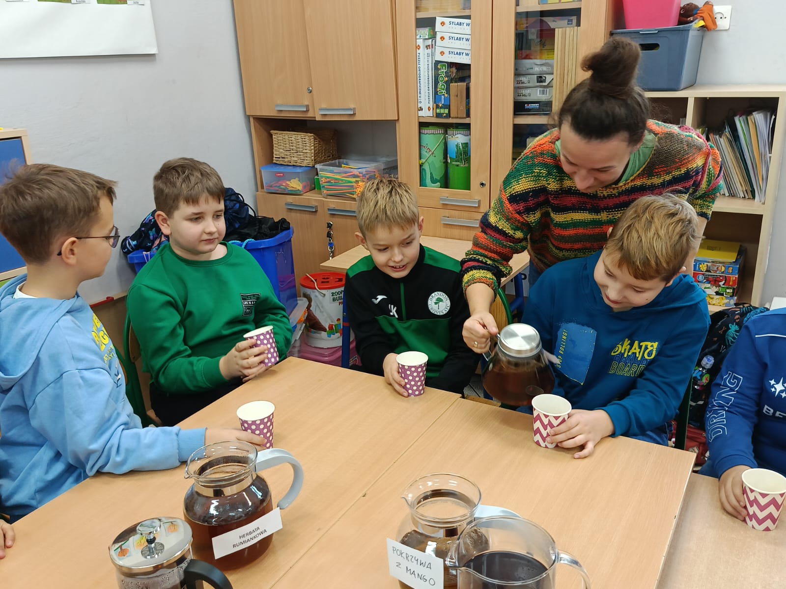 Dowiedzieliśmy się, skąd pochodzi herbata oraz jakie są jej rodzaje. Na zakończenie zajęć odbyła się degustacja różnych herbat – było mnóstwo ciekawych smaków i zapachów!