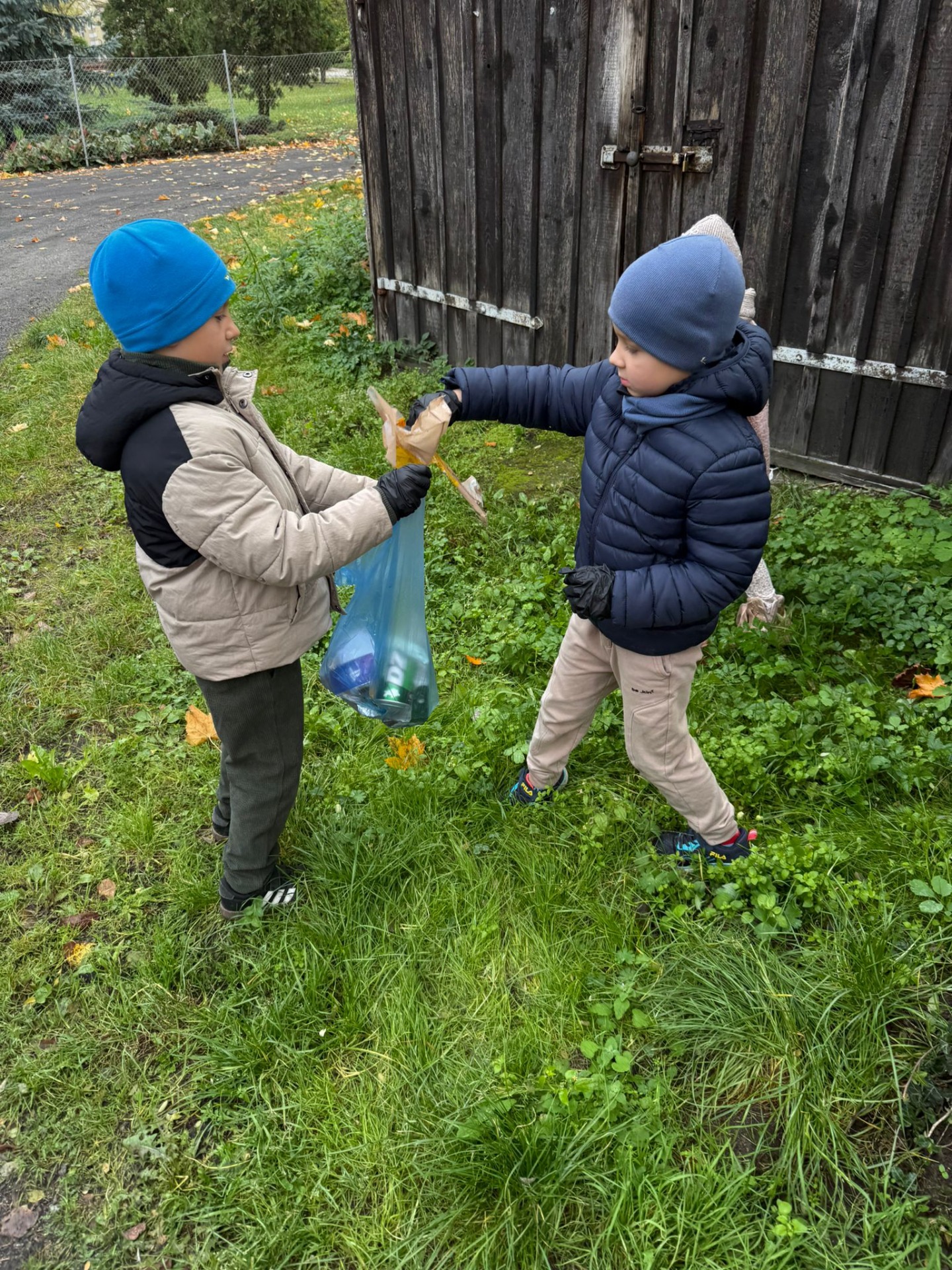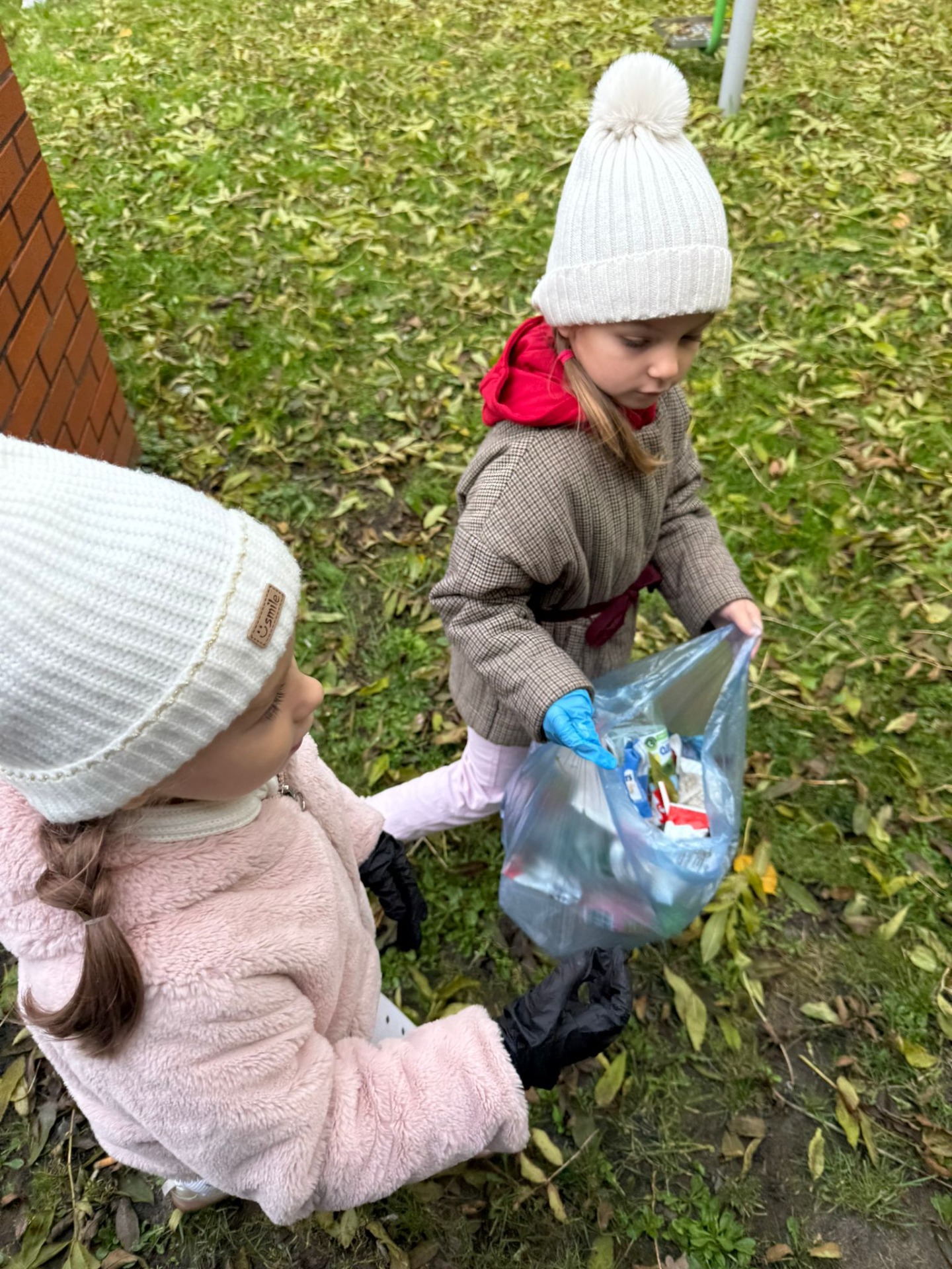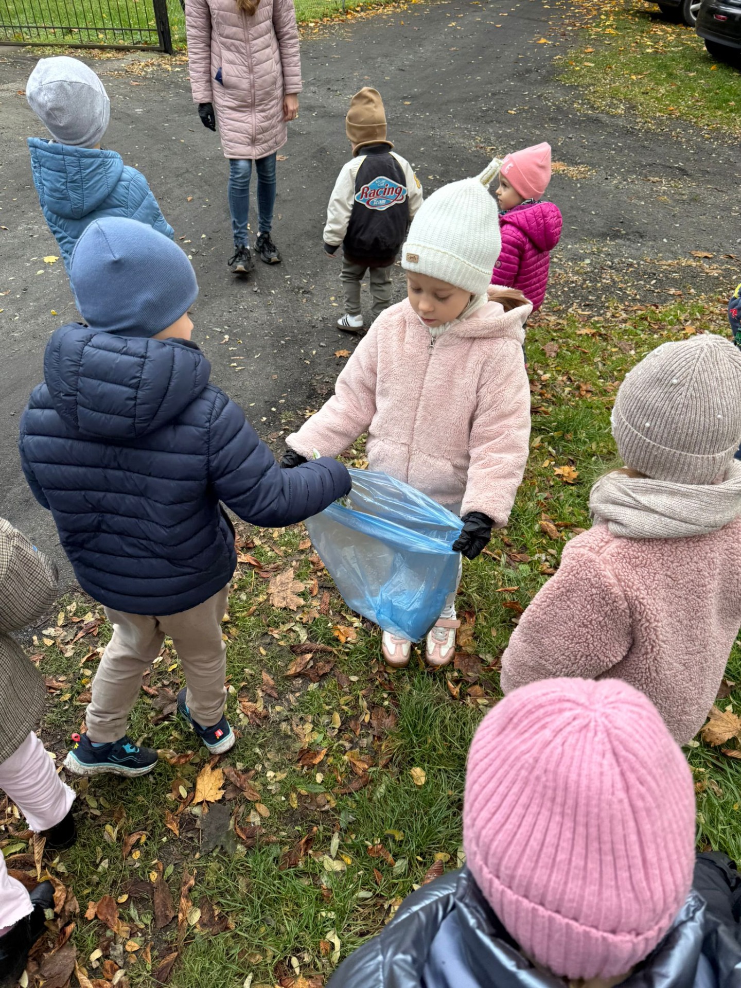W tym tygodniu przedszkolaki postanowiły zadbać o czystość w okolicy przedszkola — założyły gumowe rękawiczki, zabrały worki na śmieci i z wielkim zapałem wyruszyły, by posprzątać najbliższe otoczenie. 🌿