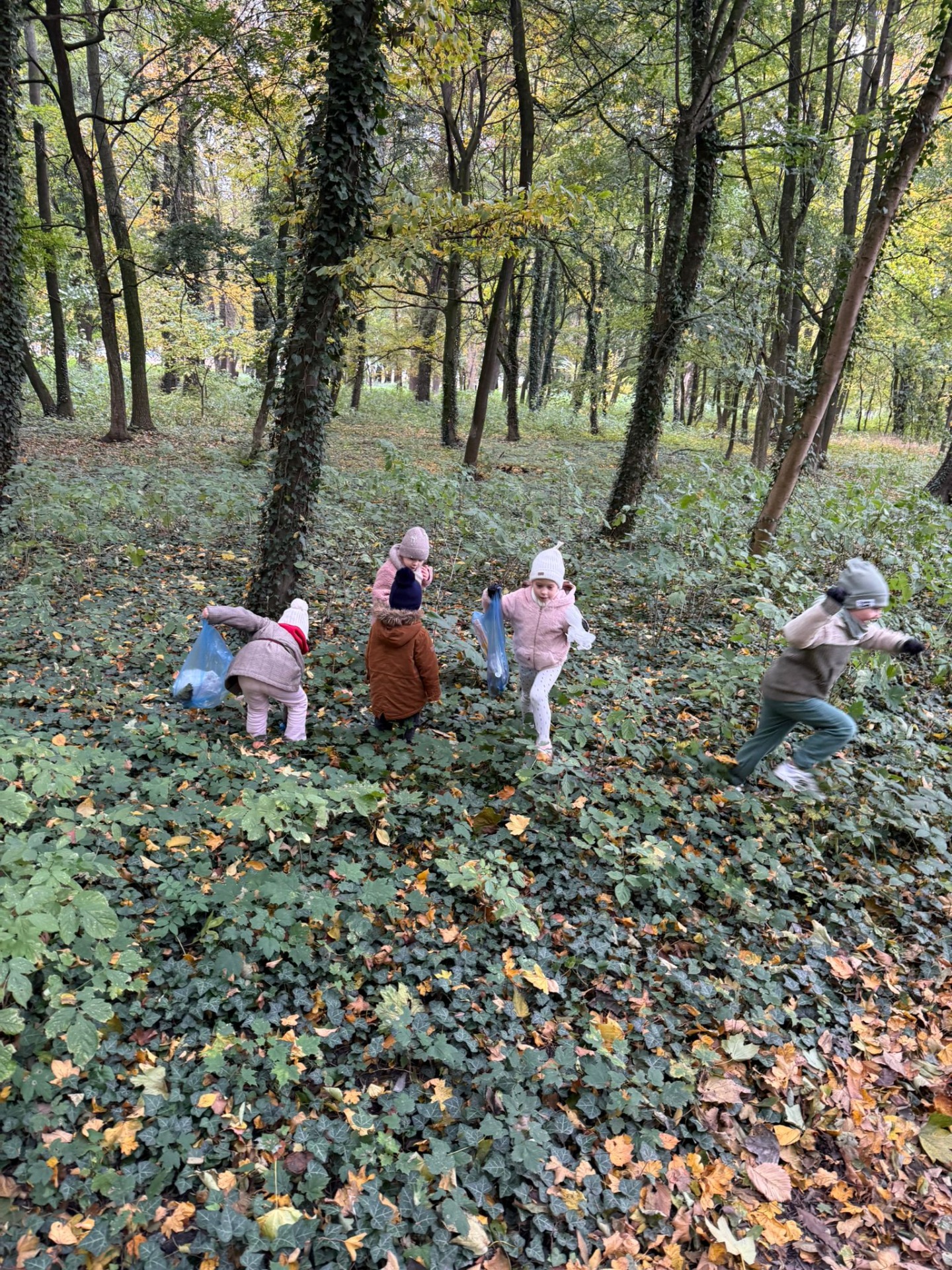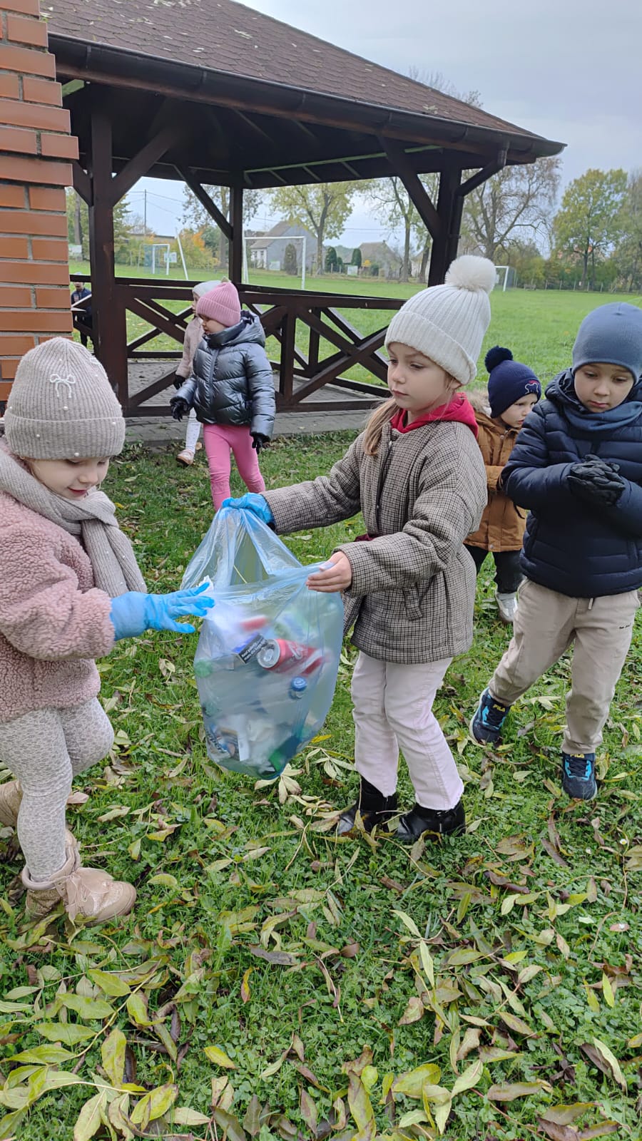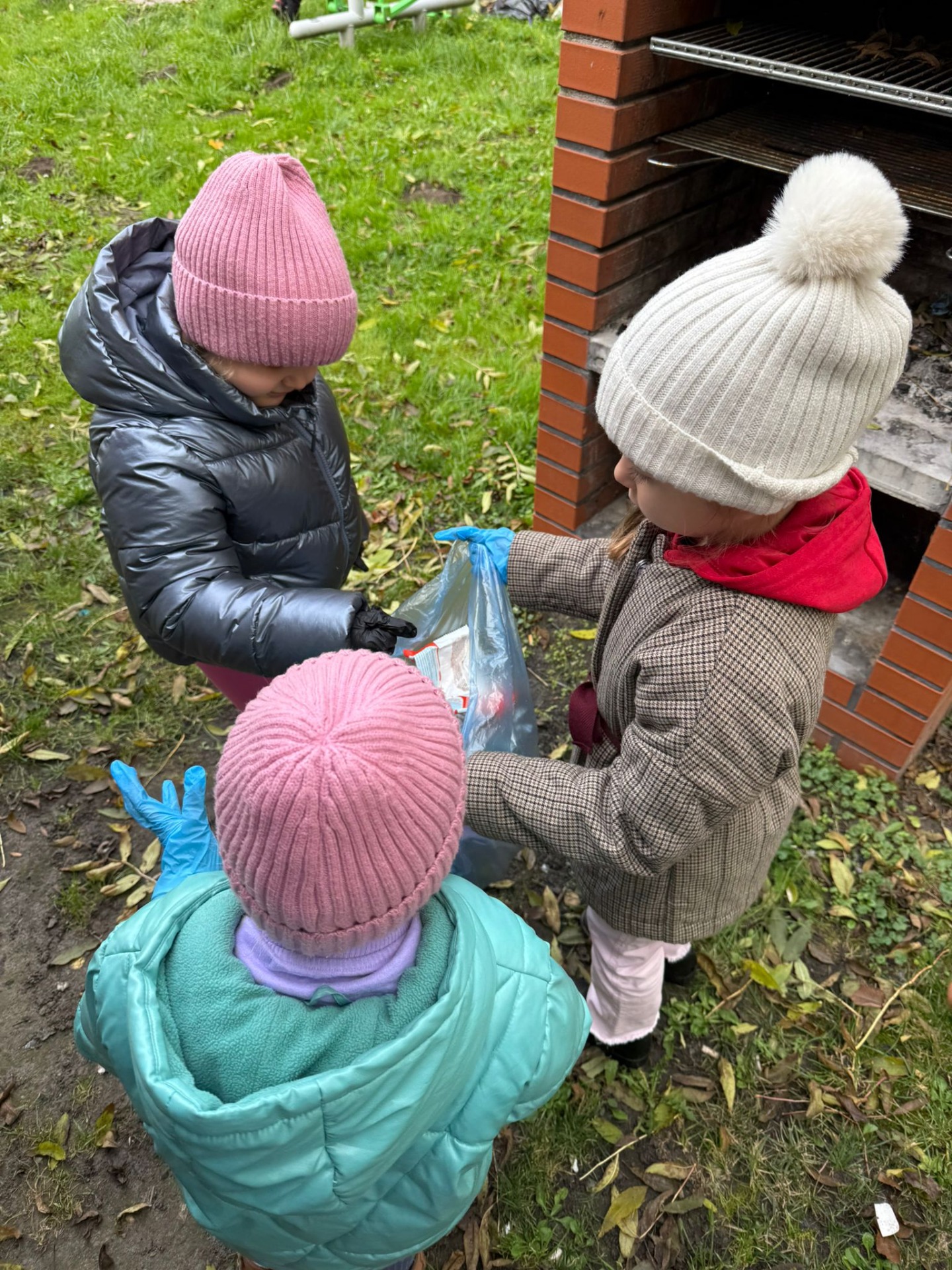 W tym tygodniu przedszkolaki postanowiły zadbać o czystość w okolicy przedszkola — założyły gumowe rękawiczki, zabrały worki na śmieci i z wielkim zapałem wyruszyły, by posprzątać najbliższe otoczenie. 🌿