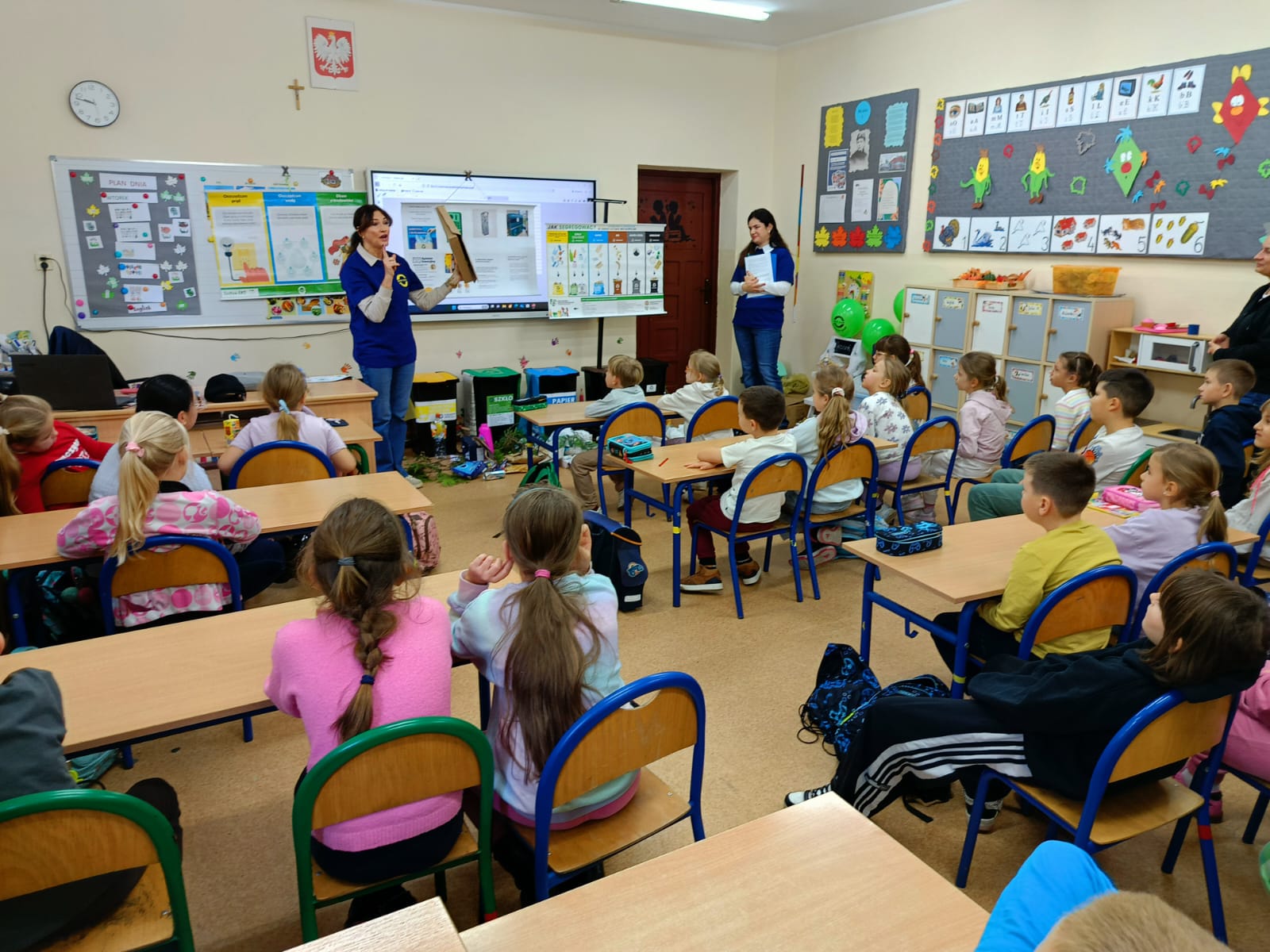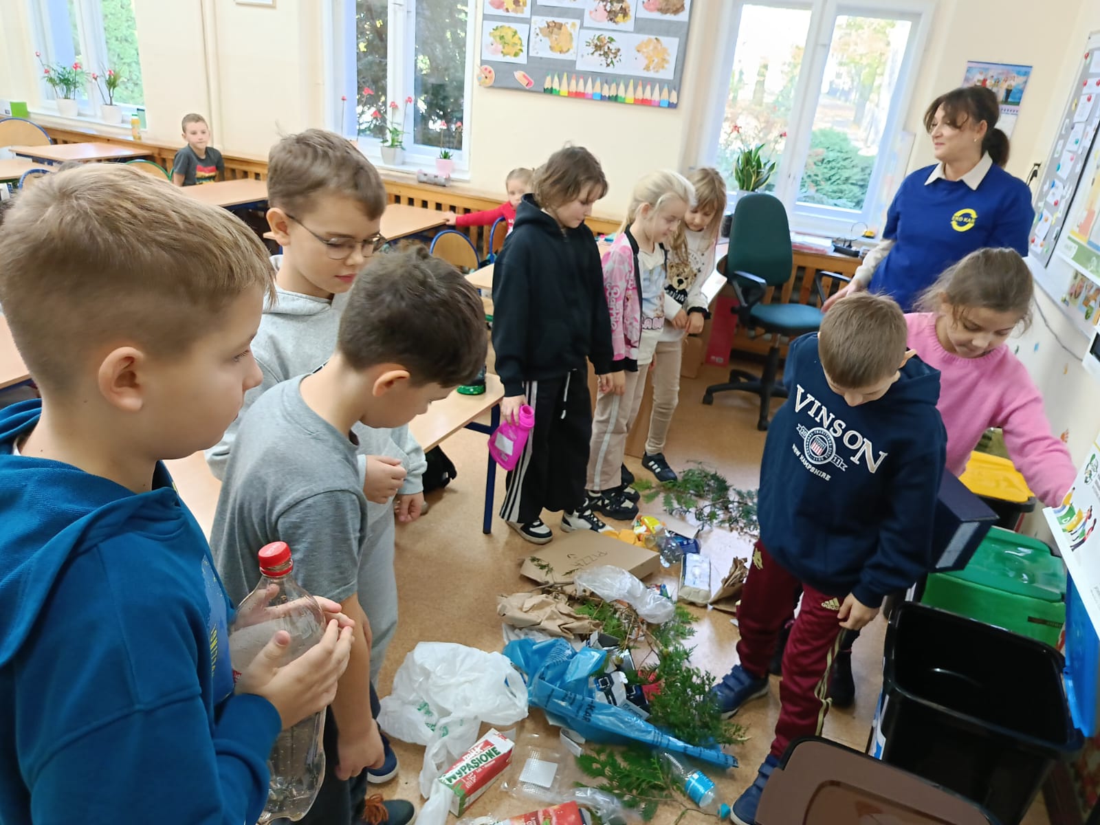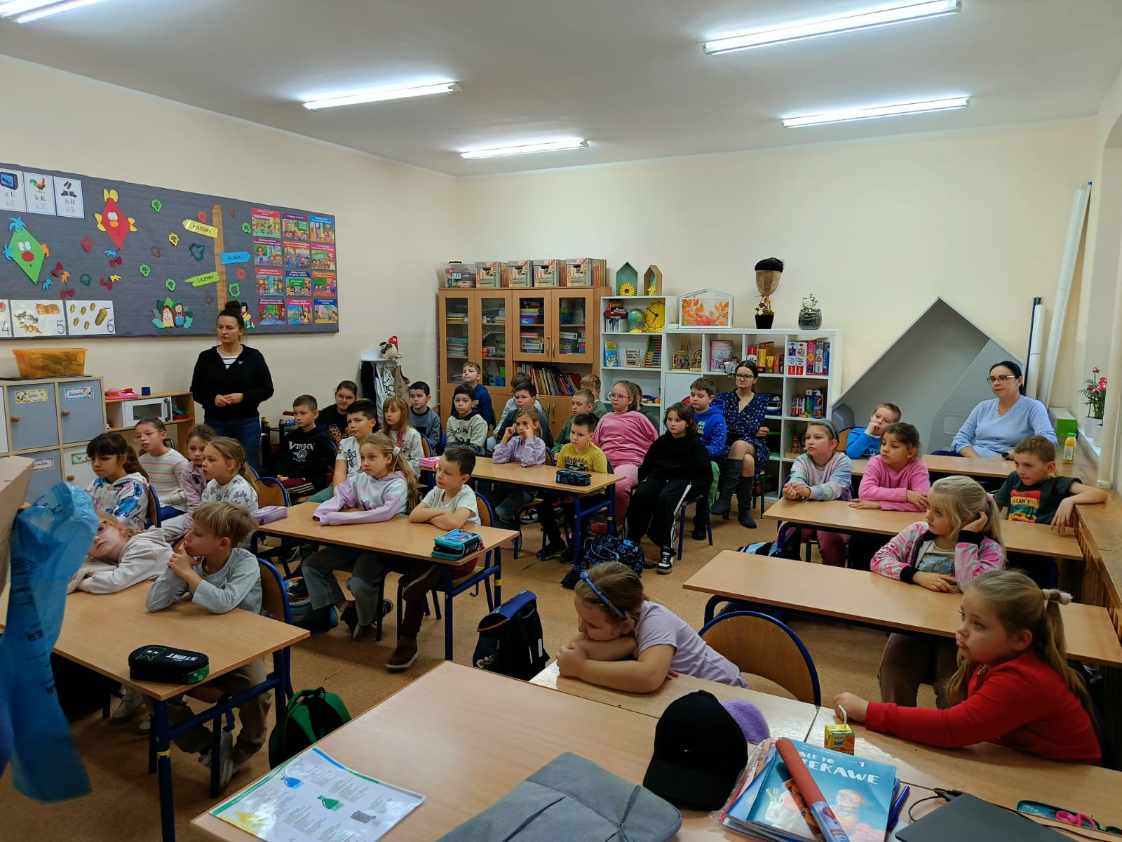 Dnia 29 października uczniowie klas I- III wzięli udział w zajęciach prowadzonych przez pracowników firmy EKO- Kar, która świadczy usługi w zakresie odbioru i segregacji odpadów na terenie naszej gminy.