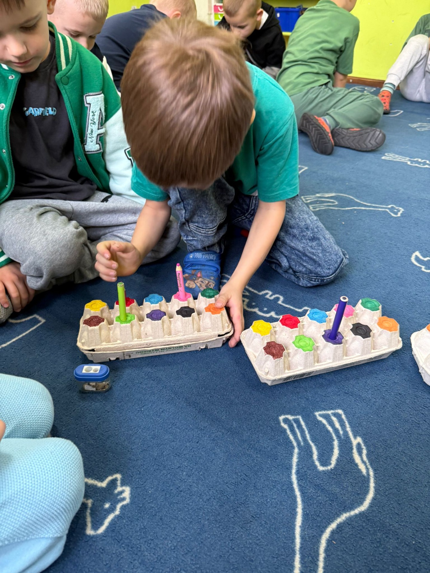 Nasze przedszkolaki odkrywały świat barw, tworzyły piękne prace plastyczne, bawiły się w kredkowe zabawy ruchowe i matematyczne. Było kolorowo, twórczo i bardzo wesoło!