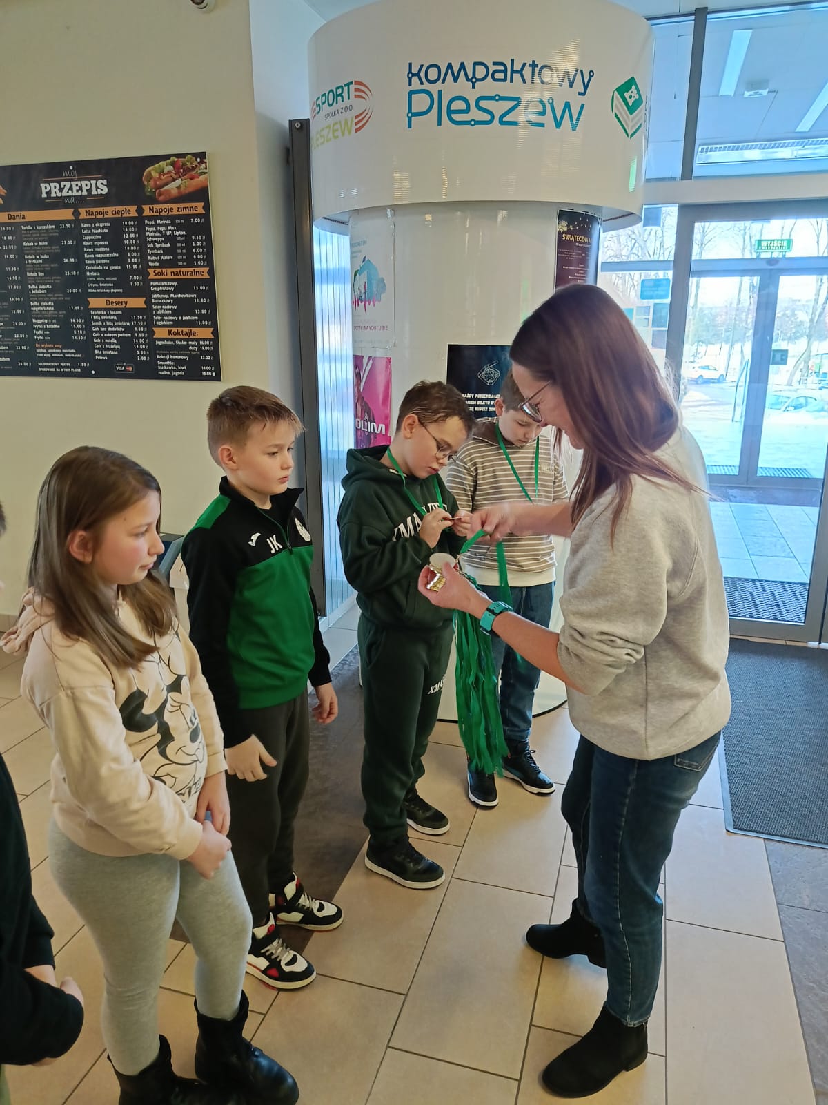 Na zakończenie programu wszyscy uczestnicy otrzymali pamiątkowe medale, które wręczyła Pani Lidka – pracownik GOS. Ostatnim miłym akcentem wyjazdu była wizyta w nowo otwartym lokalu McDonald’s w Pleszewie, gdzie wspólnie świętowali swój pływacki sukces.