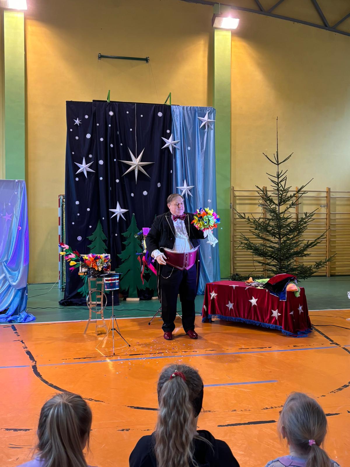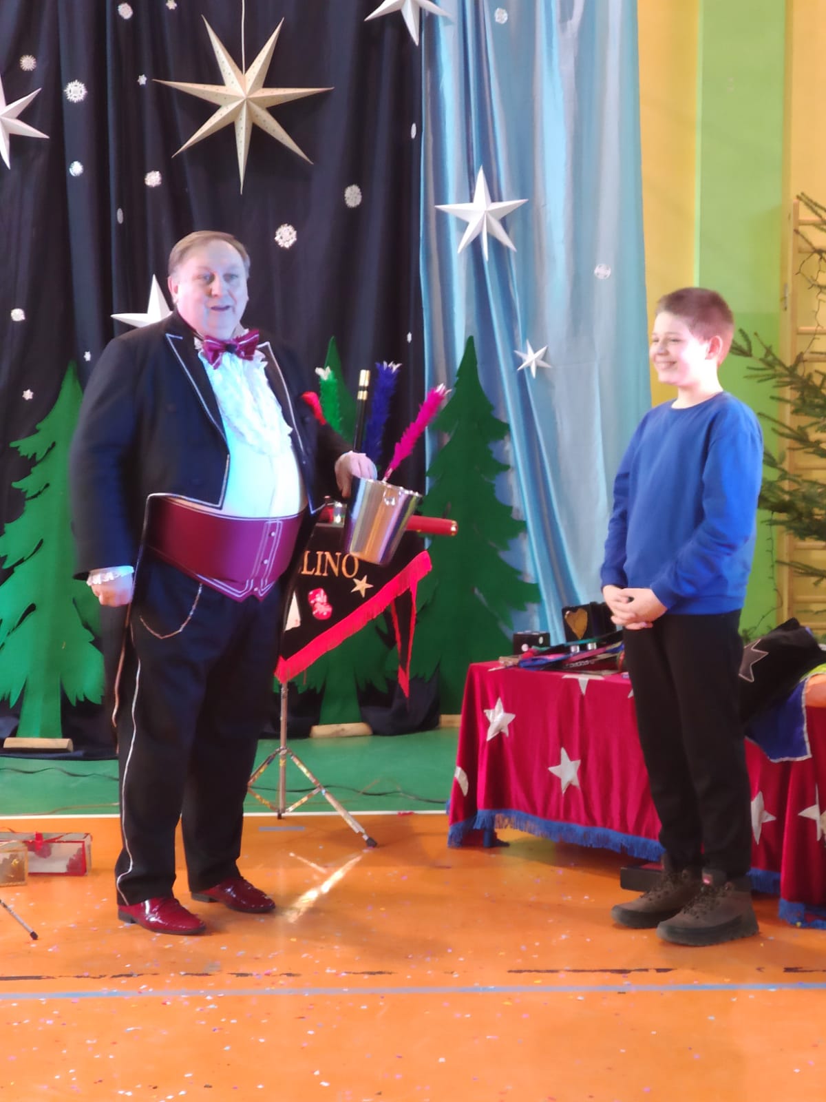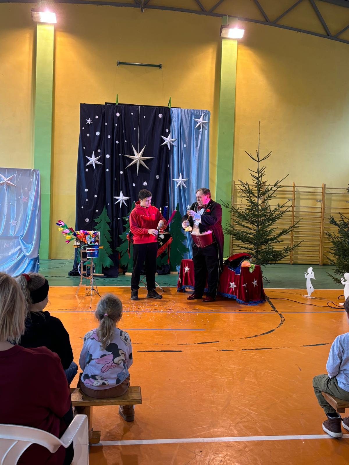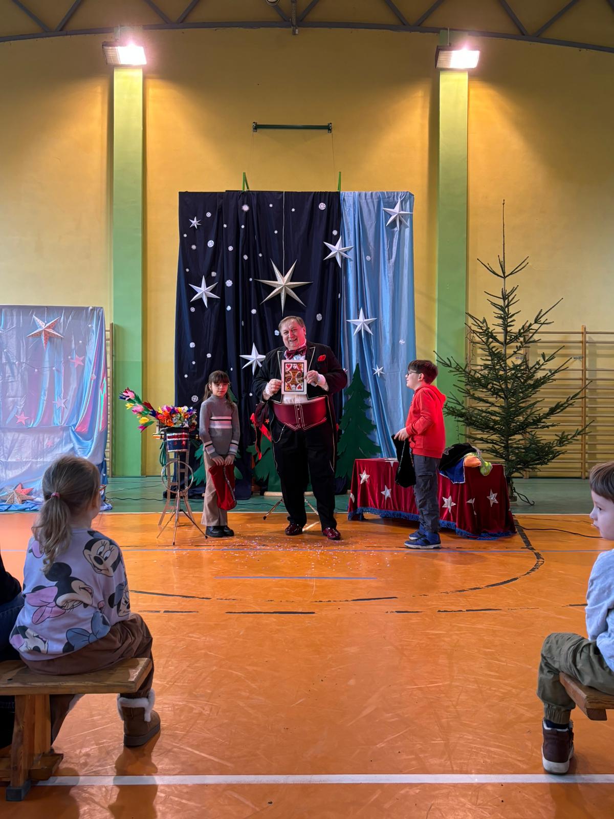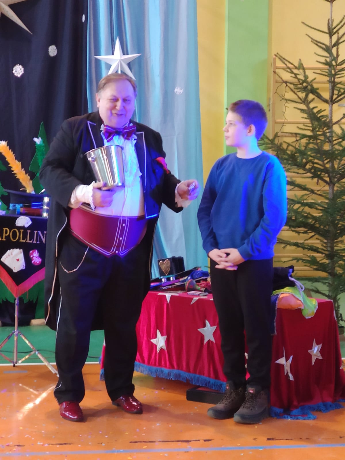 Już po raz kolejny, tym razem w okresie przedświątecznym gościliśmy iluzjonistę Andrzeja i jego asystentkę panią Mikołajową. Dzięki swoim magicznym sztuczkom oraz zaklęciu ''Sim Sala Bim Apsik" mogliśmy choć na chwilę przenieść się w inny wymiar.