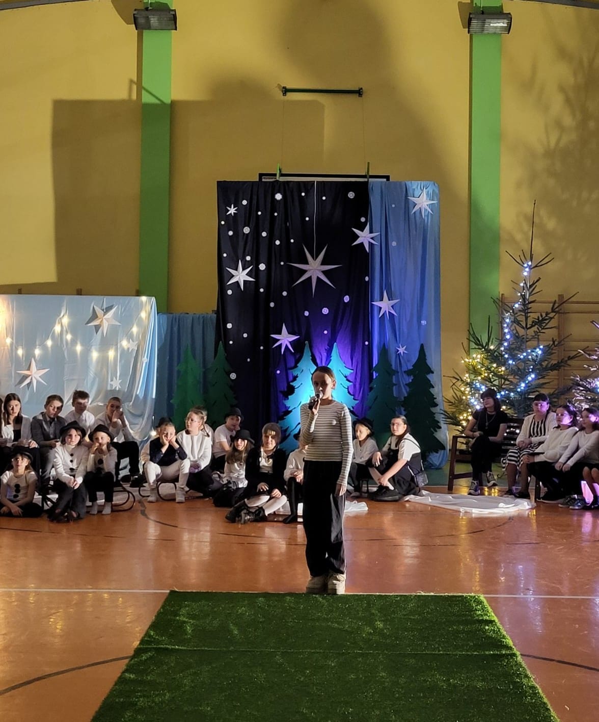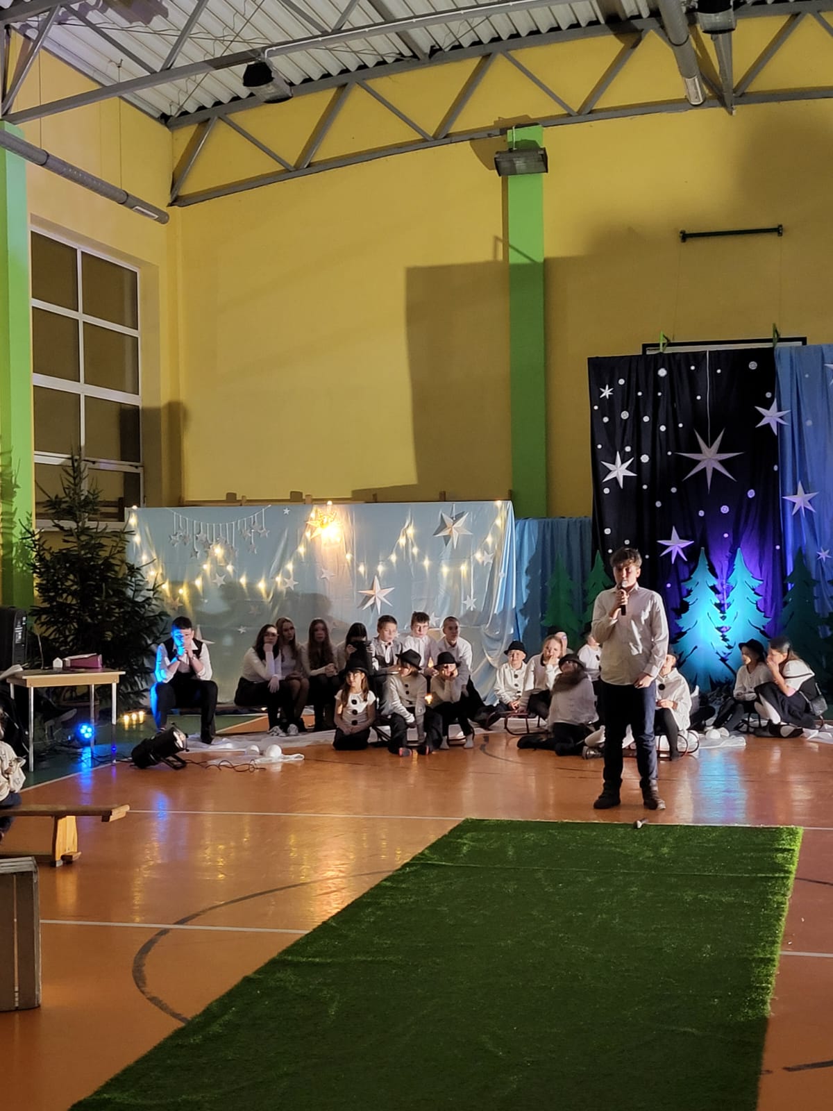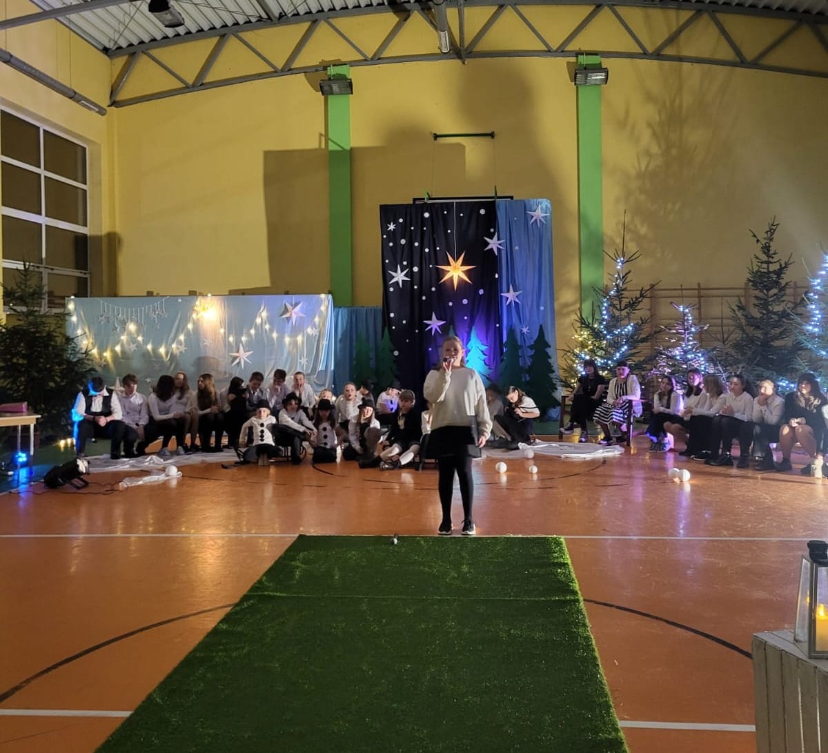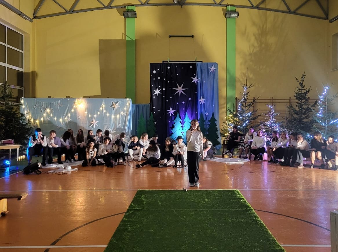 W pewien chłodny grudniowy wieczór, a dokładnie 10.12.2025 r. w Szkole Podstawowej w Borzęciczkach odbyło się spotkanie społeczności szkolnej: dzieci, rodziców, nauczycieli, w czasie którego uczniowie wraz z organizatorkami p. D.Szymczak oraz p. H.Miedzińską zabrały słuchaczy w niezwykłą liryczno-muzyczną podróż w świat wyjątkowych dźwięków i niezapomnianych obrazów. Uczniowie - nasi szkolni artyści recytowali piękne wiersze oraz śpiewali nastrojowe piosenki znanych i nieznanych artystów, poetów: o szronie, o śniegu, o mrozie, o przygotowaniach do świąt, o spotkaniach w gronie najbliższych. W ten wyjątkowy wieczór gościnnie wystąpiła też nasza absolwentka Karolina Kaczmarek, która zaczarowała nas swoim śpiewem.