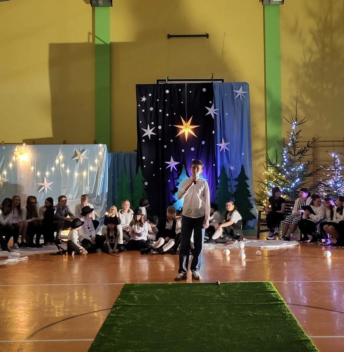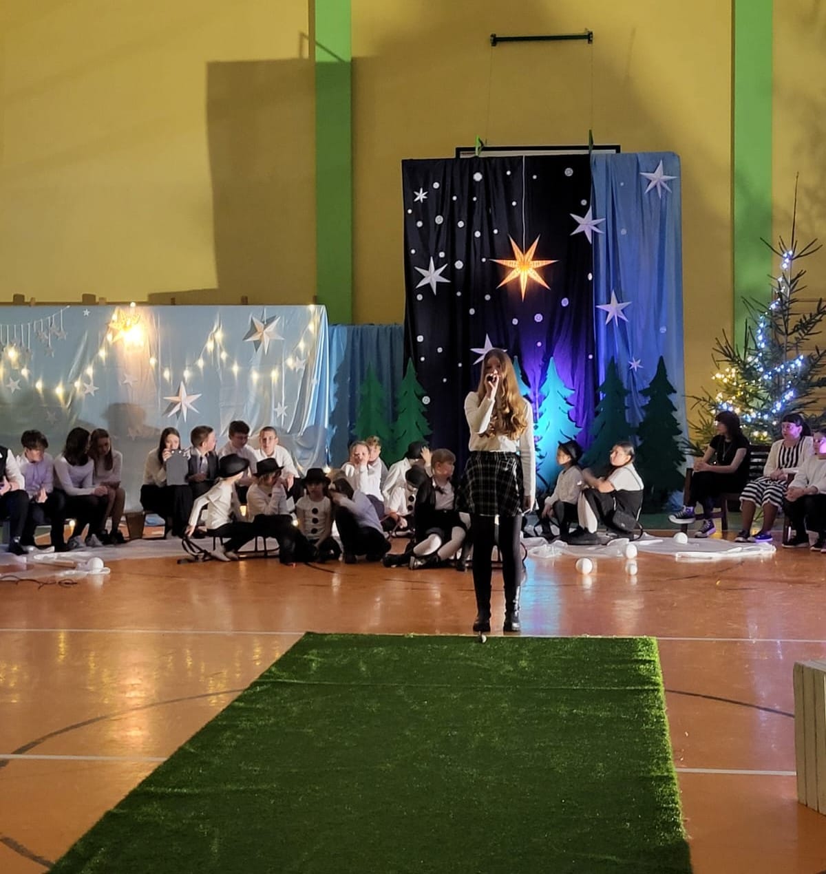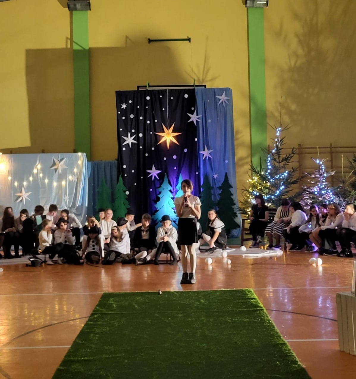 W pewien chłodny grudniowy wieczór, a dokładnie 10.12.2025 r. w Szkole Podstawowej w Borzęciczkach odbyło się spotkanie społeczności szkolnej: dzieci, rodziców, nauczycieli, w czasie którego uczniowie wraz z organizatorkami p. D.Szymczak oraz p. H.Miedzińską zabrały słuchaczy w niezwykłą liryczno-muzyczną podróż w świat wyjątkowych dźwięków i niezapomnianych obrazów. Uczniowie - nasi szkolni artyści recytowali piękne wiersze oraz śpiewali nastrojowe piosenki znanych i nieznanych artystów, poetów: o szronie, o śniegu, o mrozie, o przygotowaniach do świąt, o spotkaniach w gronie najbliższych. W ten wyjątkowy wieczór gościnnie wystąpiła też nasza absolwentka Karolina Kaczmarek, która zaczarowała nas swoim śpiewem.