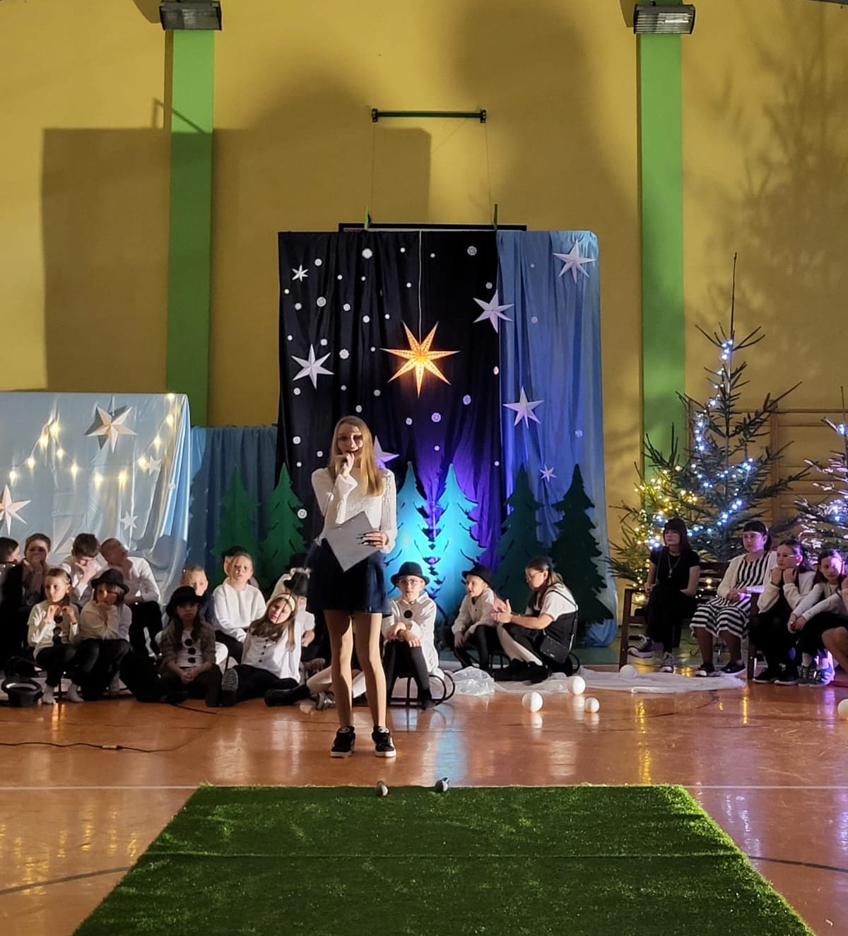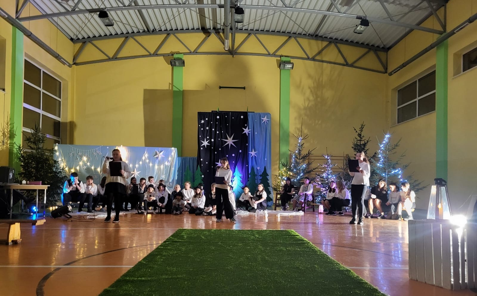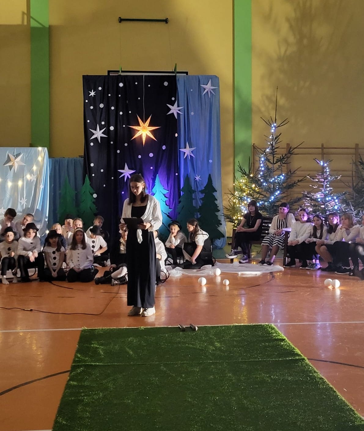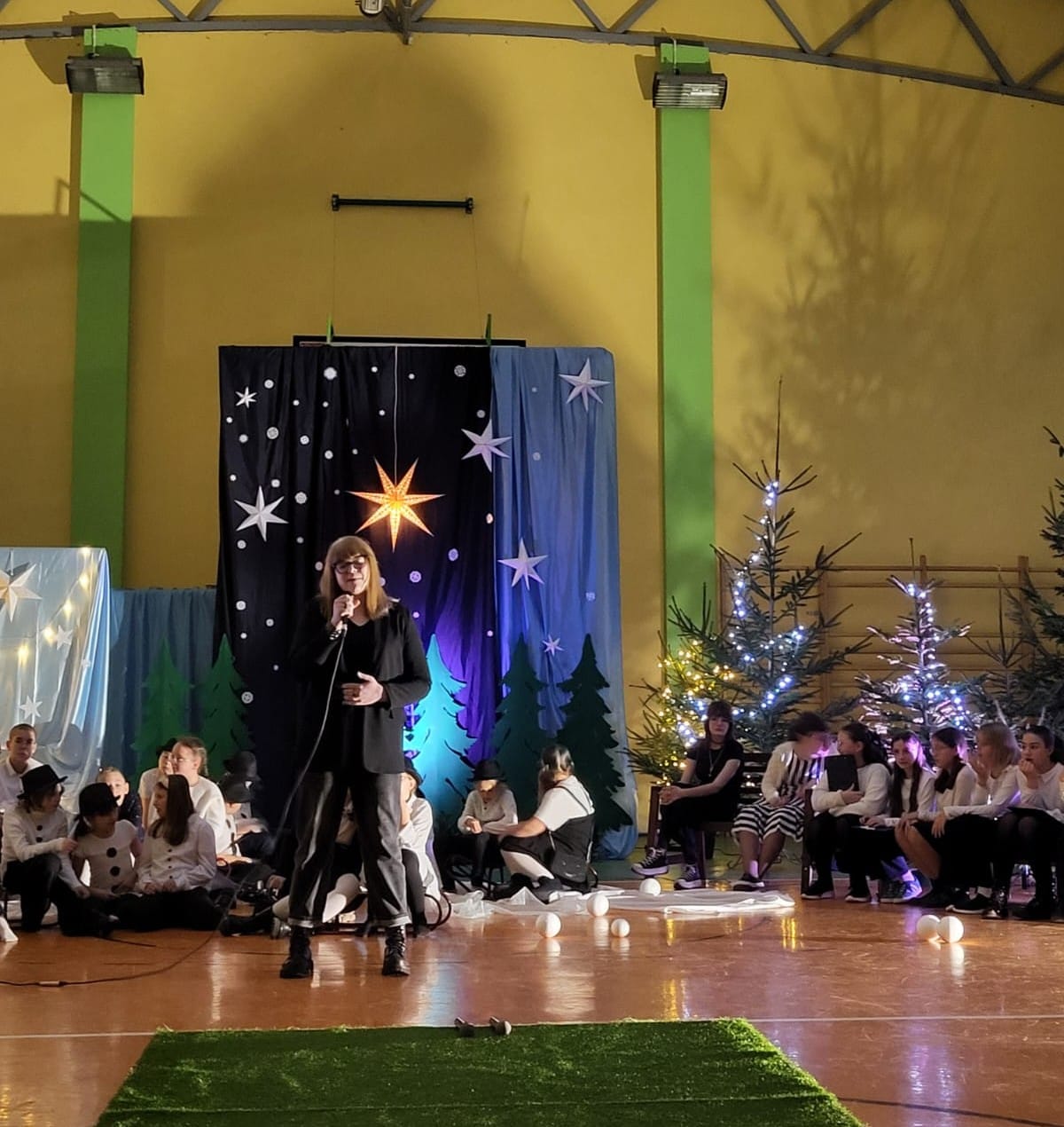 W pewien chłodny grudniowy wieczór, a dokładnie 10.12.2025 r. w Szkole Podstawowej w Borzęciczkach odbyło się spotkanie społeczności szkolnej: dzieci, rodziców, nauczycieli, w czasie którego uczniowie wraz z organizatorkami p. D.Szymczak oraz p. H.Miedzińską zabrały słuchaczy w niezwykłą liryczno-muzyczną podróż w świat wyjątkowych dźwięków i niezapomnianych obrazów. Uczniowie - nasi szkolni artyści recytowali piękne wiersze oraz śpiewali nastrojowe piosenki znanych i nieznanych artystów, poetów: o szronie, o śniegu, o mrozie, o przygotowaniach do świąt, o spotkaniach w gronie najbliższych. W ten wyjątkowy wieczór gościnnie wystąpiła też nasza absolwentka Karolina Kaczmarek, która zaczarowała nas swoim śpiewem.