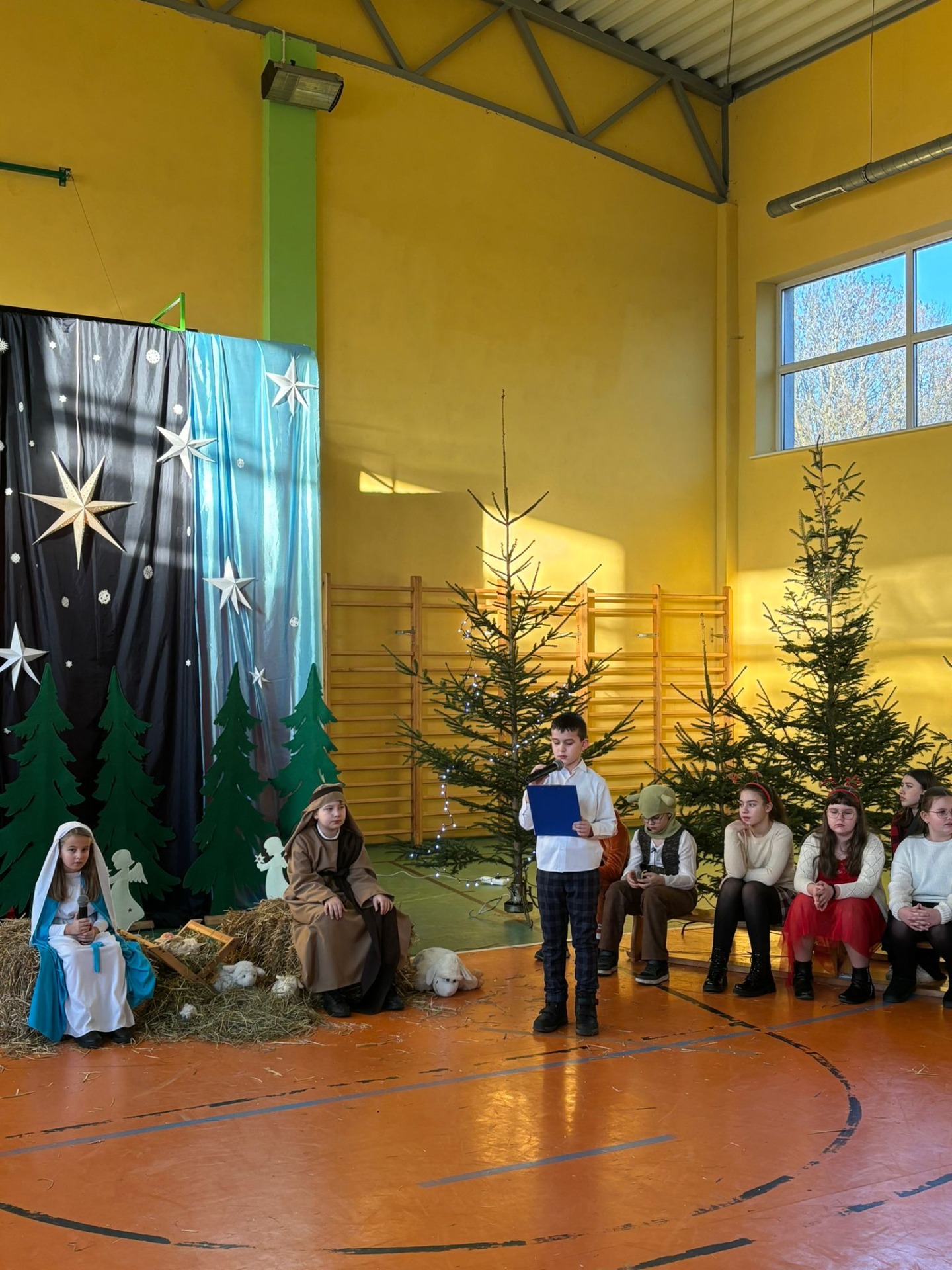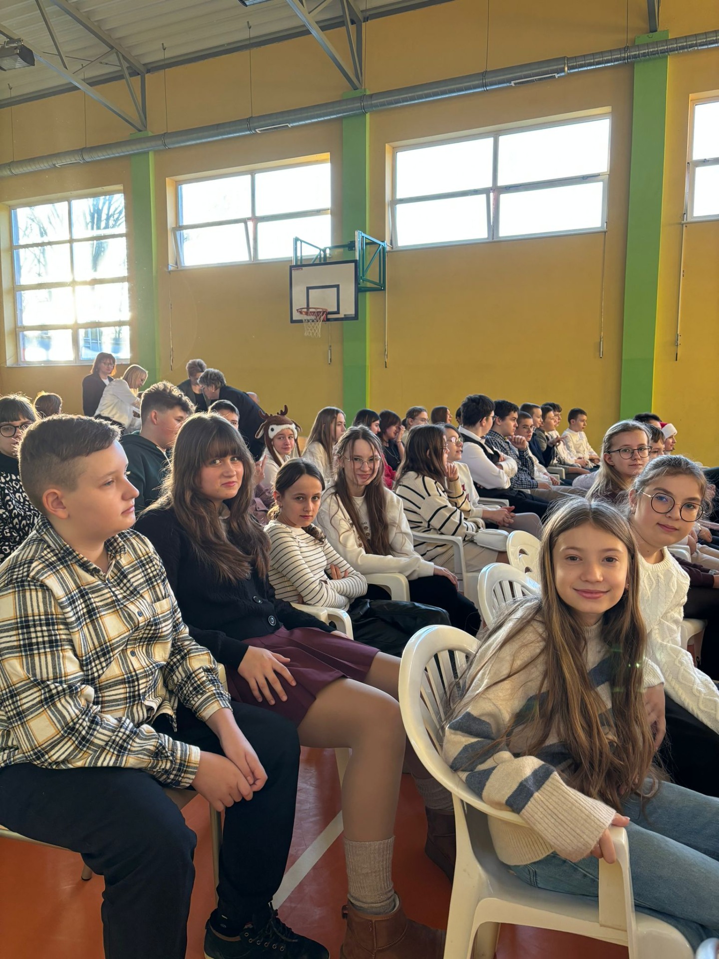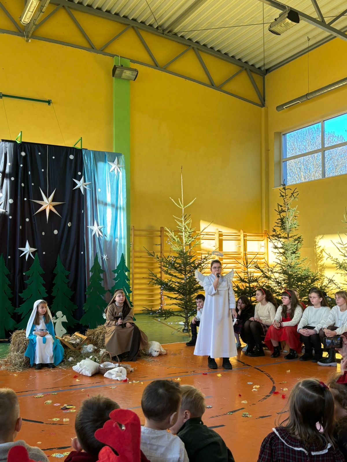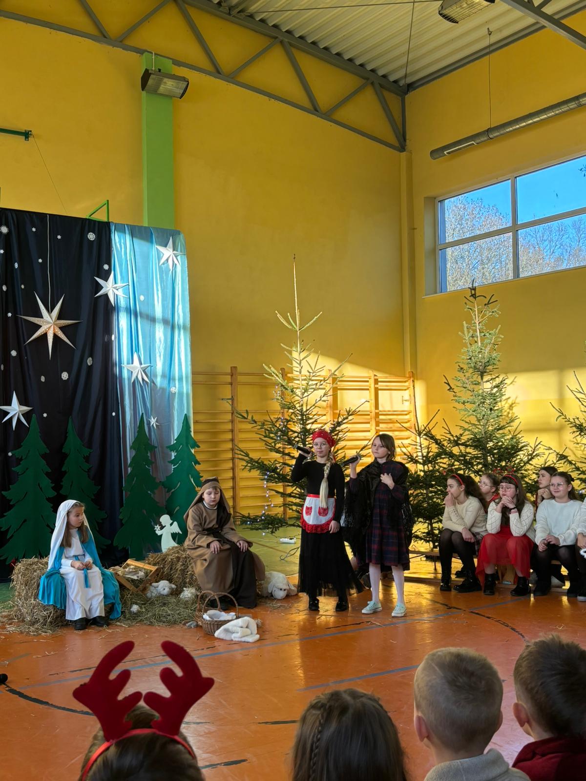 Dnia 19 grudnia uczniowie klasy II i III w asyście starszych kolegów i koleżanek wprowadzili społeczność szkolną w świąteczną atmosferę.