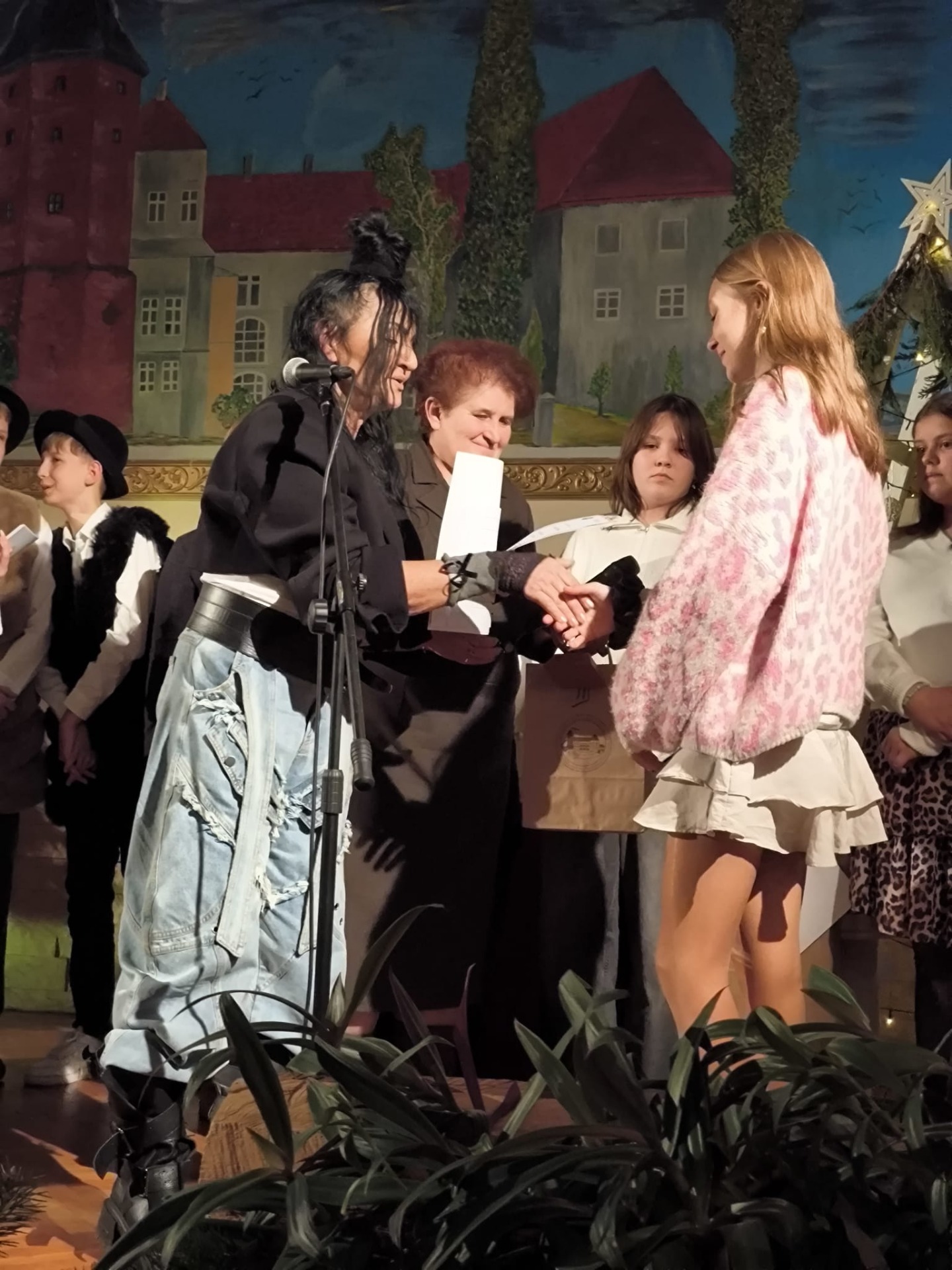 Dziewczęta zaprezentowały się znakomicie, wykonując pastorałki, które oczarowały zarówno publiczność, jak i jury. Ich anielskie głosy, muzykalność oraz pełne emocji interpretacje zostały nagrodzone gromkimi brawami. III miejsce w konkursie zdobyła Maja – serdecznie gratulujemy tego wspaniałego osiągnięcia! 👏