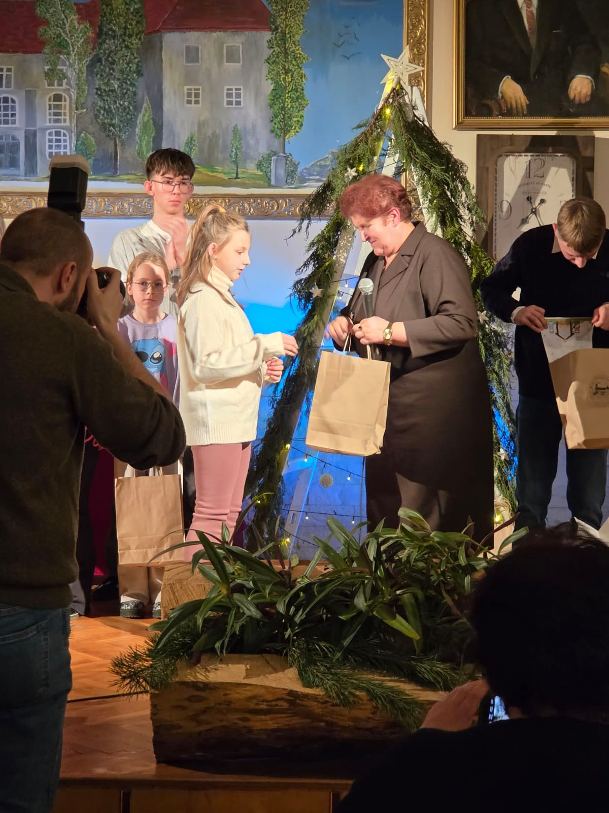 Podczas wydarzenia ogłoszono również wyniki konkursu na najładniejszą Szopkę Bożonarodzeniową. Wzięła w nim udział uczennica naszej szkoły Lena Regulska z klasy IV, która otrzymała wyróżnienie za swoją piękną i starannie wykonaną pracę. 🎄✨