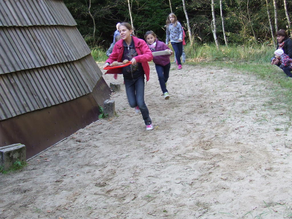 3 października zaprosiliśmy do Międzyborza wychowanków ze Specjalnego Ośrodka Szkolno Wychowawczego im. Janusza Korczaka w Borzęciczkach oraz uczniów ze Szkoły Podstawowej nr 1 z Koźmina Wlkp. Świętowanie rozpoczęliśmy od delektowania się cudownym smakiem ziemniaków z ogniska, był również gzik. Następnie rozpoczęły się konkurencje sportowe- oczywiście z ziemniakiem w roli głównej. Dzieci uczestniczyły w zawodach polegających na toczeniu ziemniaków po wyznaczonym torze, marszu z ziemniakami na łyżce, grały w ziemniaczana koszykówkę. Po zakończeniu sportowych potyczek przyszedł czas na coś słodkiego- cukierki i drożdżówki.