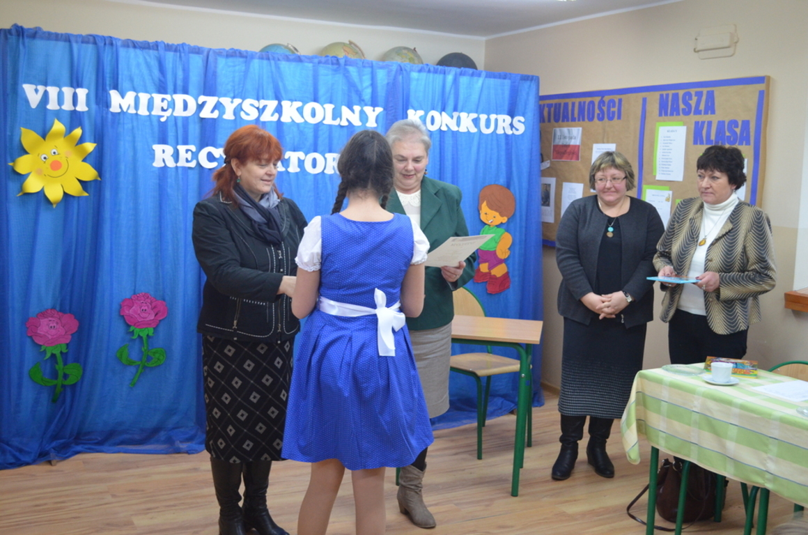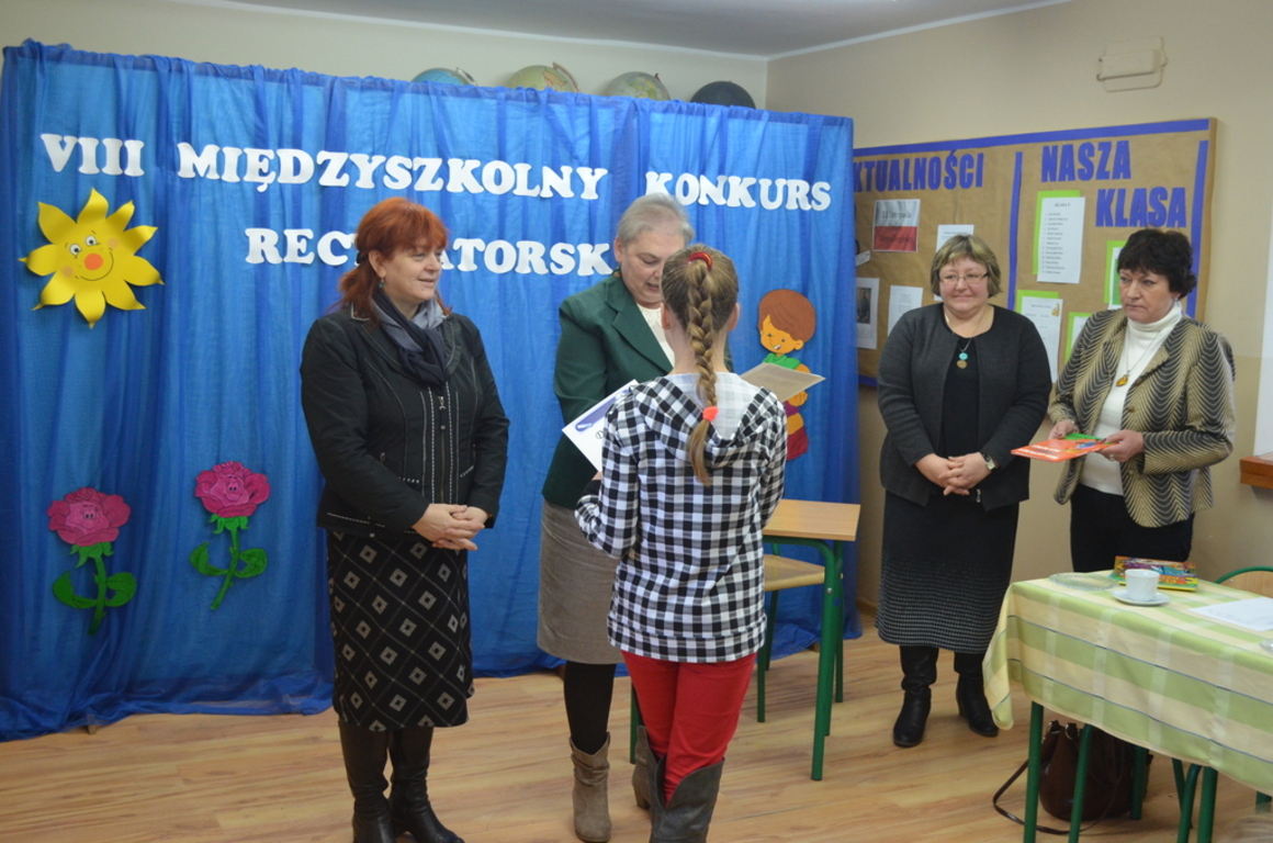 Zmagania młodych recytatorów oceniało jury w składzie: kierownik koźmińskiej biblioteki p.Elżbieta Rychlik oraz panie polonistki z SOSW w Borzęciczkach: Bogusława Juskowiak oraz Joanna Rychlik .