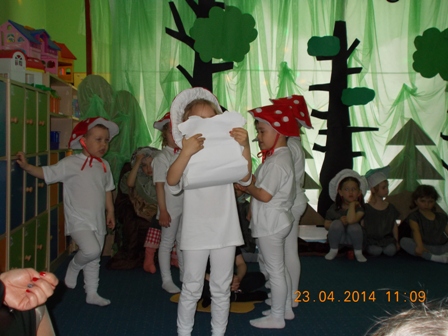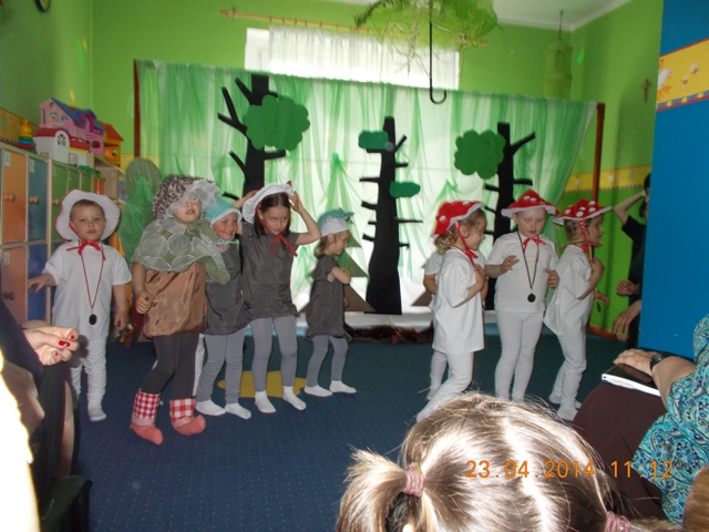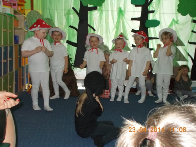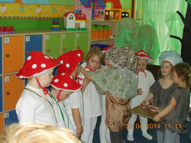 W dniu eliminacji do naszego przedszkola przybyło 3 osobowe jury. W skład jury XIV KSTP wchodzą specjaliści z dziedziny teatru i edukacji elementarnej pod kierownictwem przewodniczącej dr Ireny Karwat. W tym roku dzieci przedstawiły spektakl pt.: „Waleczne grzyby”.